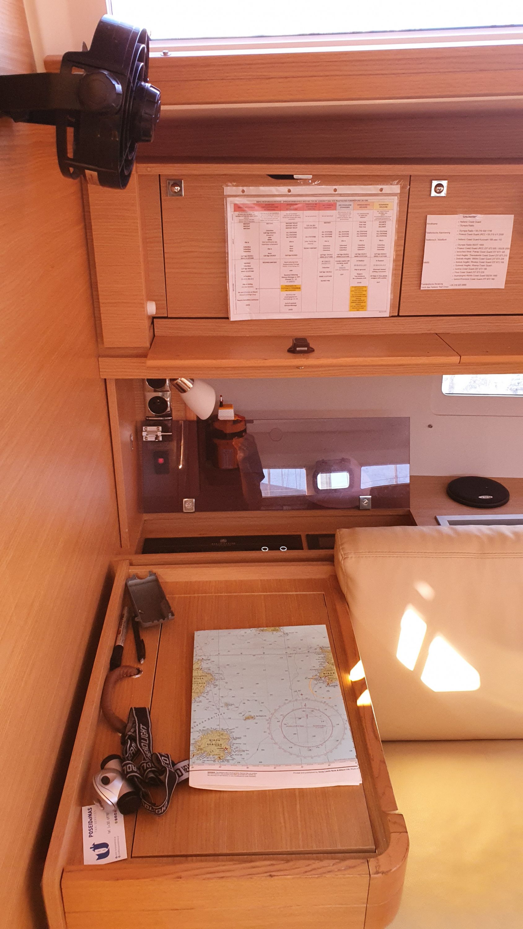 | Safety | AIS Empfänger, Autopilot, Bugstrahlruder, Epirb, Feststoffschwimmwesten, Kinderschwimmwesten, Lifebelts, Navigationslichter, Radarreflektor, Rettungsinsel, Sicherheitsgurt, UKW-Funk, Zweitanker |