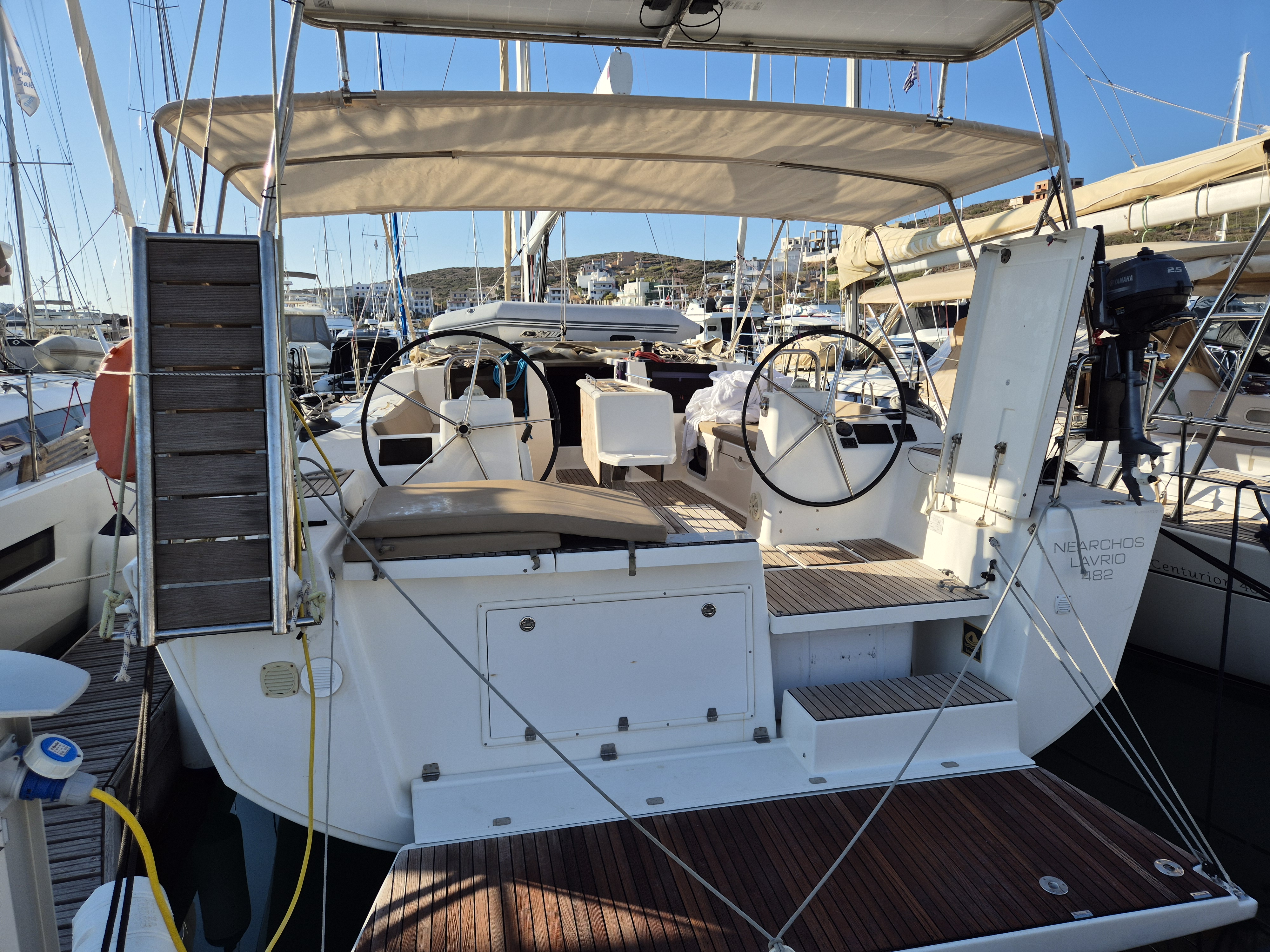 | Outside | Biminitop, Cockpitdusche, Solaranlage, Sprayhood, Teak im Cockpit |