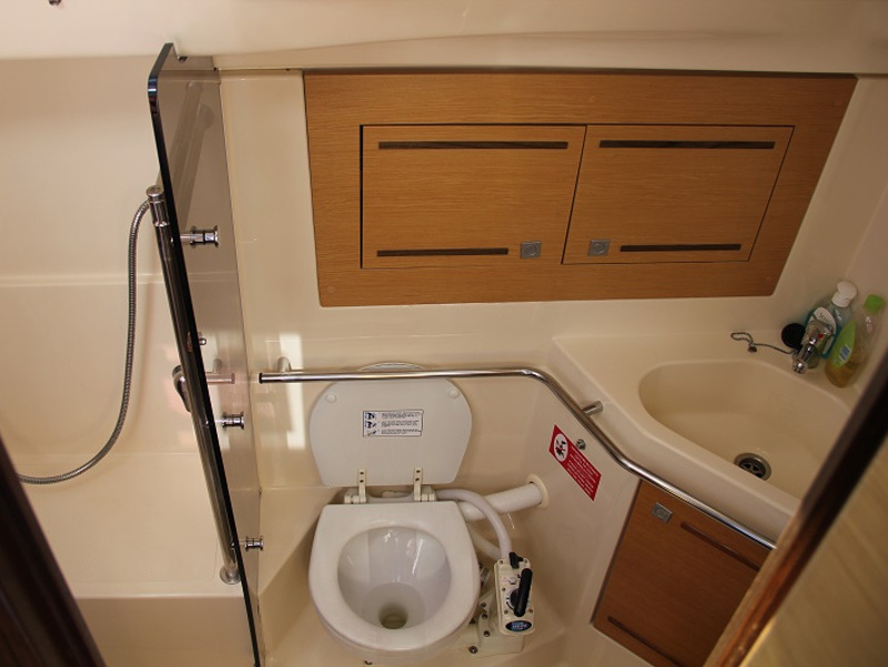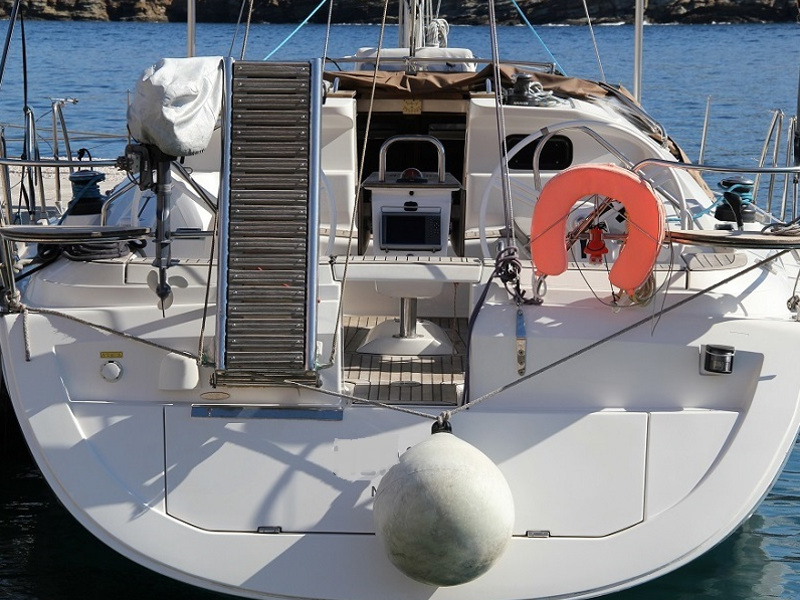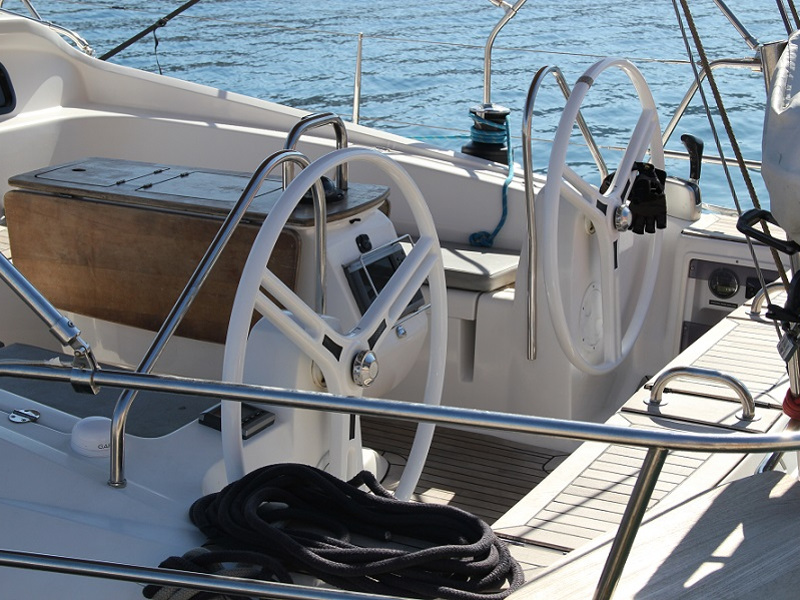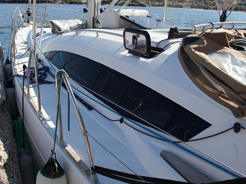| Outside | Badeplattform, Biminitop, Cockpitdusche, Cockpitlautsprecher, Cockpitpolster, Cockpittisch mit Eisbox, elektr. Ankerwinsch, Faltpropeller, Gangway, Solaranlage, Sprayhood, Teak im Cockpit, Windex |