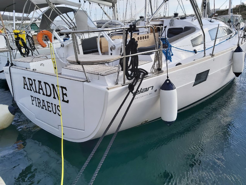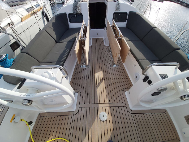 | Outside | Badeplattform, Cockpitdusche, Cockpitlautsprecher, Cockpittisch, elektr. Ankerwinsch, Solaranlage, Sprayhood, Teak im Cockpit |