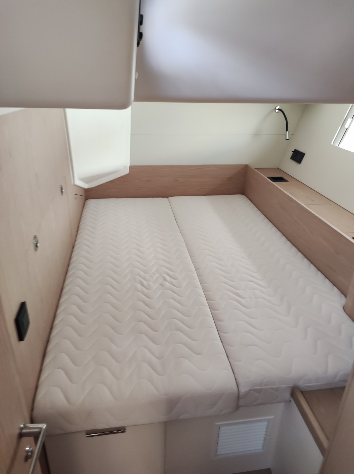 | Outside | Badeleiter, Biminitop, Cockpitdusche, Cockpitpolster, Cockpittisch, elektr. Ankerwinsch, elektr. Winsch, Gangway, Schnorchelausrüstung, Sprayhood, Teak im Cockpit, Teakdeck, Unterwasserbeleuchtung |