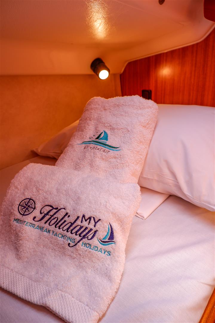 | Safety | Autopilot, Bordapotheke, elektr. Bilgepumpe, Epirb, Feststoffschwimmwesten, Feueraxt, Feuerlöscher, Nebelhorn, Notpinne, Notsignale, Radarreflektor, Rettungsinsel, Rettungskragen, Suchscheinwerfer, Taschenlampe, UKW-Funk |