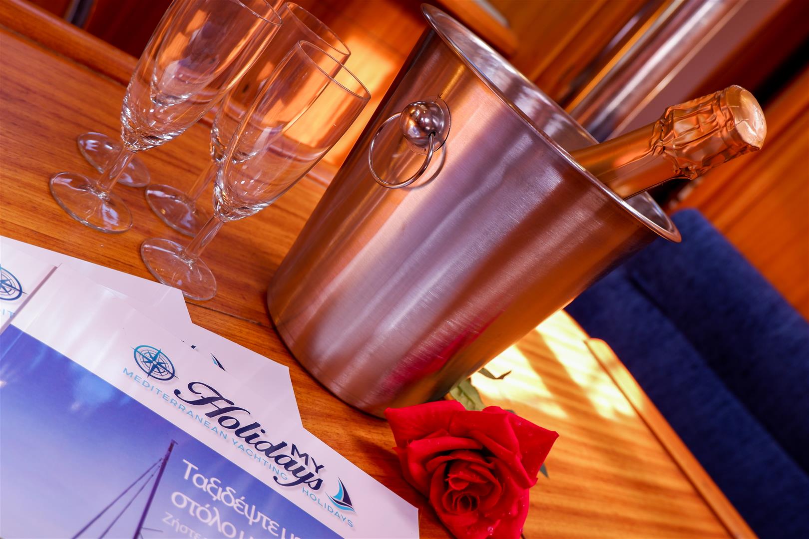 | Outside | Anker mit Kette, Badeleiter, Biminitop, Cockpitdusche, Cockpitpolster, elektr. Ankerwinsch, Gangway, Sprayhood, Wantenschneider, Windex |