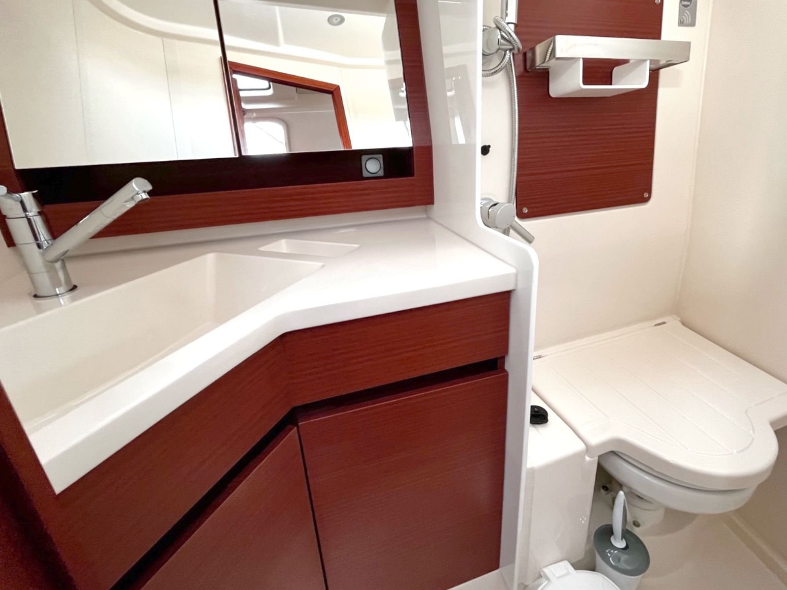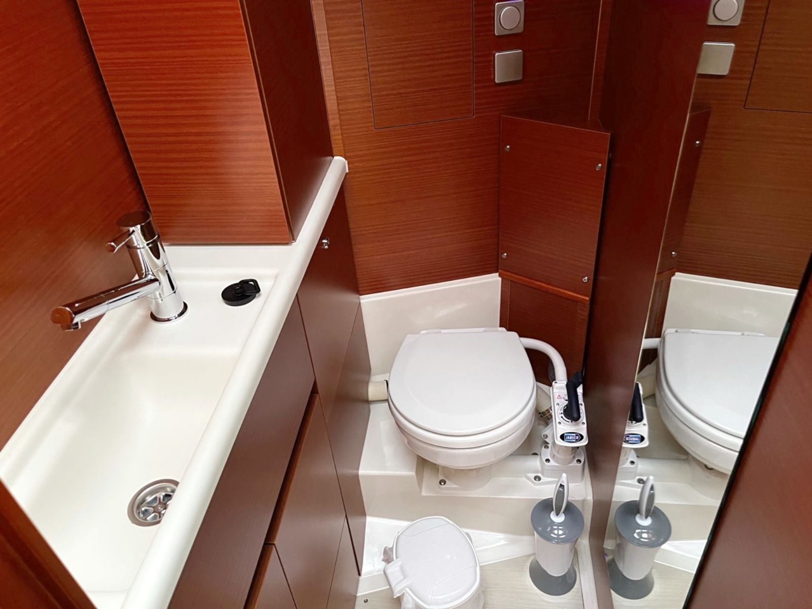| Inside | 12V/220V-Steckdosen, 220V Steckdosen, Fäkalientank, Frischwasserpumpe, Gasherd, Gefrierschrank, Kühlschrank, Landstromkabel, Moskitonetze, Pantryausstattung, Salontisch absenkbar, USB Steckdosen in den Kabinen, Ventilatoren in Kabinen, Warmwasser, Weinschrank |