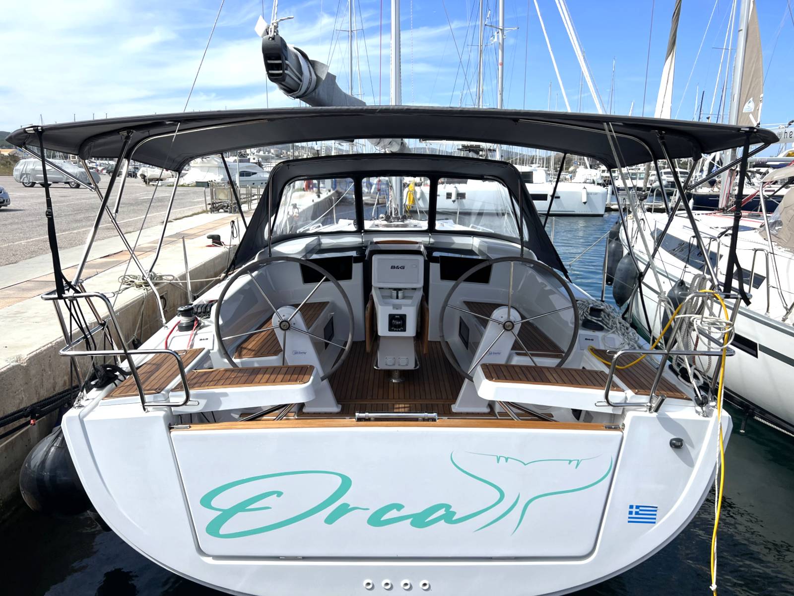 | Outside | Anker mit Kette, Badeleiter, Badeplattform, Biminitop, Cockpitdusche warm/kalt, Cockpitkühlschrank, Cockpitlautsprecher, Cockpitpolster, Cockpittisch, elektr. Ankerwinsch, Fender, Festmacherleinen, Schnorchelausrüstung, Solaranlage, Sprayhood, Teak im Cockpit, Windex, Winschen |