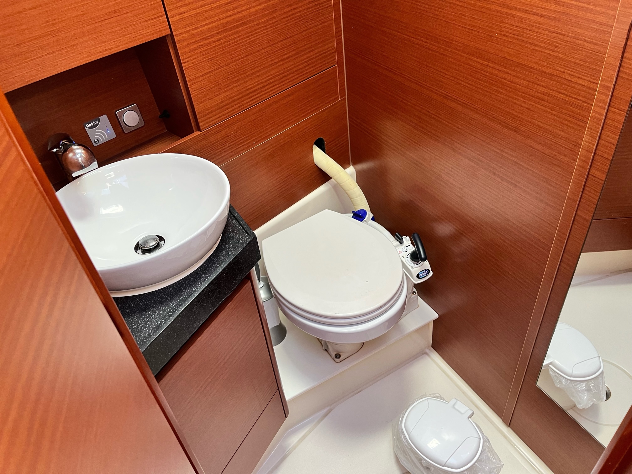 | Inside | 12V/220V-Steckdosen, 220V Steckdosen, Fäkalientank, Frischwasserpumpe, Gasherd, Gefrierschrank, Kühlschrank, Landstromkabel, Moskitonetze, Pantryausstattung, Salontisch absenkbar, USB Steckdosen in den Kabinen, Ventilatoren in Kabinen, Warmwasser, Weinschrank |