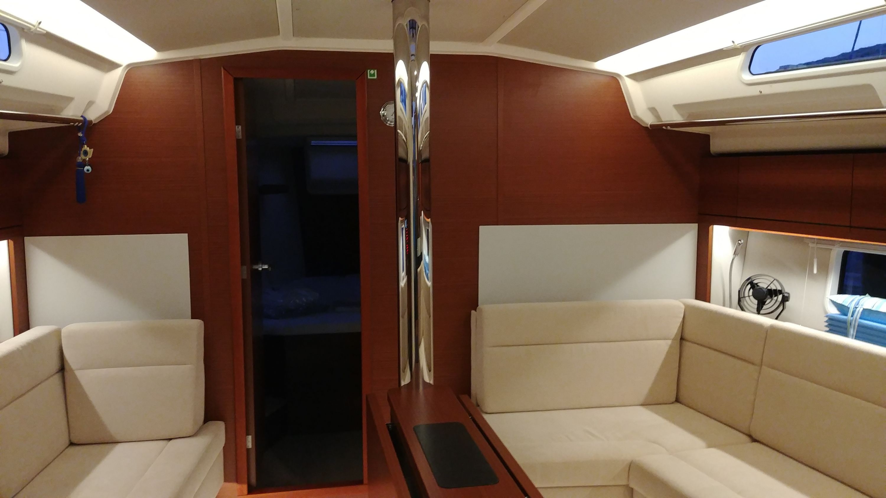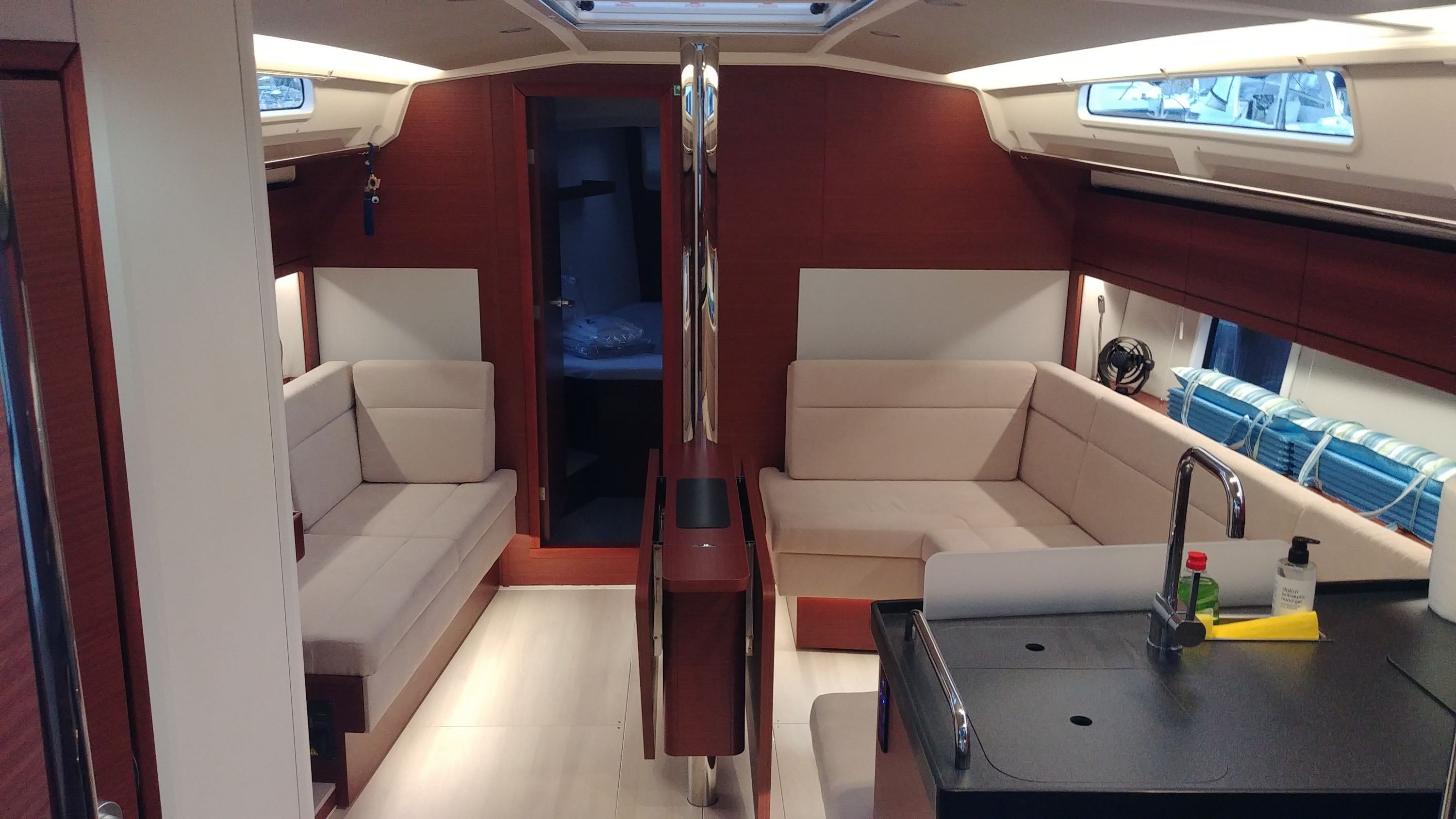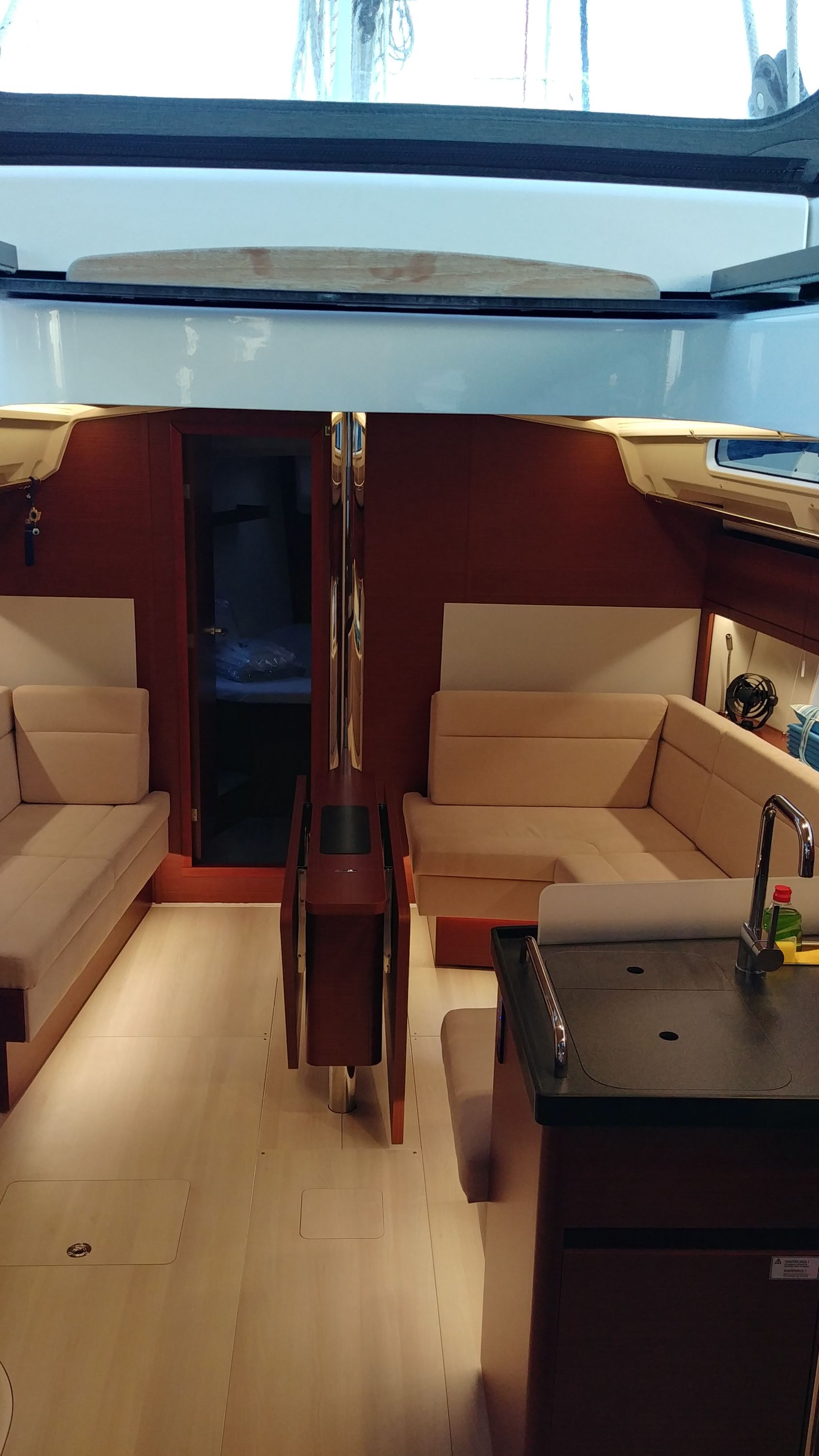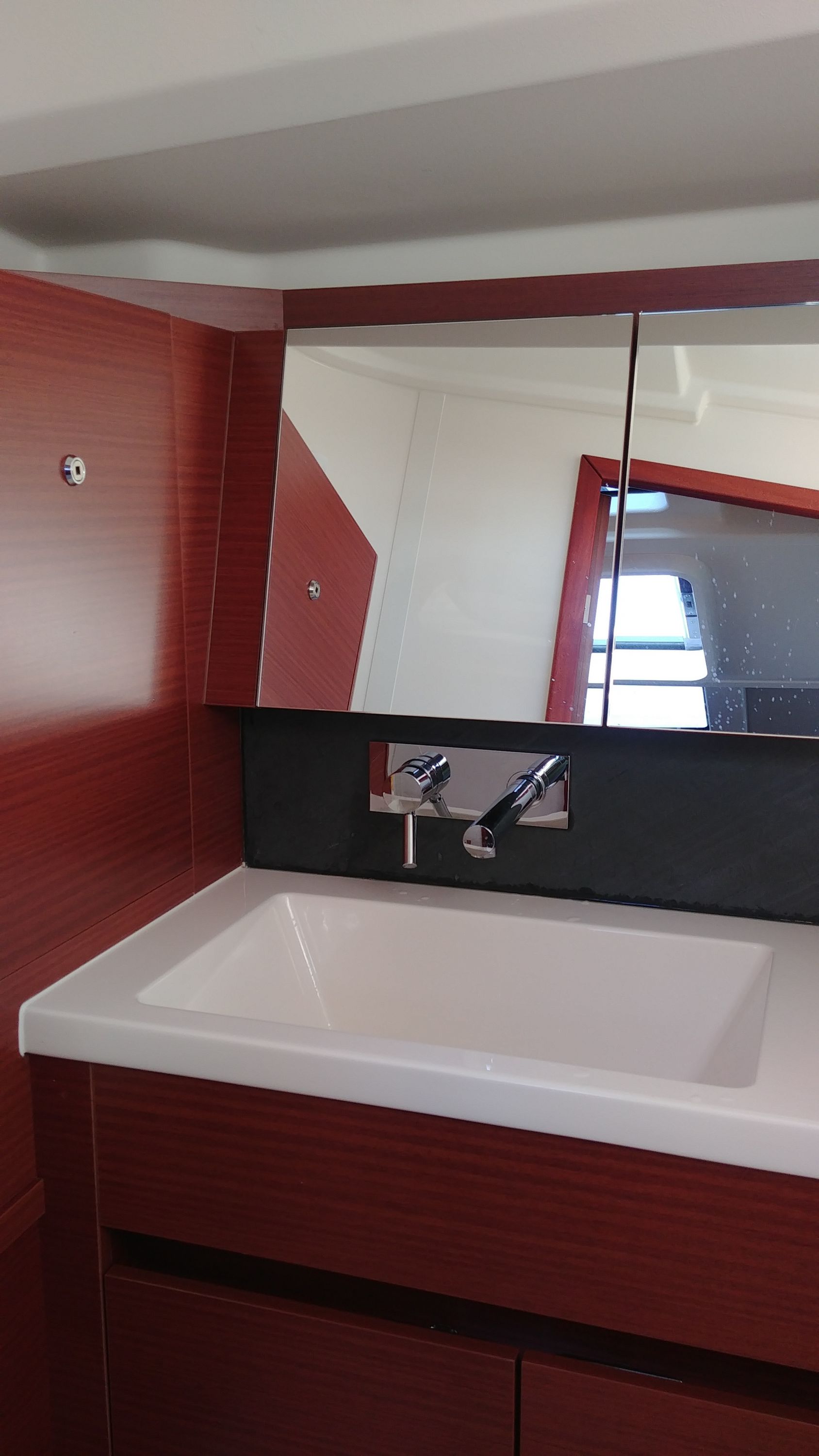 | Outside | Anker mit Kette, Badeleiter, Badeplattform, Biminitop, Cockpitdusche, Cockpitpolster, Cockpittisch, Deckpolster, elektr. Ankerwinsch, Schnorchelausrüstung, Solaranlage, Sprayhood, Teak im Cockpit, Unterwasserbeleuchtung |
