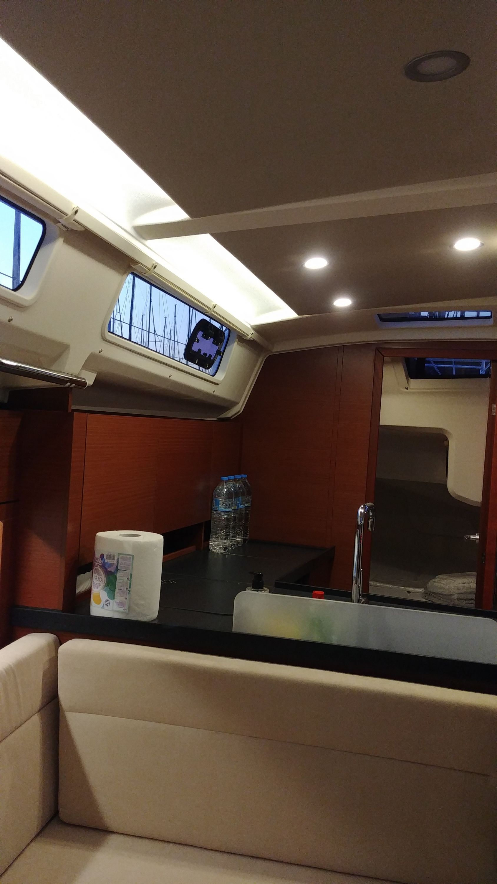 Probleme mit Ankerwinsch , waren wahrscheinlich bekannt und wurden heruntergespielt,Funk- Mobilhandstück defekt,Grossegel ließ sich nur bis Reff2 hochziehen ( konnte allerdings bei Übernahme durch starken Wind nicht geprüft werden, hat uns 1h Arbeit auf See zur Reparatur gekostet ),Gangwaytakeling defekt ( es sei Ende der Saison…)