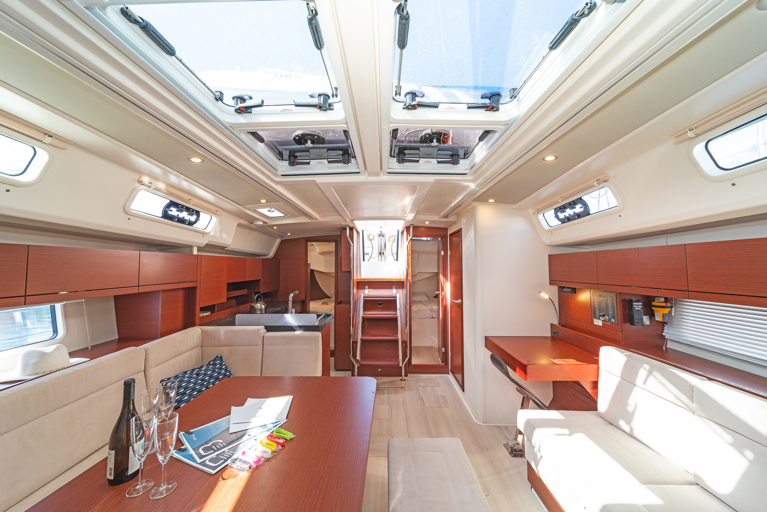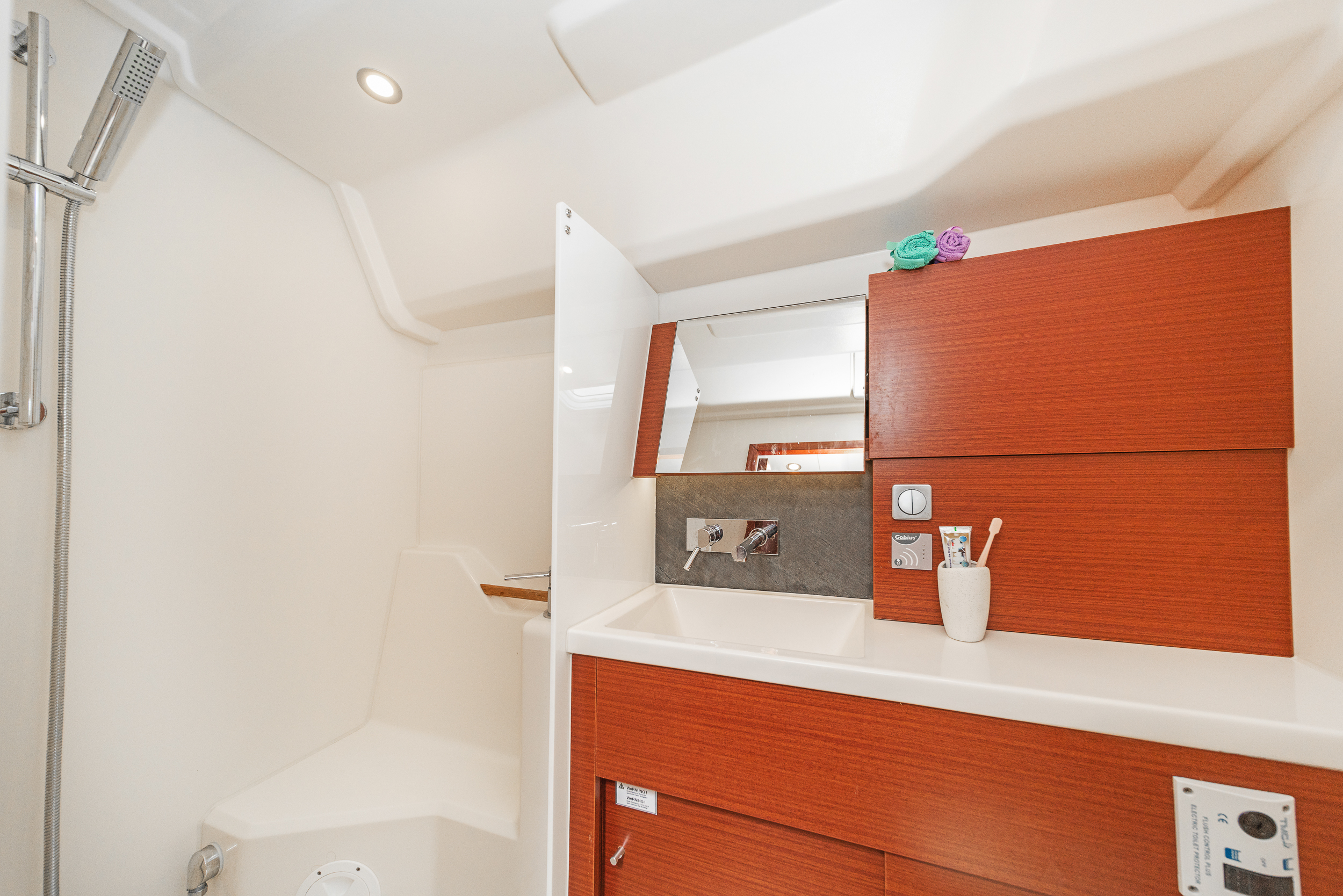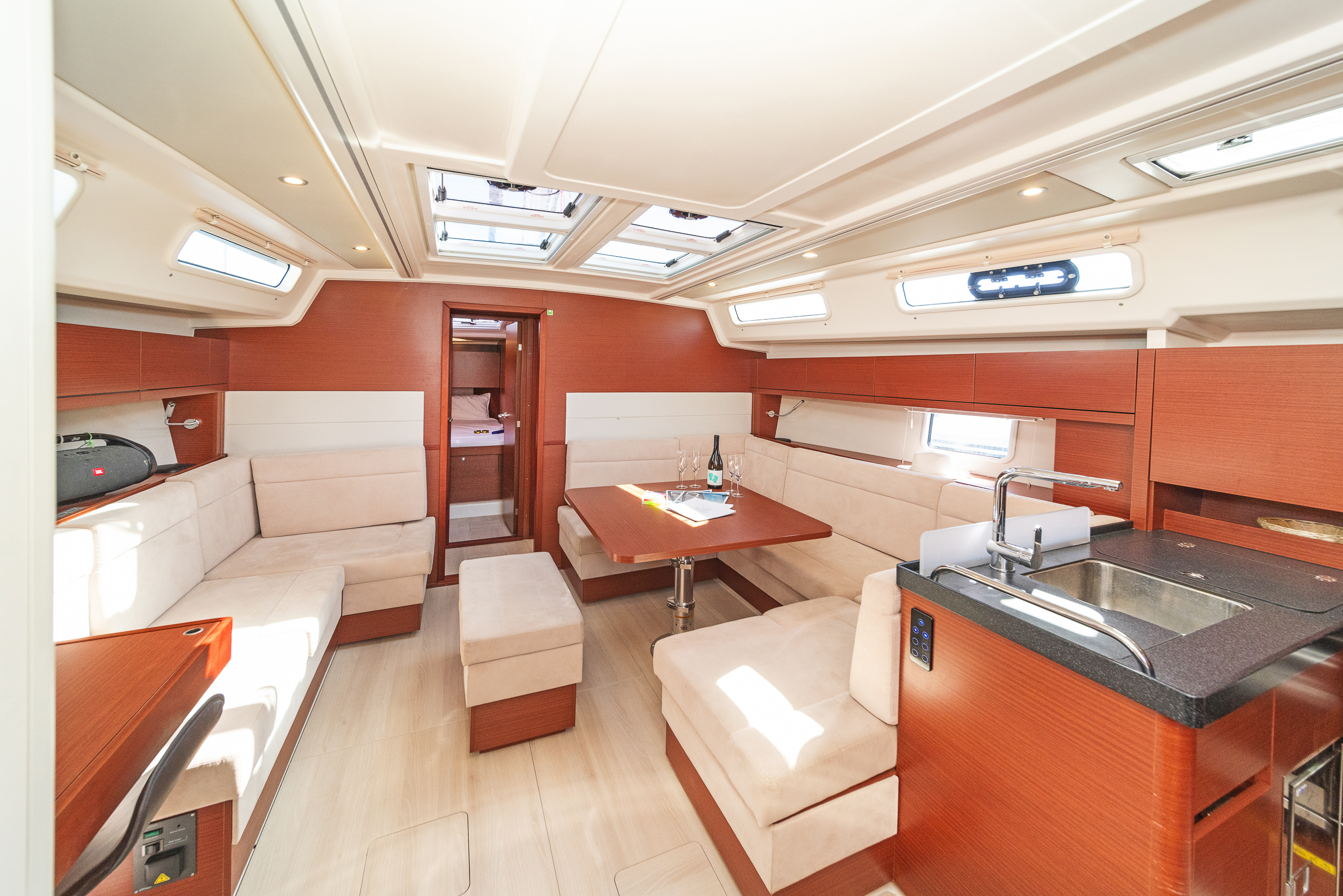 | Outside | Badeplattform, Biminitop, Cockpitpolster, elektr. Ankerwinsch, Solaranlage, Sprayhood |