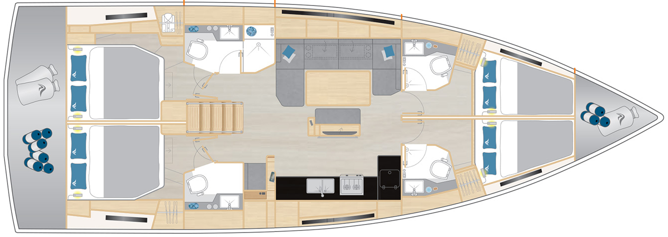 | Kabinen: | 4 | Kojen: | 8+1 |