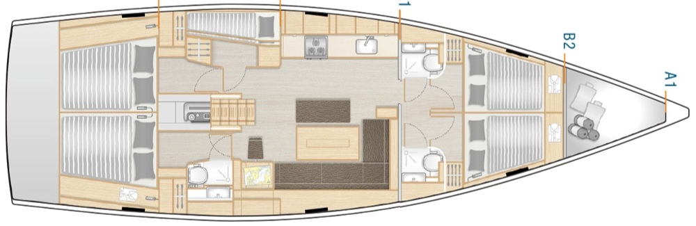 | Kabinen: | 5+1 | Kojen: | 10+1 |