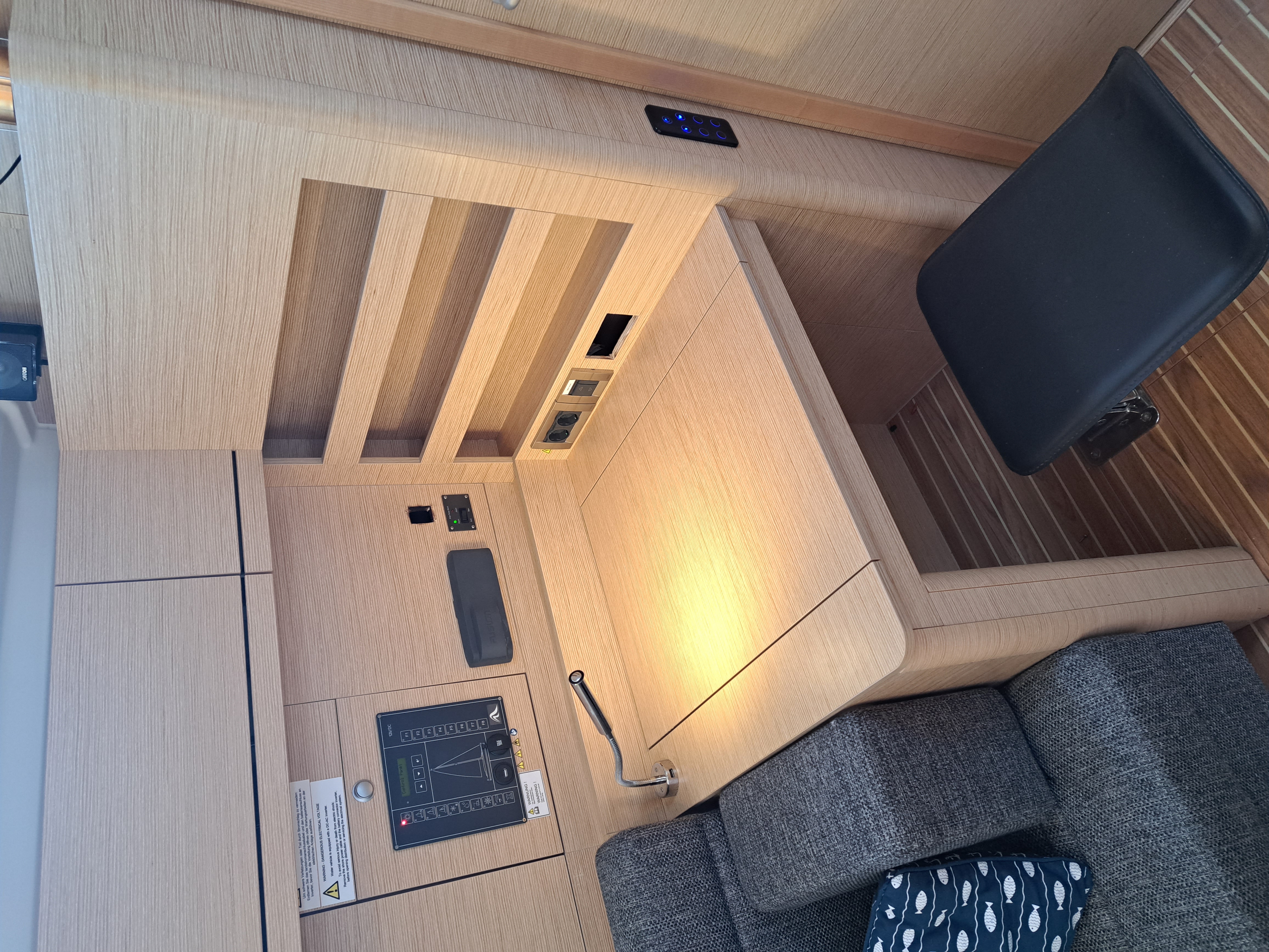| Navigation | Echolot, GPS mit Kartenplotter im Cockpit, Windmesser |