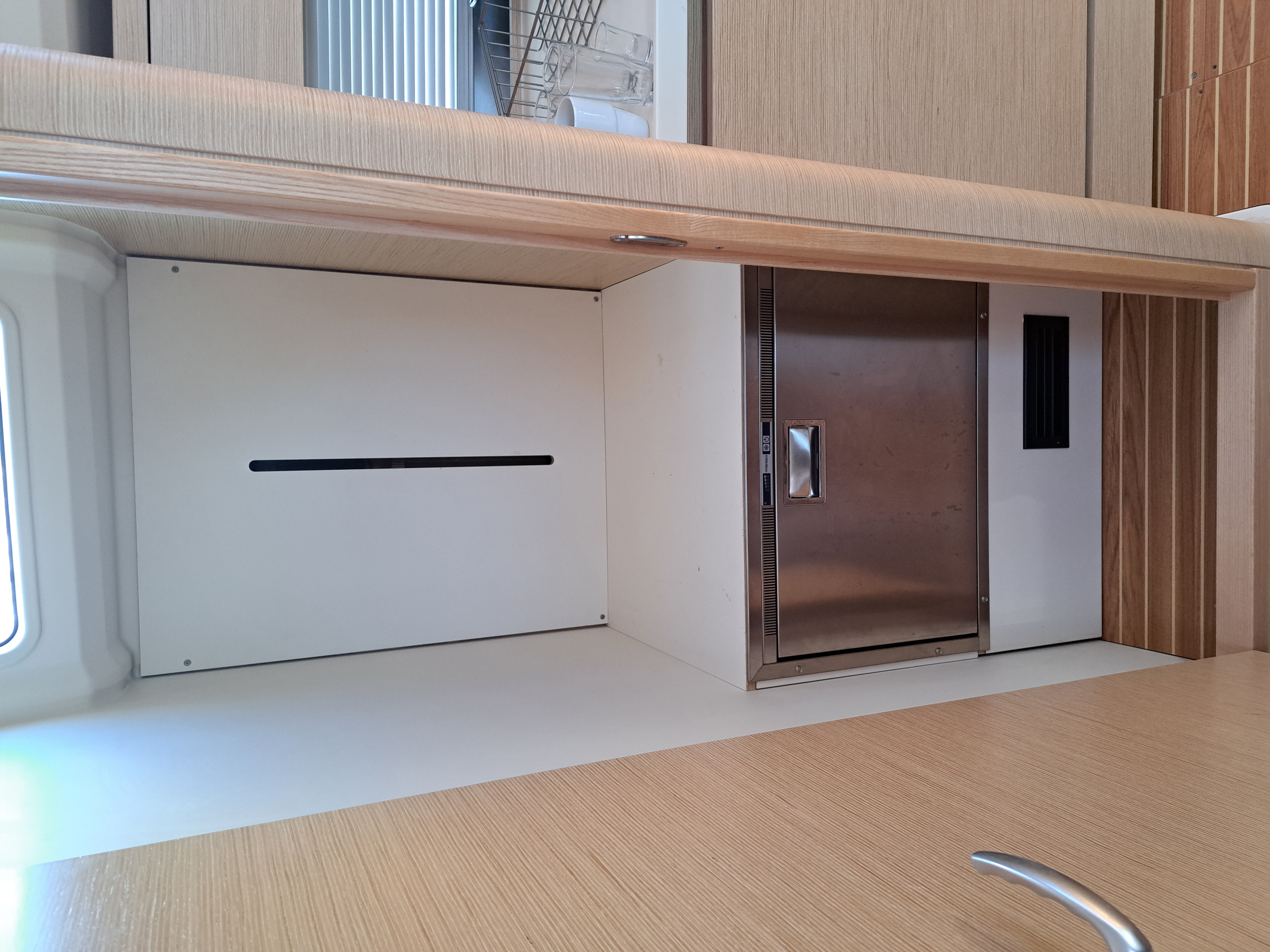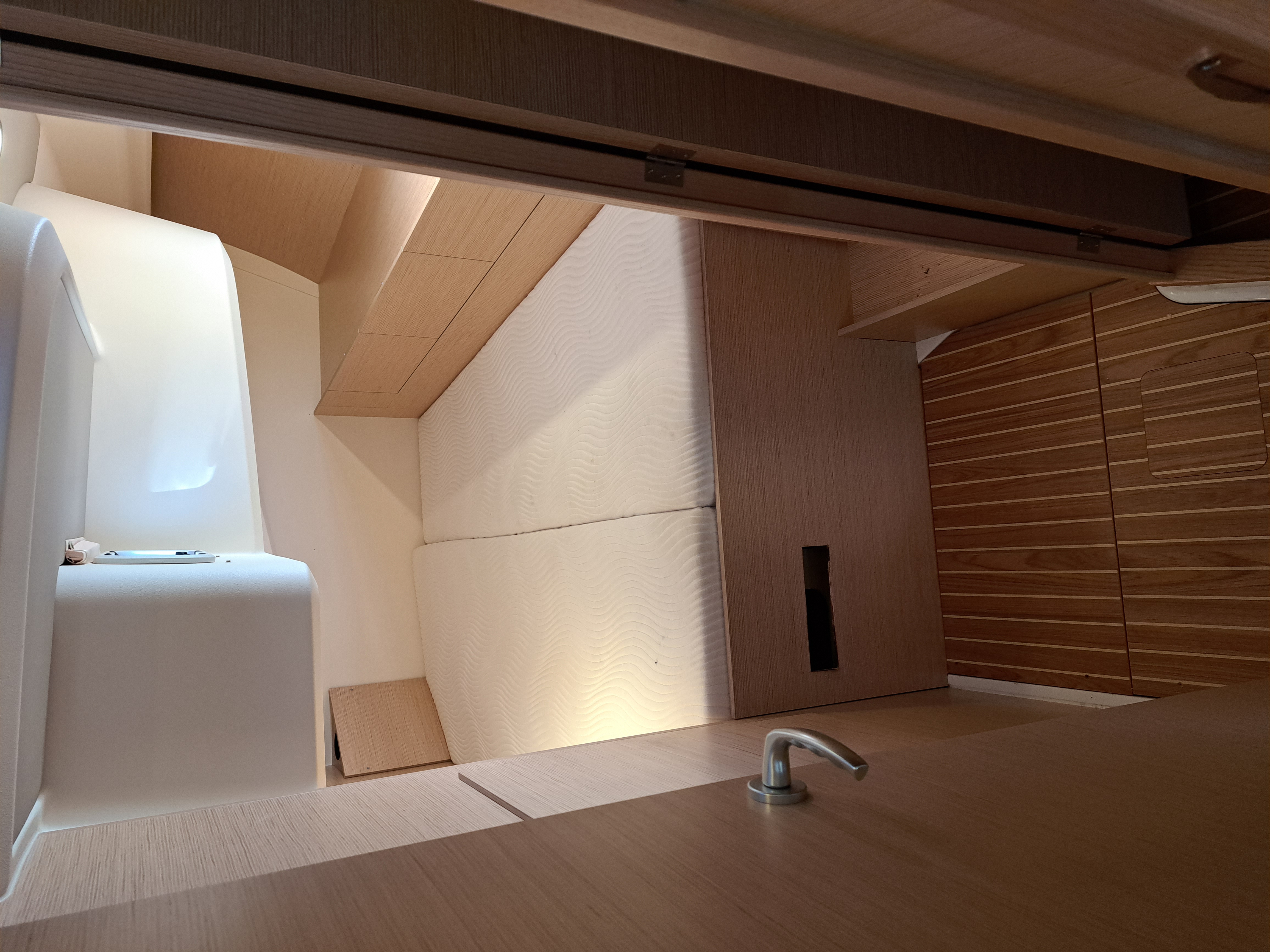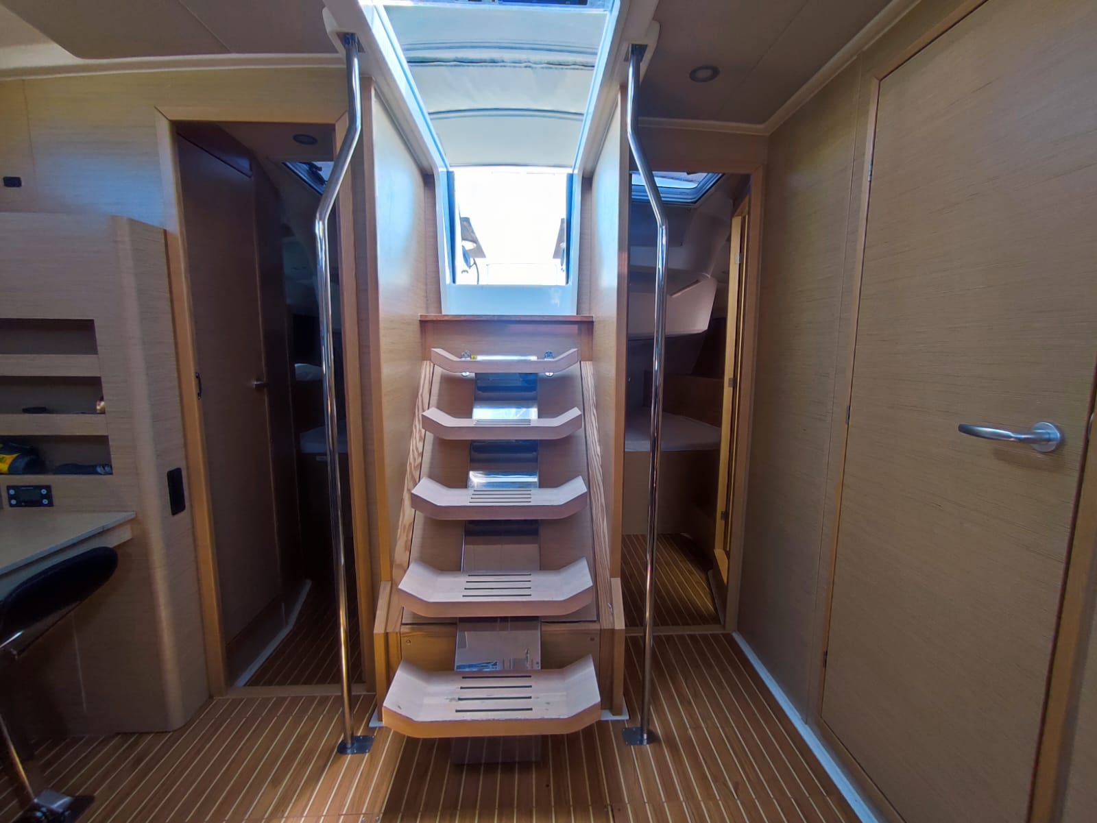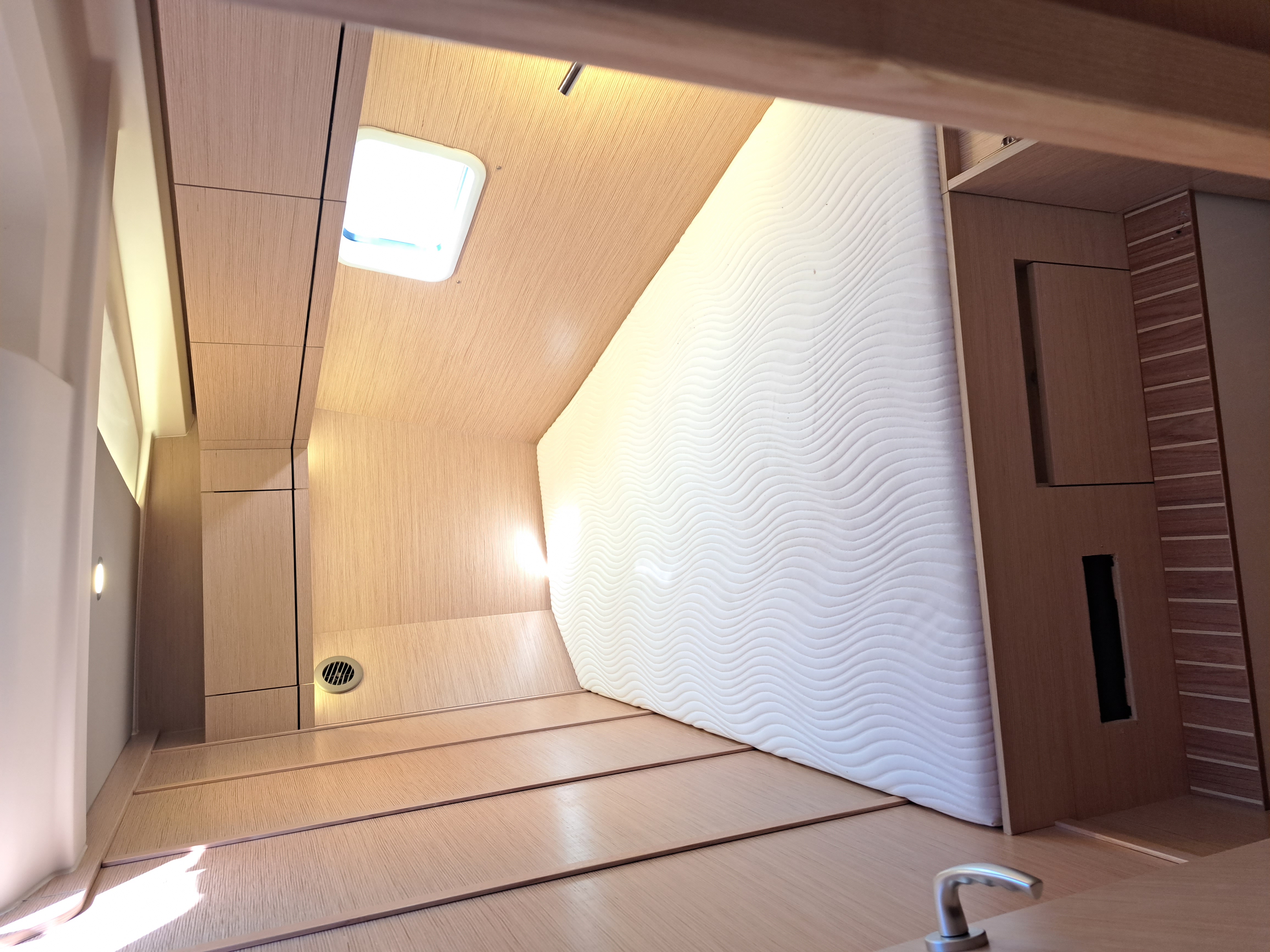 | Inside | Generator, Geschirrspüler, Inverter 12V/220V, Klimaanlage (ohne Landstrombedarf), Mikrowelle, Radio mit CD, MP3 und Bluetooth, Salontisch absenkbar, Watermaker, WC (elektr.) |