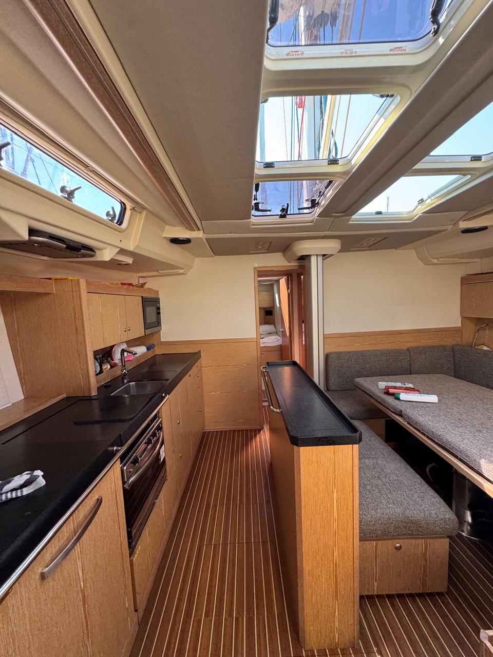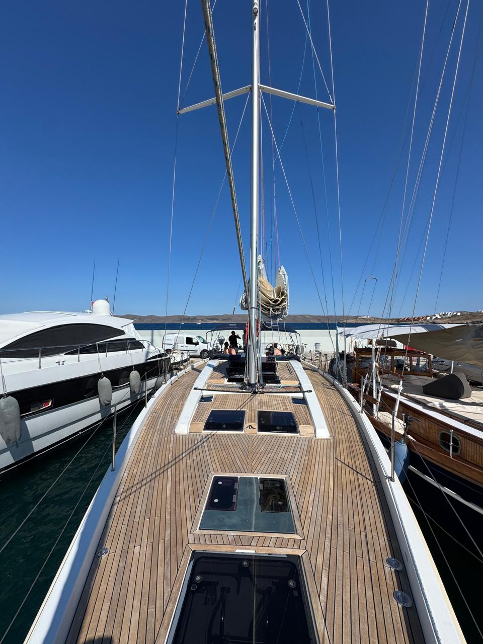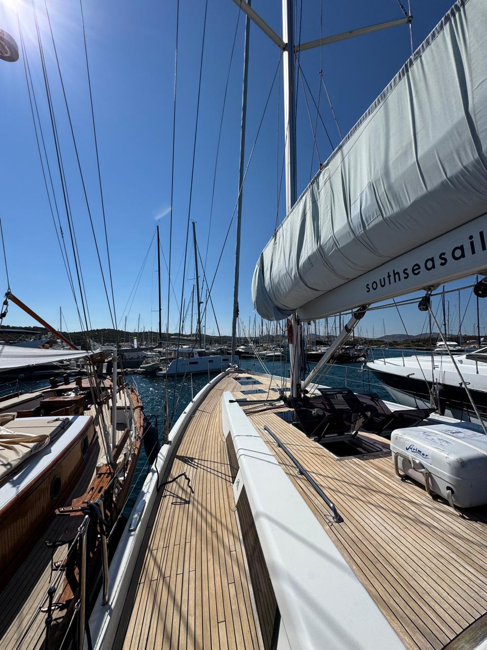| Outside | Anker mit Kette, Badeplattform, Biminitop, Cockpitlautsprecher, Cockpittisch, elektr. Ankerwinsch, elektr. Winsch, Sprayhood, Teak im Cockpit, Winschen |
