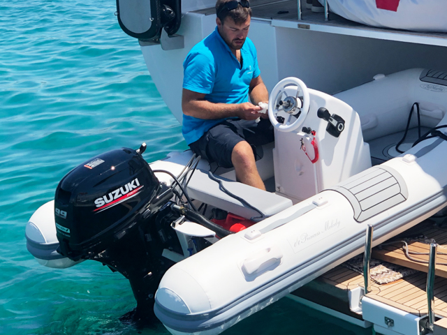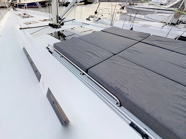 | Outside | 220 V-Landanschluss, Cockpitlautsprecher, Cockpitpolster, Cockpittisch, Deckpolster, elektr. Winsch, Faltpropeller, Gangway, Schnorchelausrüstung, Sonnendeck, Sprayhood |