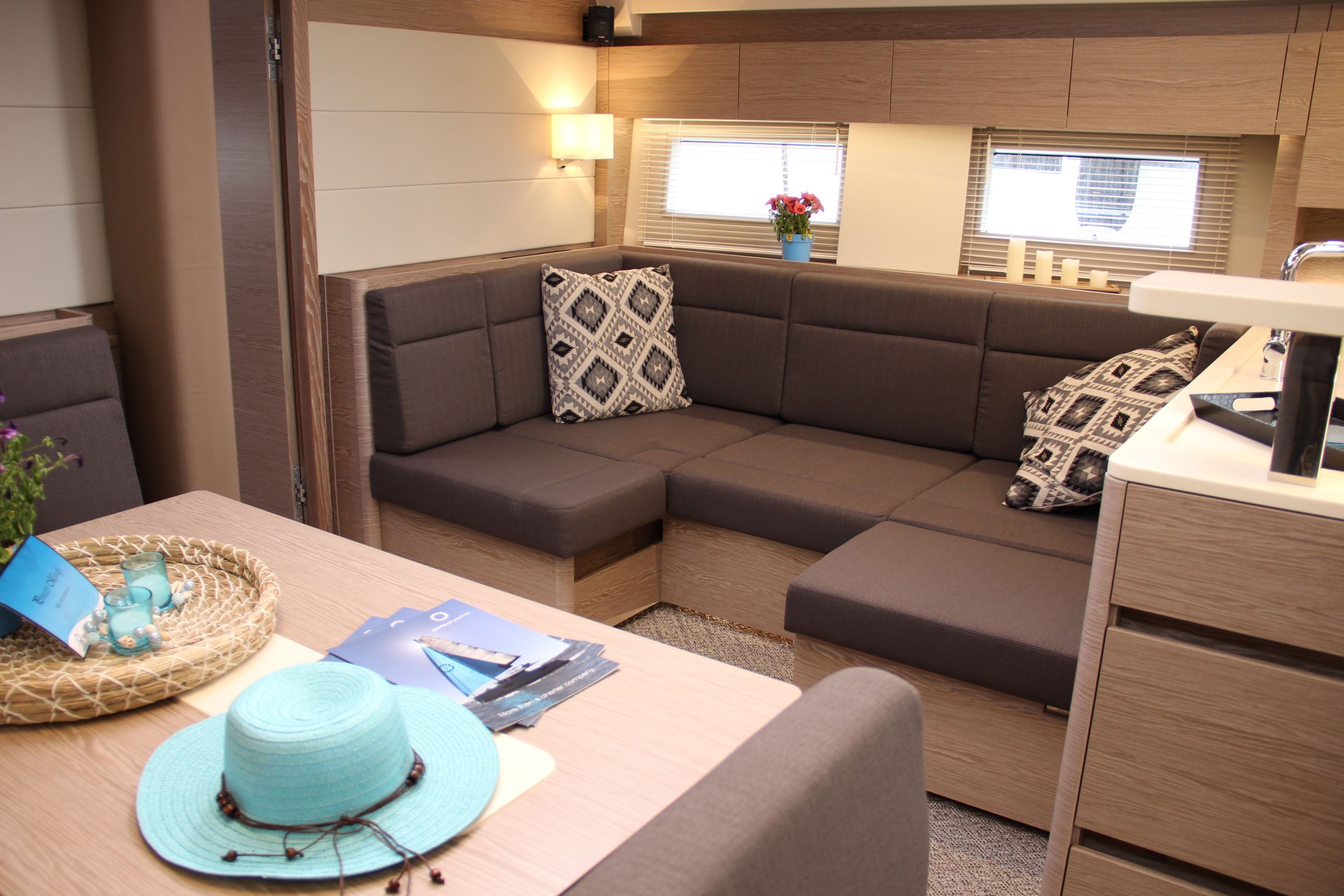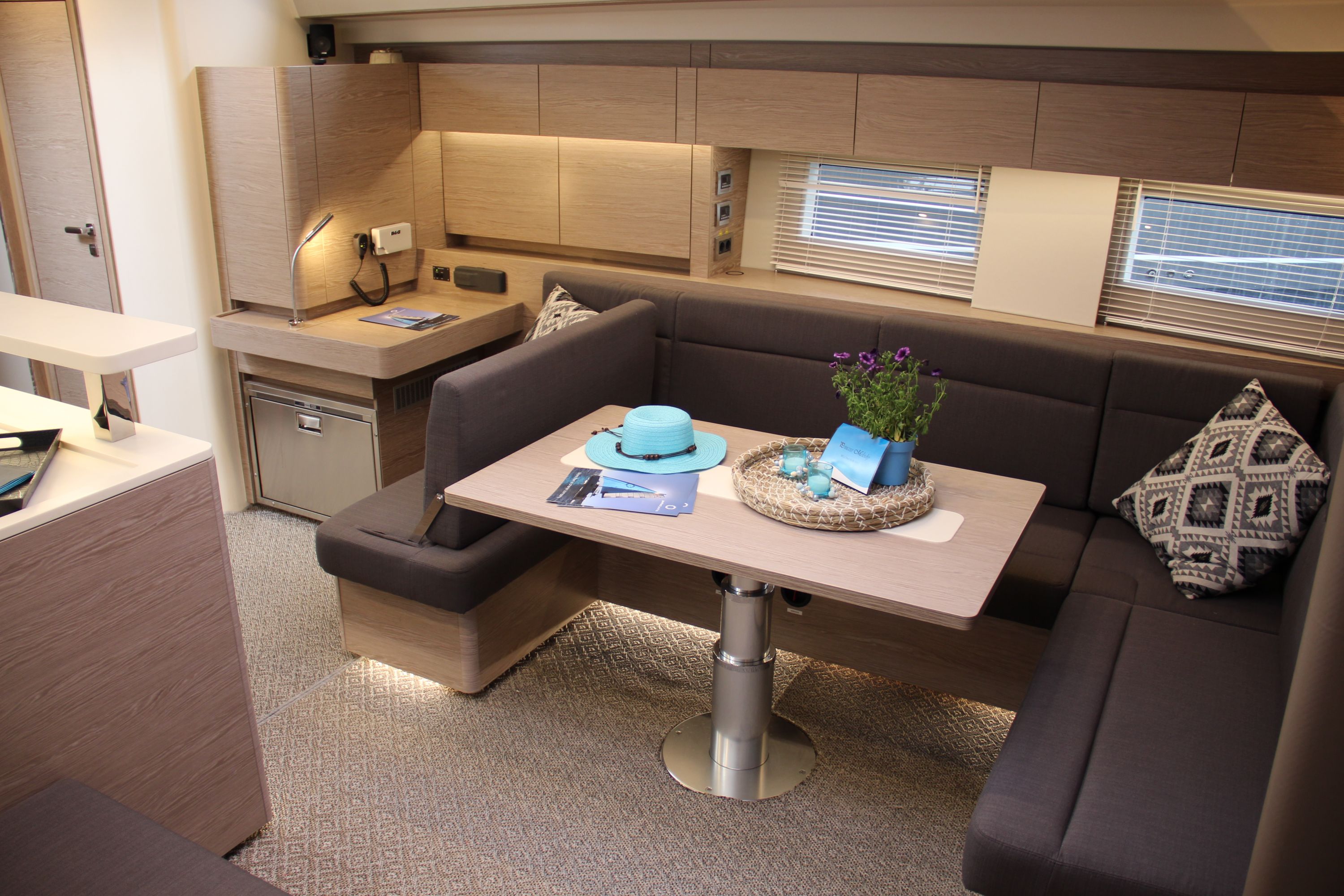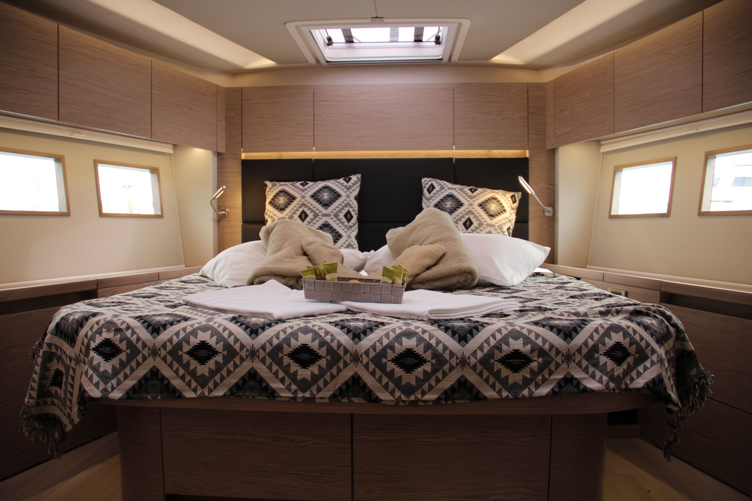 | Inside | Espresso Maschine, FUSION Sound System, Gefrierschrank, Generator, Inverter 12V/220V, Klimaanlage (ohne Landstrombedarf), Ladegerät, Lautsprecher im Salon, Salontisch absenkbar, TV, Watermaker, WC (elektr.) |