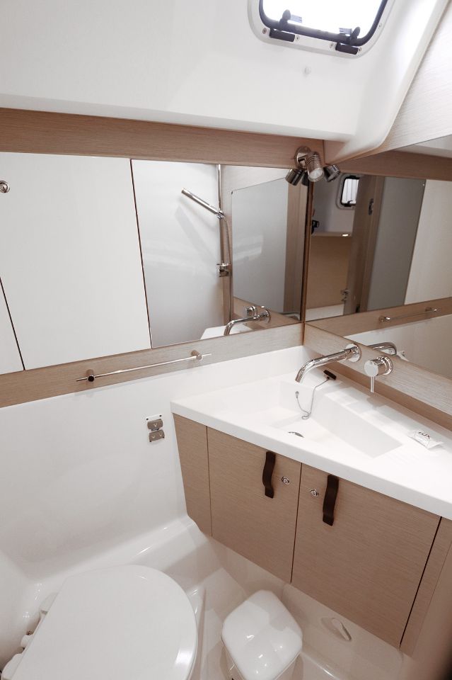 | Outside | Badeleiter, Badeplattform, Biminitop, Cockpitdusche, Cockpitkühlschrank, Cockpitlautsprecher, Cockpitpolster, Cockpittisch, elektr. Ankerwinsch, elektr. Winsch, Solaranlage, Sprayhood, Teak im Cockpit, Windex |
