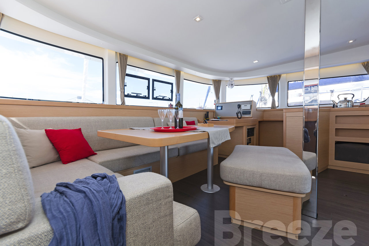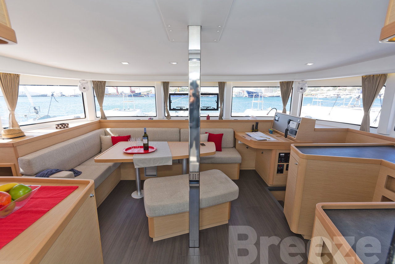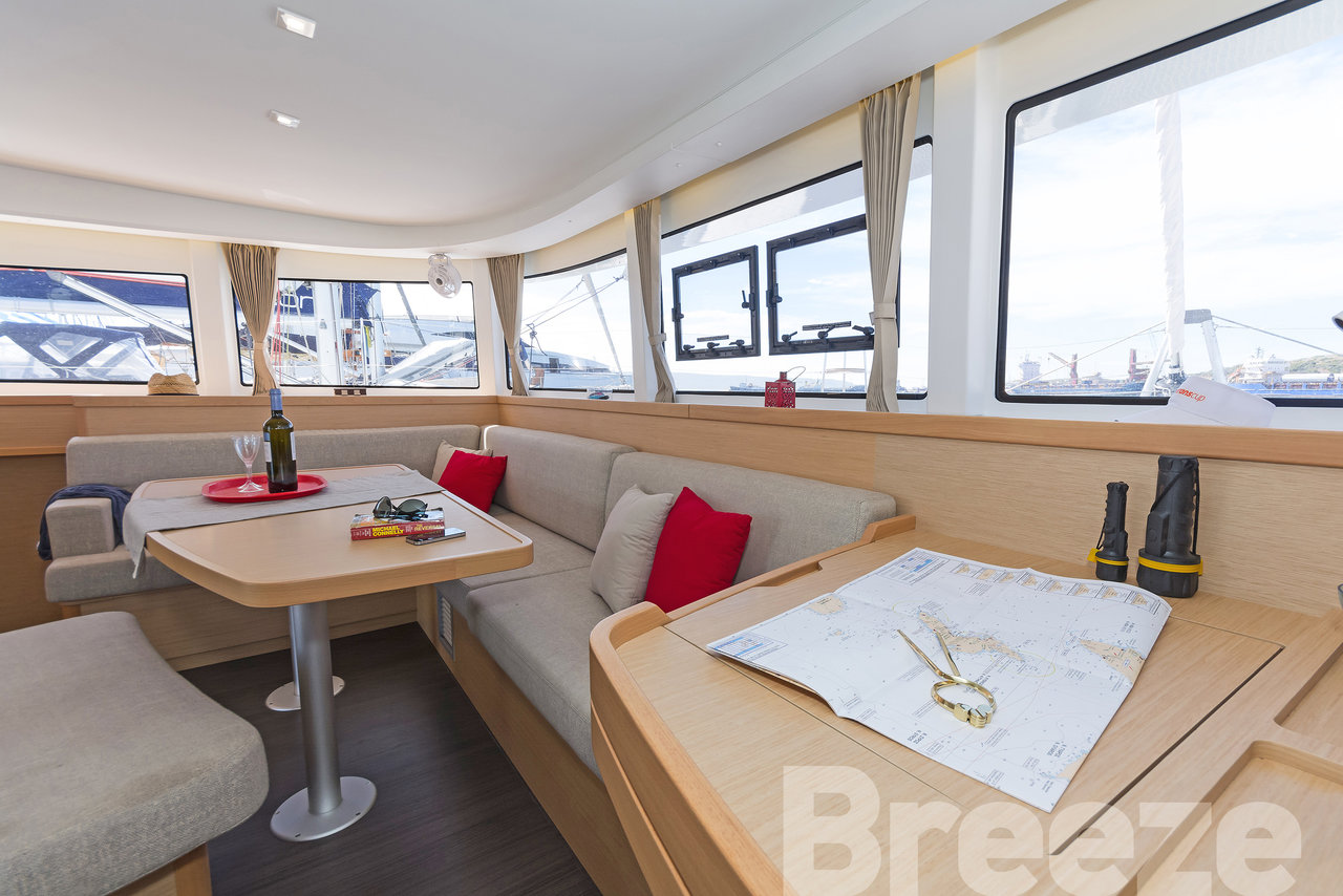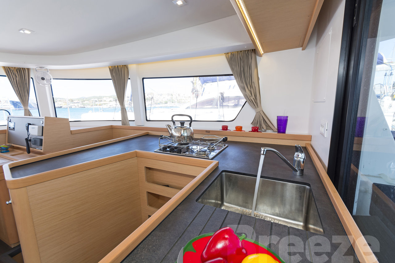 | Inside | 220V Steckdosen, Gasherd, Generator, Klimaanlage (ohne Landstrombedarf), Ladegerät, Pantryausstattung, Radio mit CD, AUX und USB, USB Steckdose, USB-Ladegerät für Mobilgeräte, Ventilatoren in Kabinen, Watermaker, WC (elektr.) |