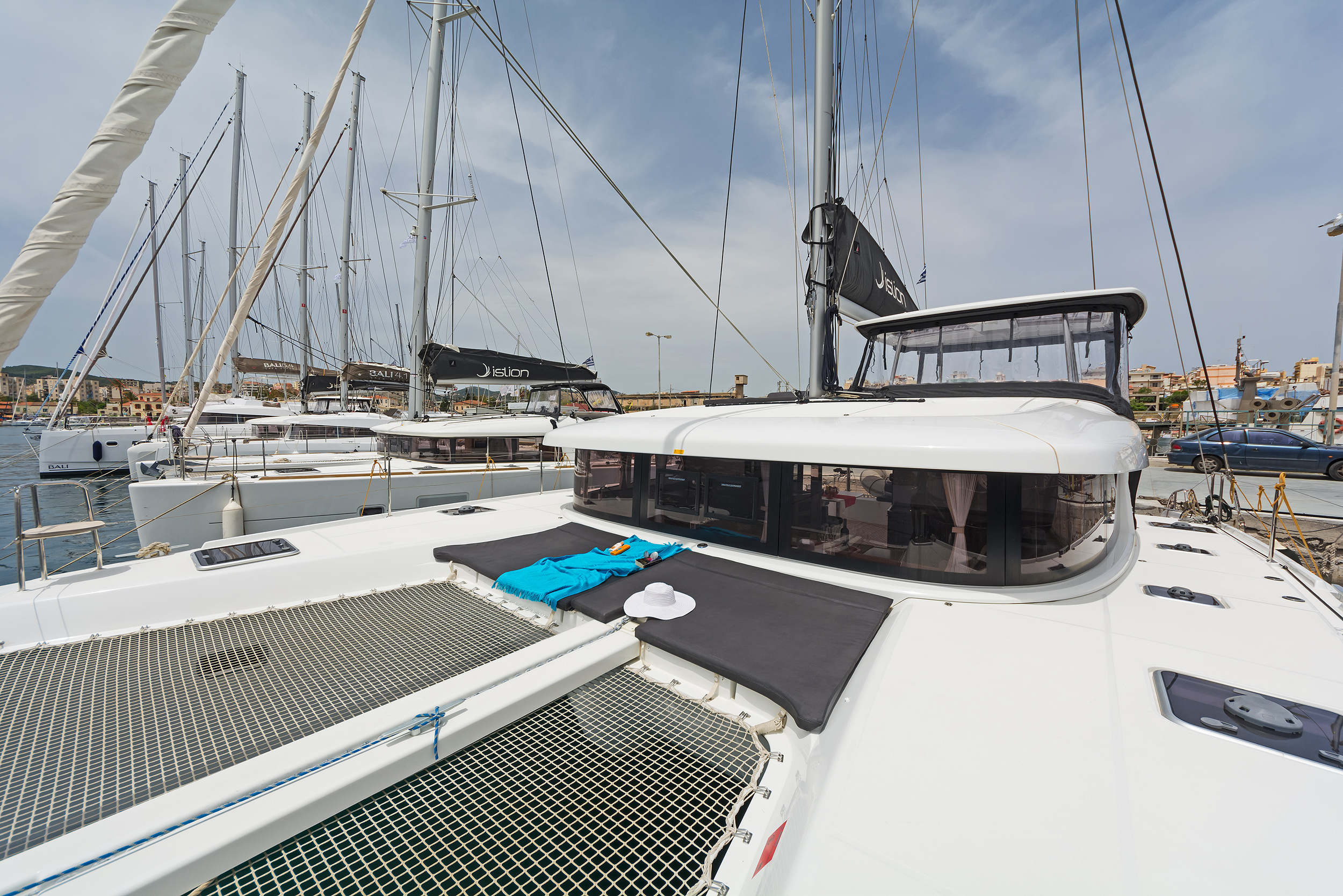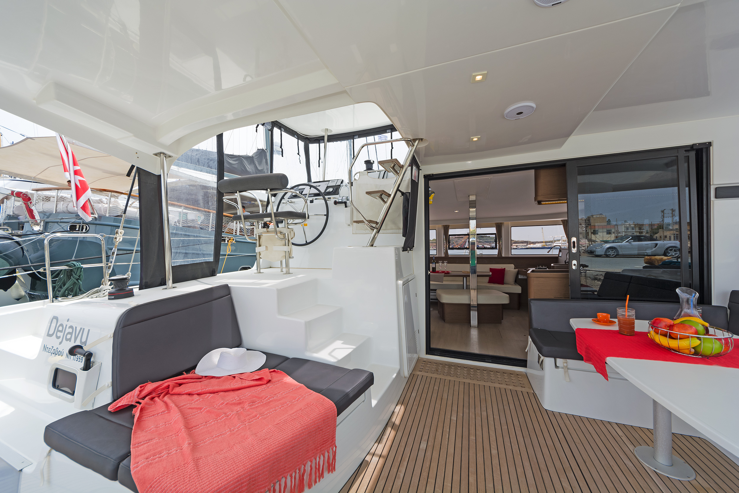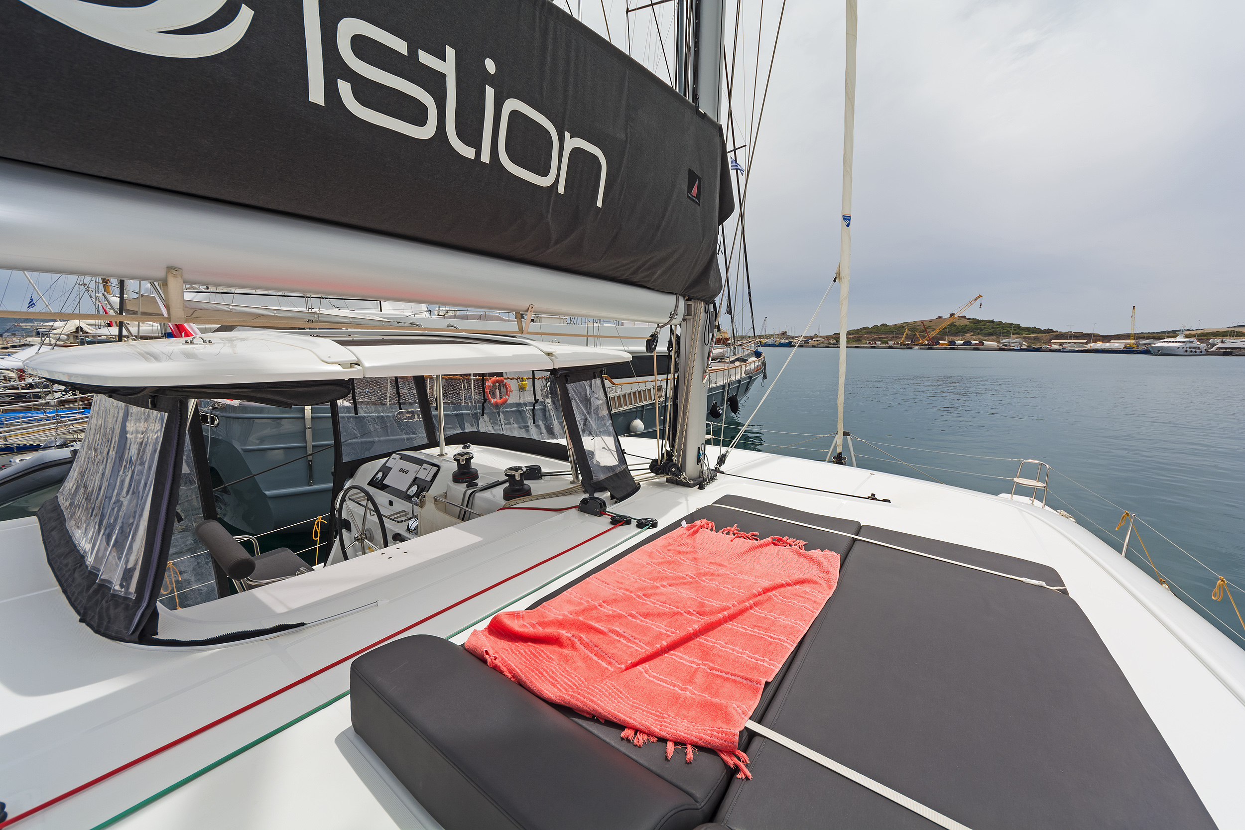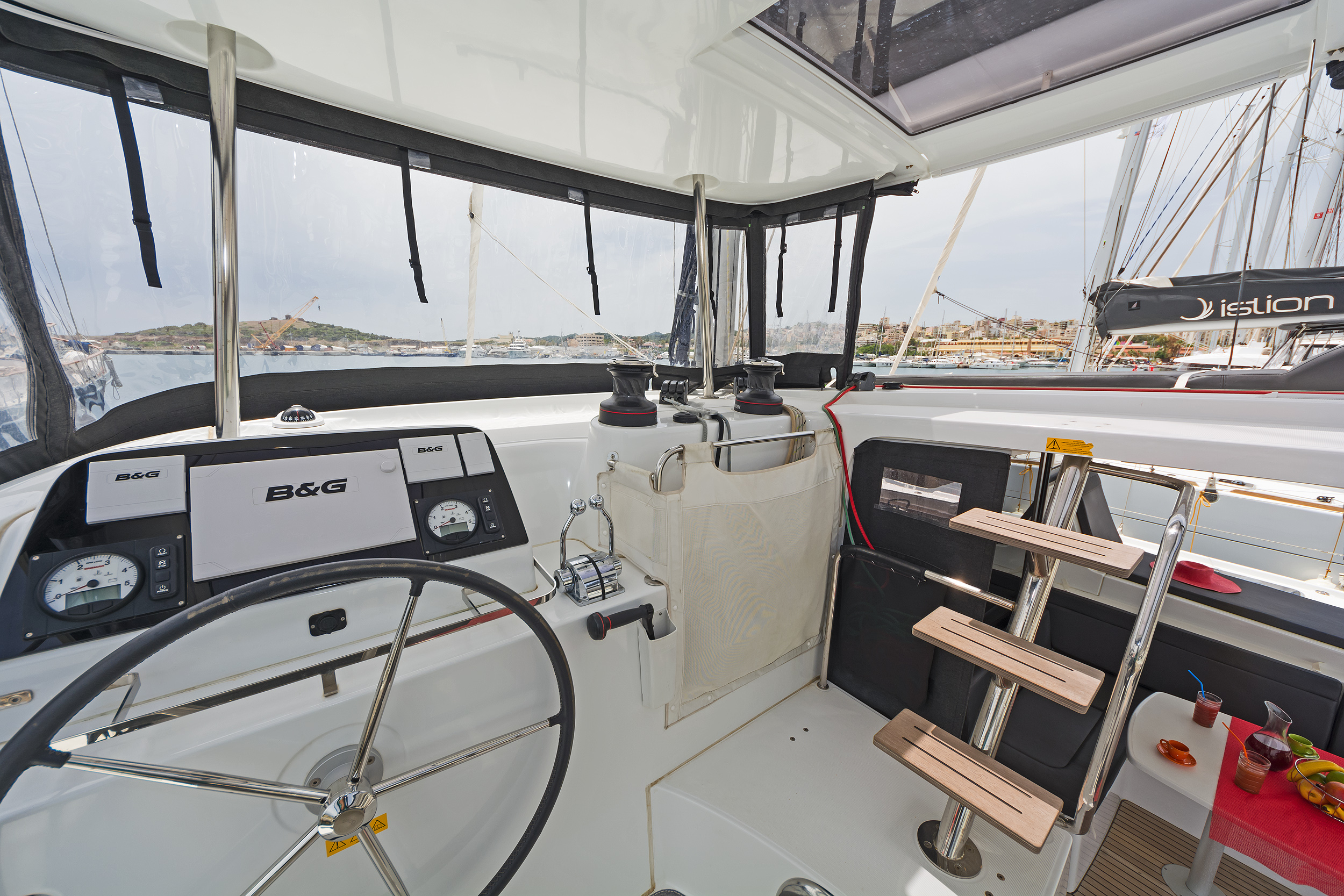 Outside Anker mit Kette, Badeleiter, Biminitop, Bootshaken, Cockpitpolster, Cockpittisch, elektr. Ankerwinsch, elektr. Winsch, Fender, Gangway, Schnorchelausrüstung, Solaranlage, Sprayhood, Wantenschneider, Wasserschlauch, Winschen
