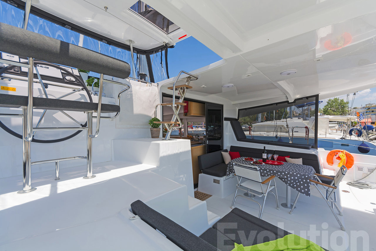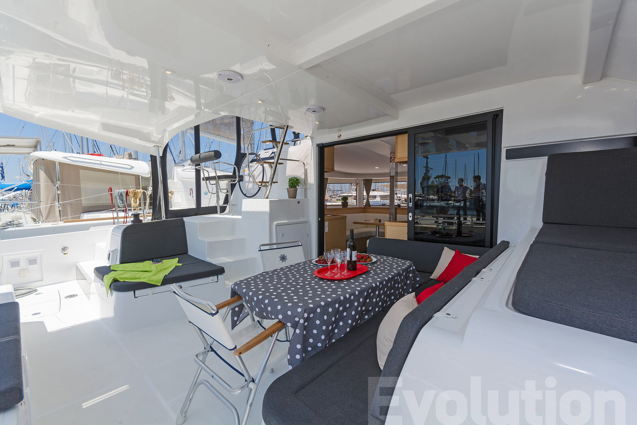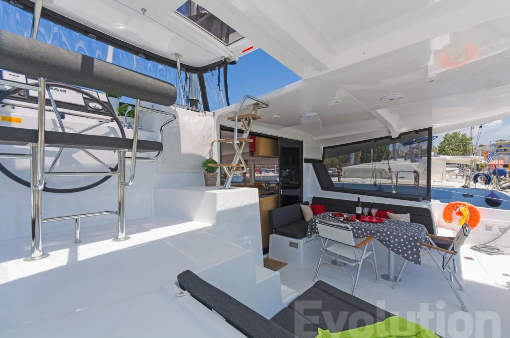 | Outside | 220 V-Landanschluss, Anker mit Kette, Badeleiter, elektr. Ankerwinsch, elektr. Winsch, Fallwinschen, Fender, Gangway, Hardtop, Solaranlage, Sprayhood |
