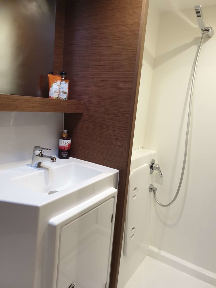 | Inside | Espresso Maschine, Gasherd, Generator, Inverter 12V/220V, Kaffeemaschine, Klimaanlage (ohne Landstrombedarf), Kühlschrank, Ladegerät, Mikrowelle, Warmwasser, Watermaker, WC (elektr.) |