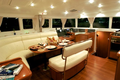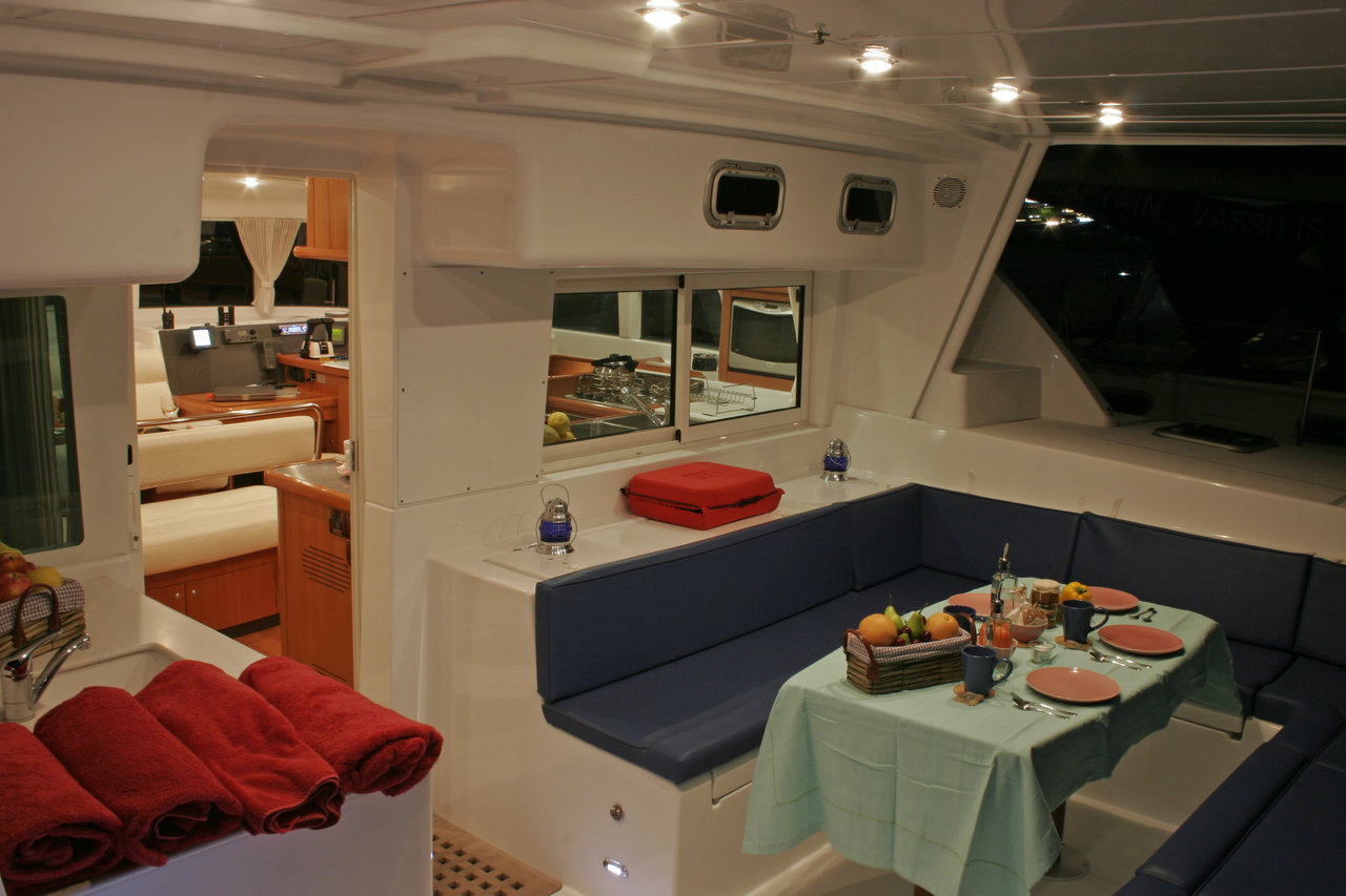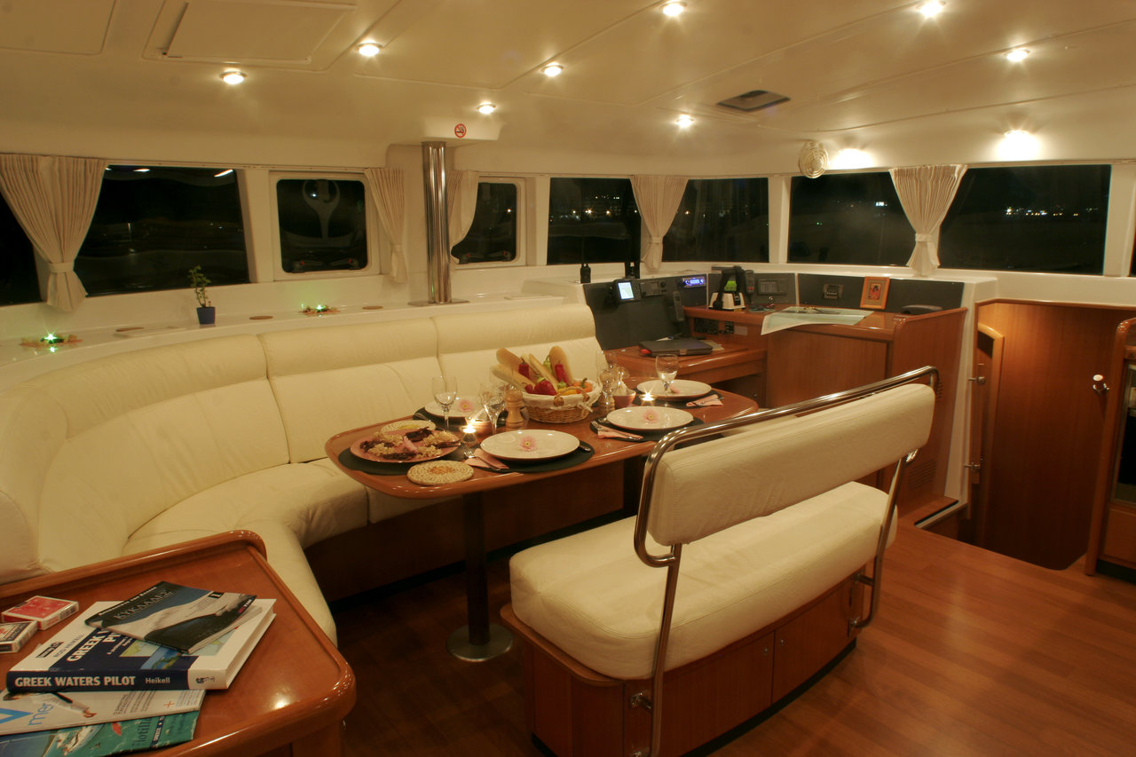 | Inside | Borduhr, Eisbox, Gasherd, Gefrierschrank, Generator, Inverter 12V/220V, Klimaanlage (ohne Landstrombedarf), Kühlschrank, Ladegerät, LCD Fernseher + DVD, Pantryausstattung, Radio mit CD, Trichter, Ventilatoren in Kabinen, Warmwasser, Watermaker |
