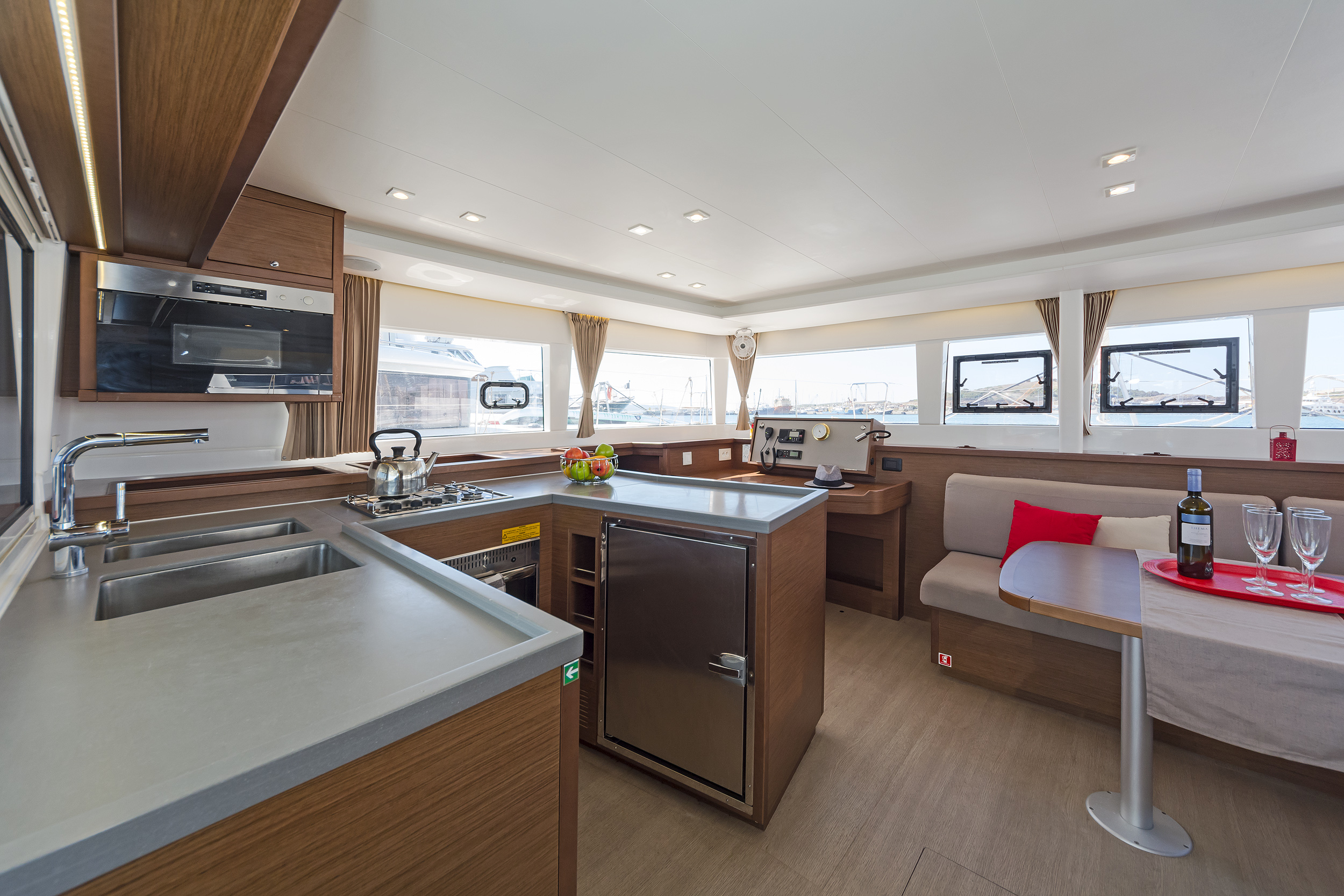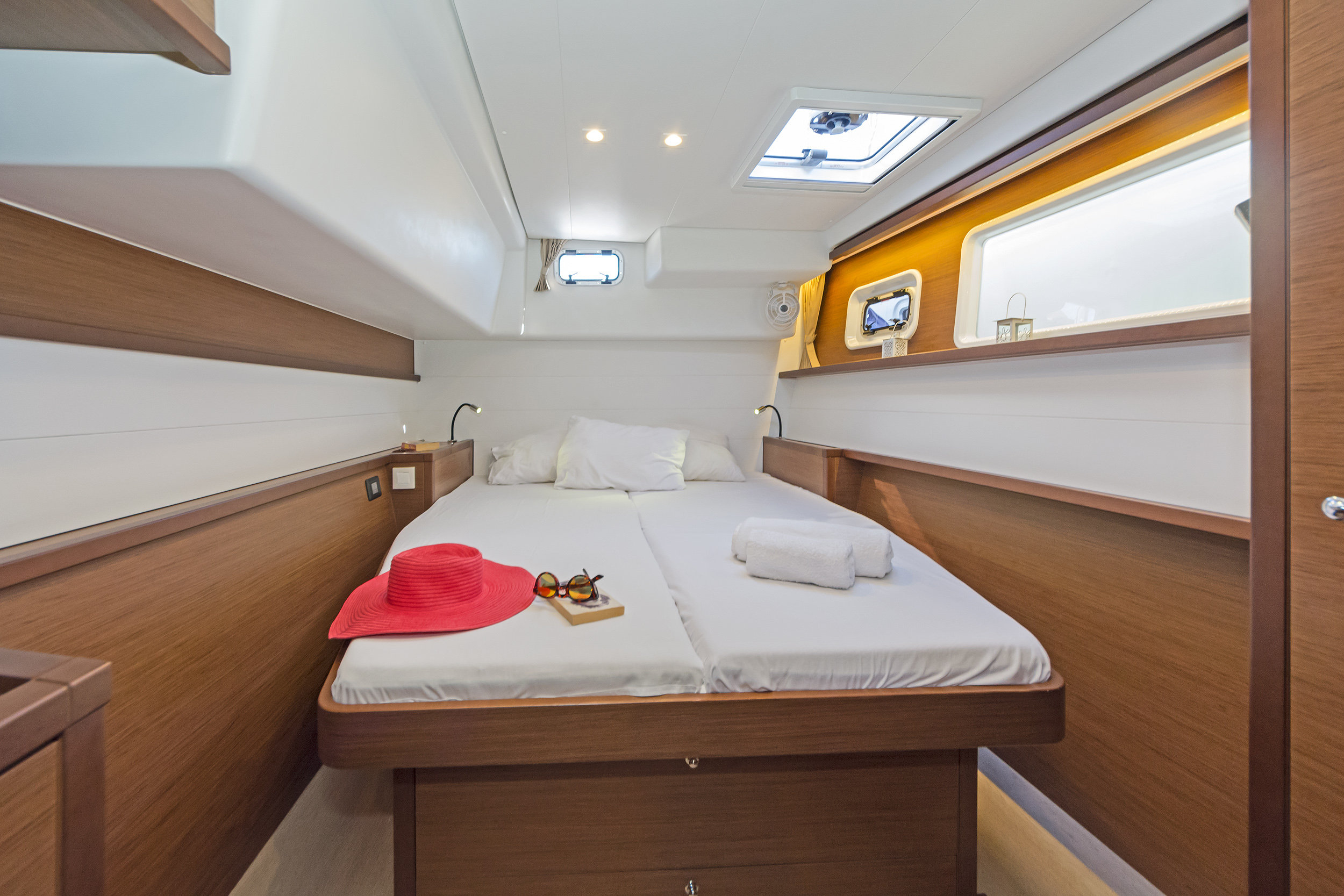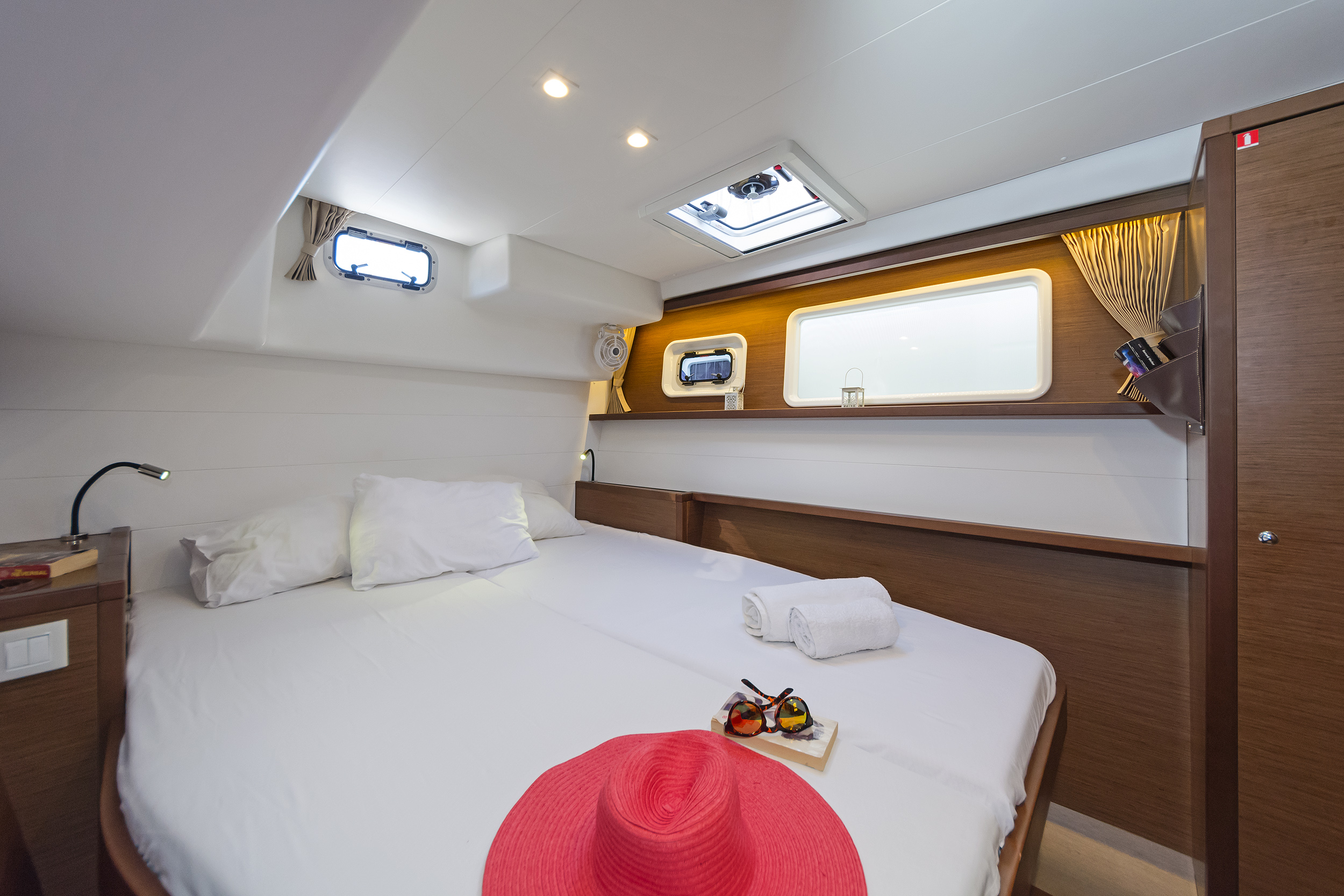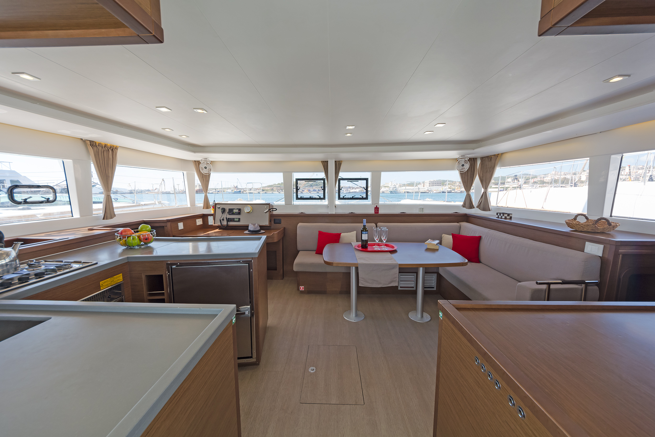 | Inside | 220V Steckdosen, Gasherd, Generator, Inverter 12V/220V, Klimaanlage (ohne Landstrombedarf), Kühlschrank, Ladegerät, Pantryausstattung, Radio mit CD, AUX und USB, USB Steckdose, USB-Ladegerät für Mobilgeräte, Ventilatoren in Kabinen, Warmwasser, WC (elektr.) |