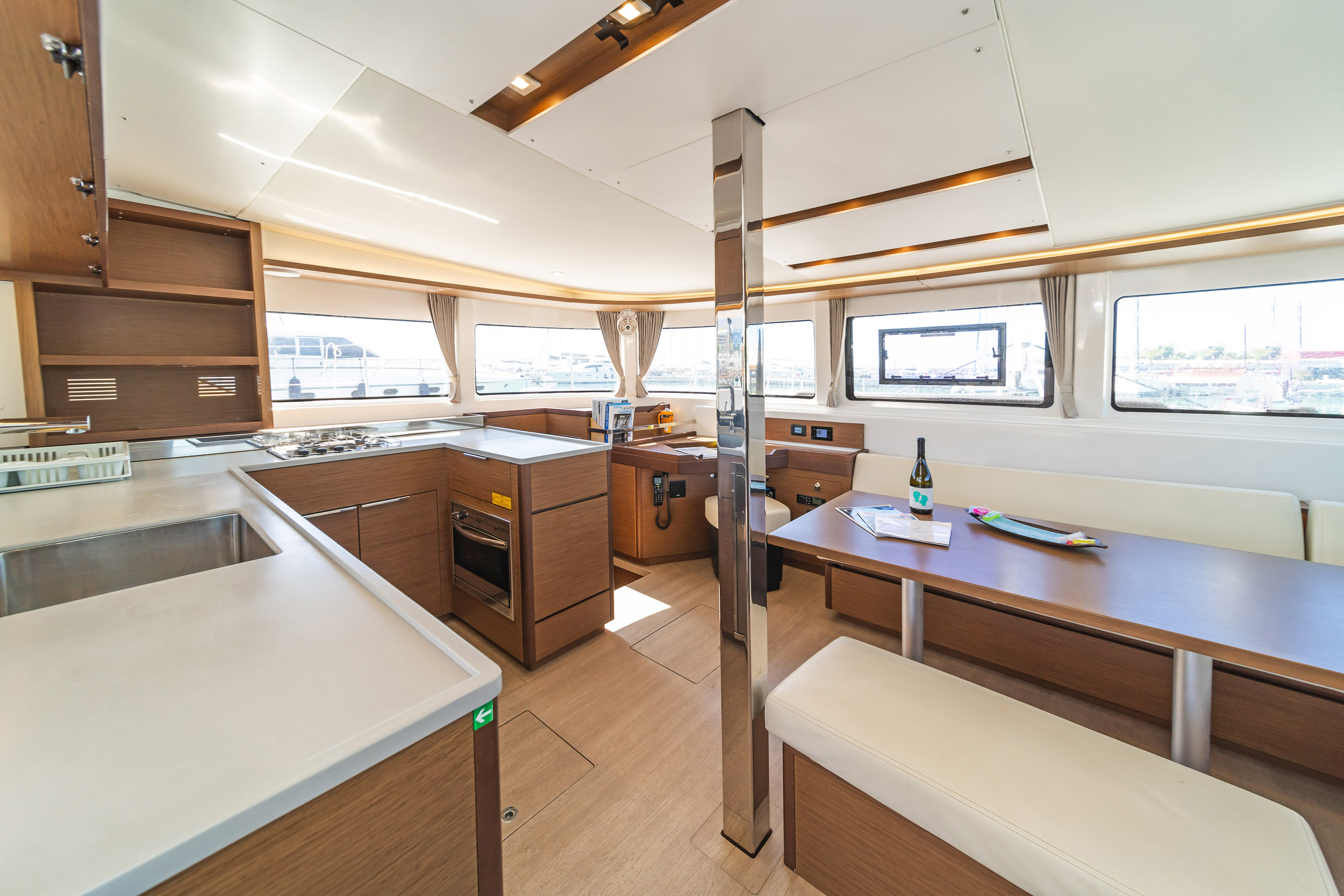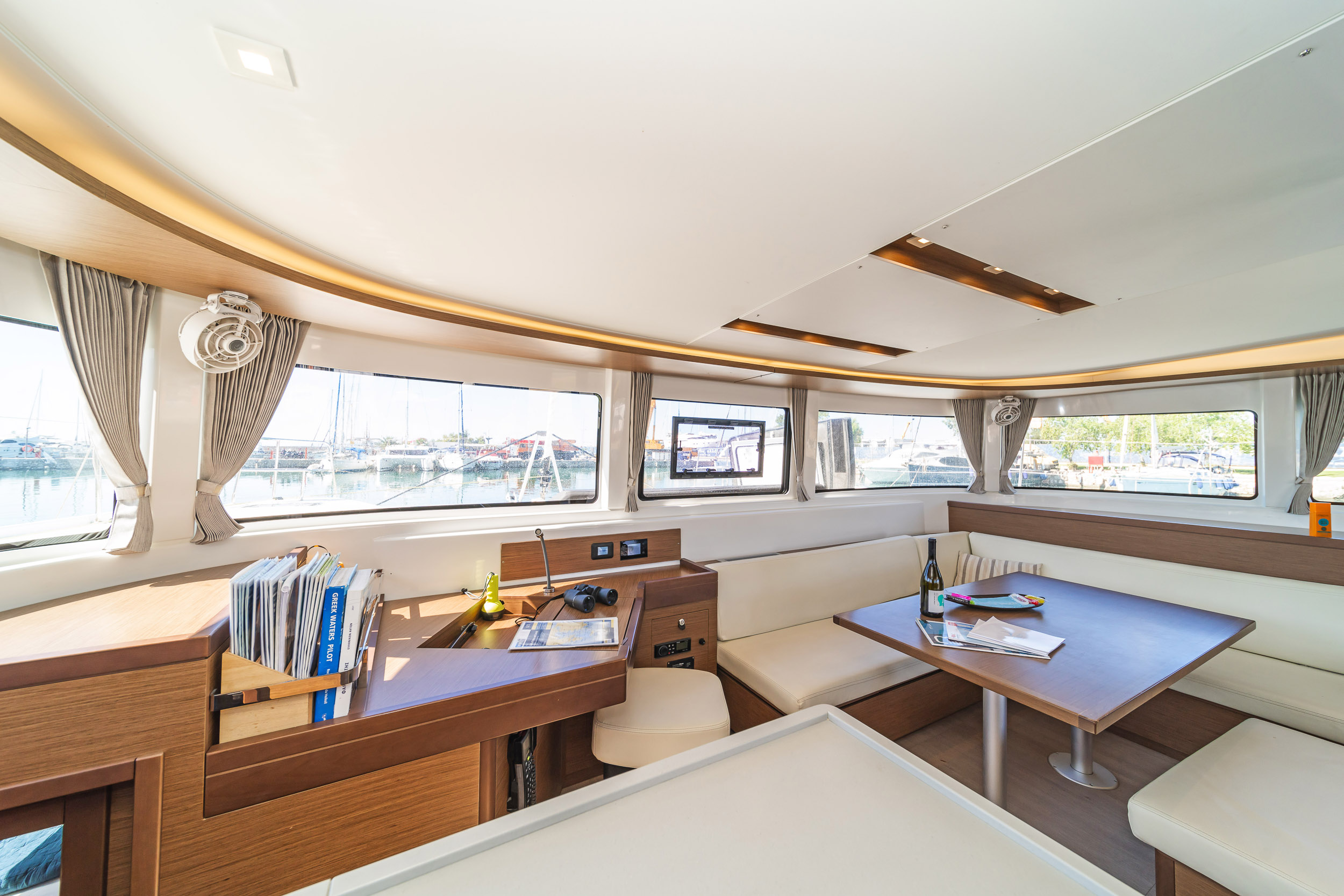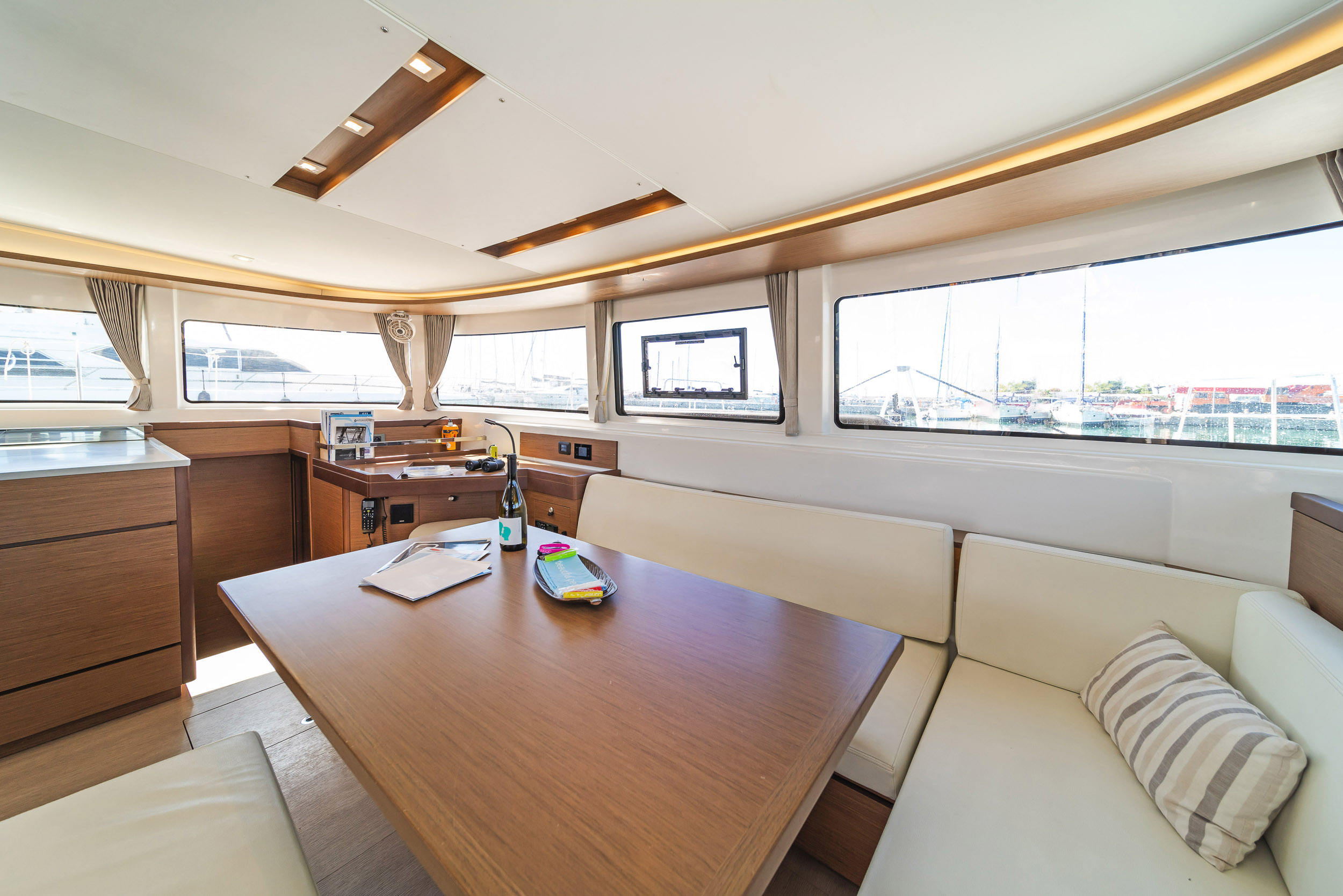 | Inside | 220V Steckdosen, Generator, Heizung, Inverter 12V/220V, Kaffeemaschine, Klimaanlage (ohne Landstrombedarf), Ladegerät, Lautsprecher im Salon, Pantryausstattung, Radio, Radio mit CD, AUX und USB, Radio mit CD, USB, Bluetooth, Watermaker, WC (elektr.) |