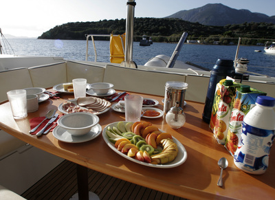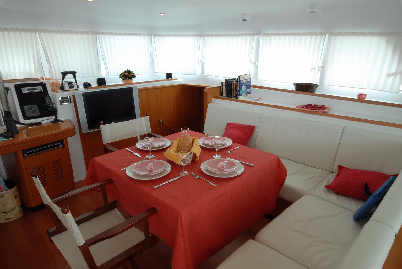 | Inside | CD-Player, Eisbox, Generator, Inverter 12V/220V, Klimaanlage (ohne Landstrombedarf), Ladegerät, TV + DVD, Ventilatoren in Kabinen, Watermaker |