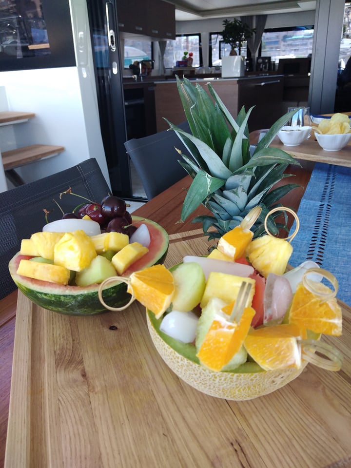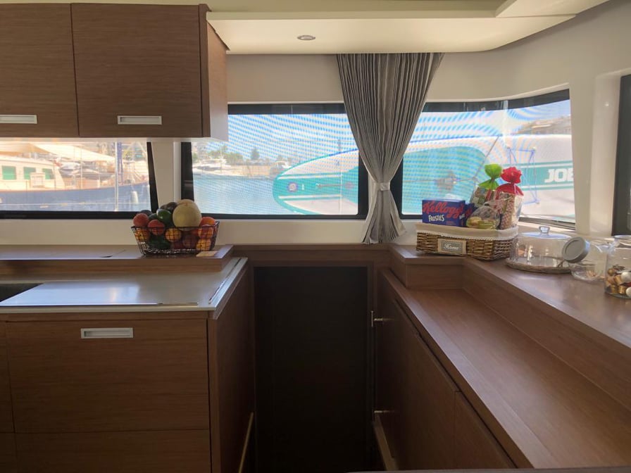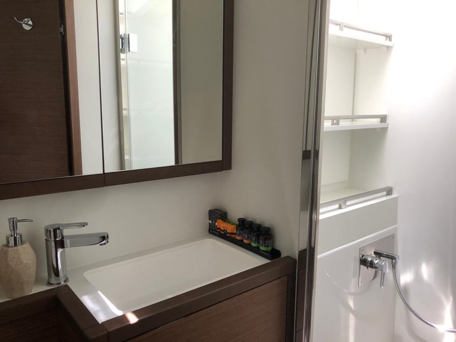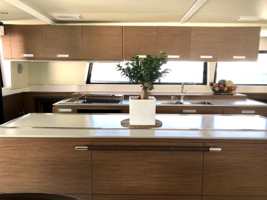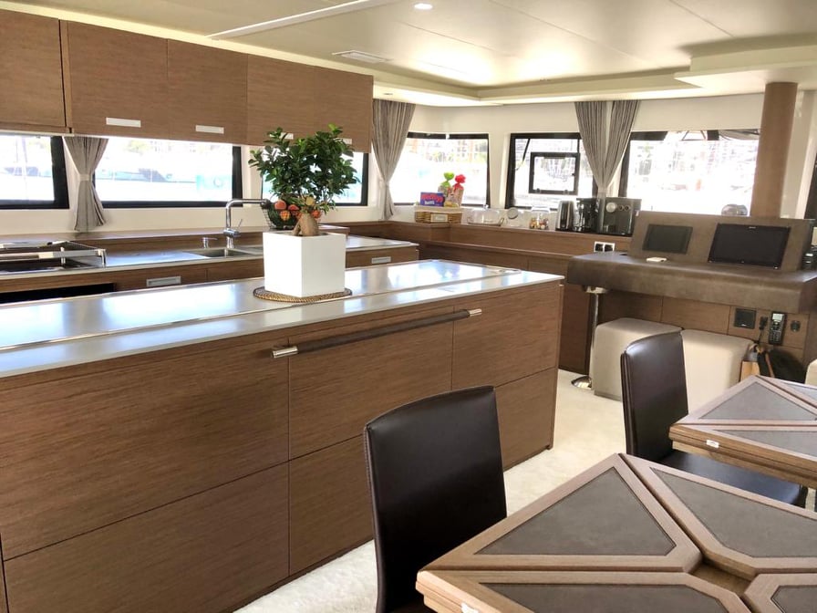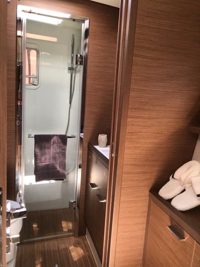 | Inside | Eiswürfelmaschine, Espresso Maschine, Gasherd, Generator, Inverter 12V/220V, Kaffeemaschine, Klimaanlage (ohne Landstrombedarf), Kühlschrank, Ladegerät, Mikrowelle, Warmwasser, Watermaker, WC (elektr.) |