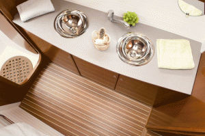 | Outside | 12 V-Anschluss, Biminitop, Cockpitdusche, Cockpitlautsprecher, Cockpittisch mit Eisbox, elektr. Ankerwinsch, Gangway, Sprayhood, Teakdeck |