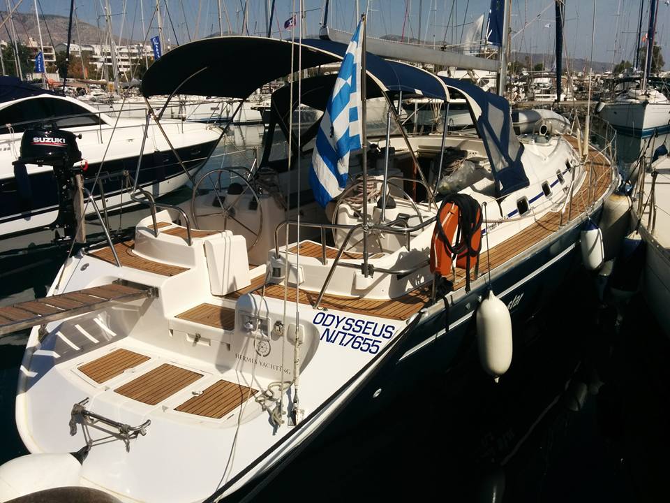 | Outside | Badeleiter, Biminitop, Bootshaken, Cockpitdusche, Cockpitlautsprecher, Cockpittisch, elektr. Ankerwinsch, Fender, Festmacherleinen, Segel-Flickwerkzeug, Teak im Cockpit, Teakdeck |