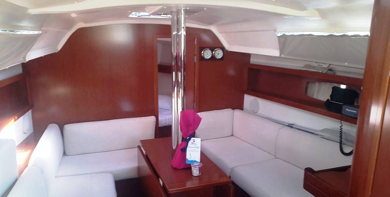 | Outside | 12 V-Anschluss, Badeleiter, Biminitop, Cockpitdusche, Cockpitlautsprecher, Cockpitpolster, Cockpittisch, elektr. Ankerwinsch, Solaranlage, Sprayhood, Windex |