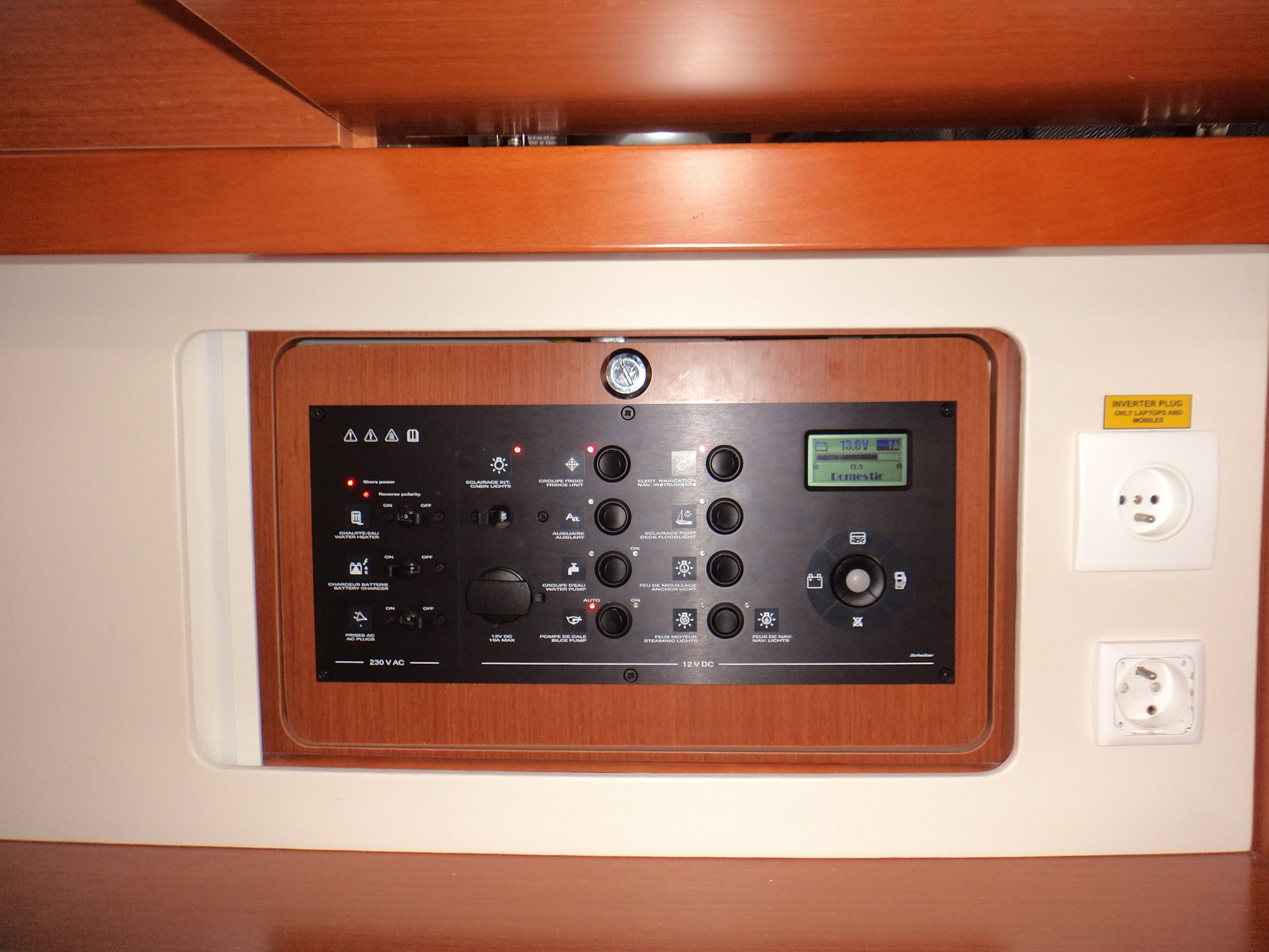 | Outside | 220 V-Landanschluss, Badeleiter, Biminitop, Cockpitdusche warm/kalt, Cockpitlautsprecher, Cockpitpolster, Cockpittisch, elektr. Ankerwinsch, Gangway, Selbstholende Winschen, Sprayhood |