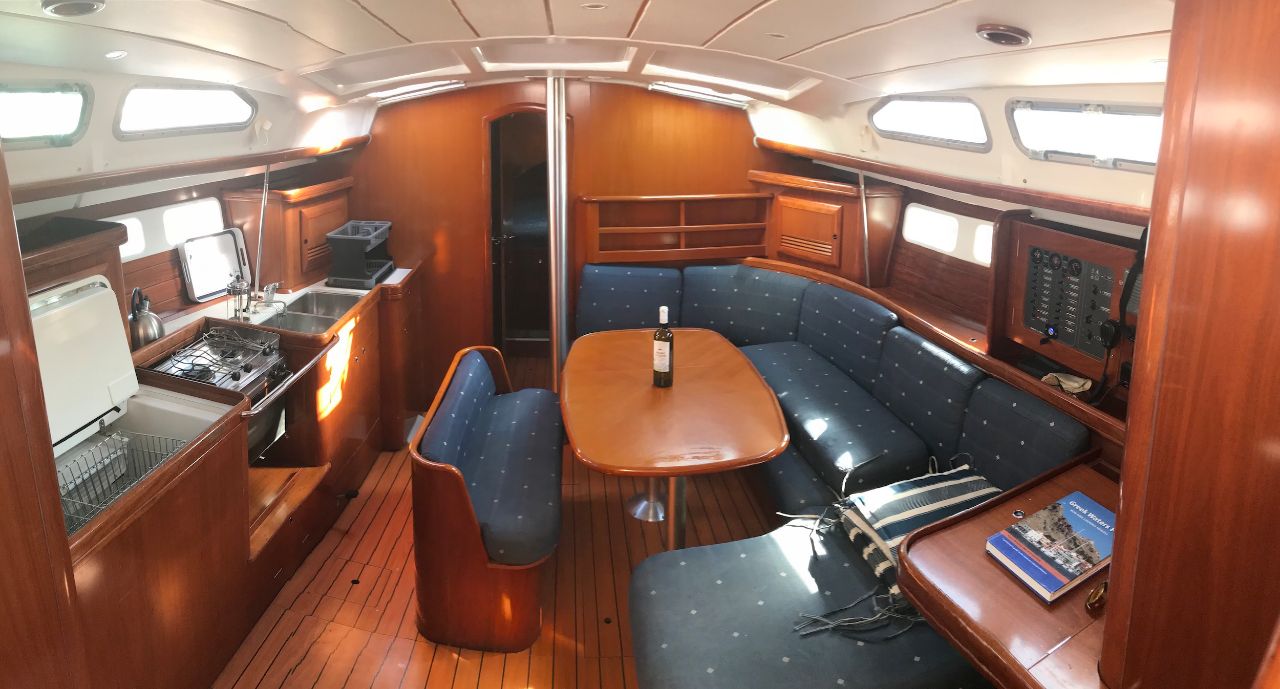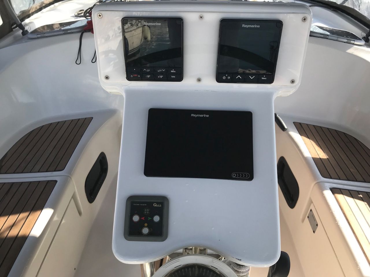 | Navigation | elektr. Seekarten, GPS mit Kartenplotter im Cockpit, Hafenhandbücher, Kompass, Sumlog, Windmesser |