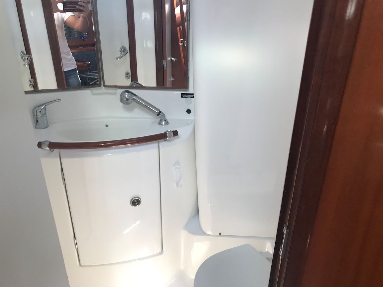 | Outside | Anker mit Kette, Badeleiter, Biminitop, Cockpitdusche, Cockpitlautsprecher, Cockpittisch, elektr. Ankerwinsch, Fender, Festmacherleinen, Gangway, Sprayhood, Teak im Cockpit, Winschen |