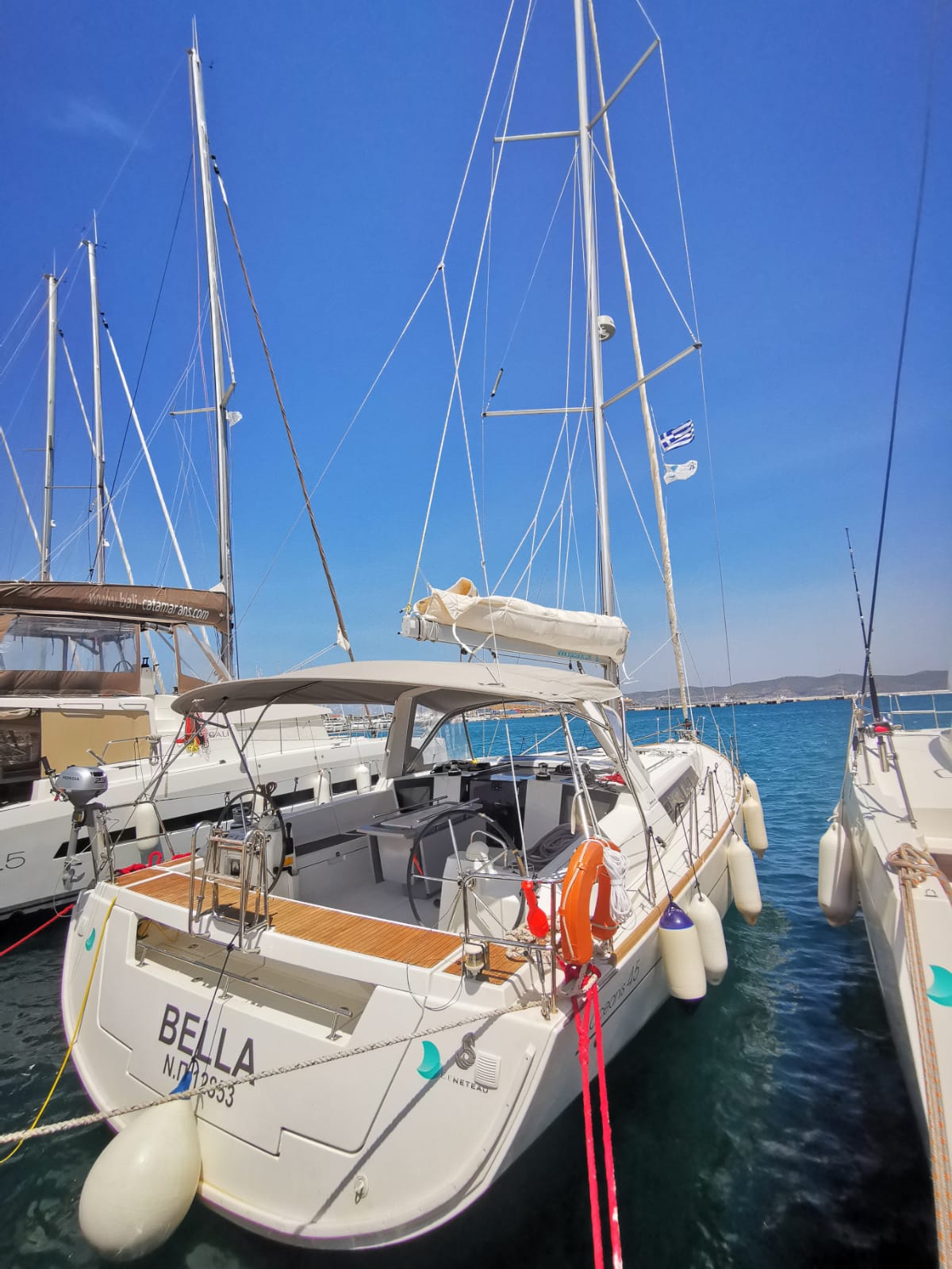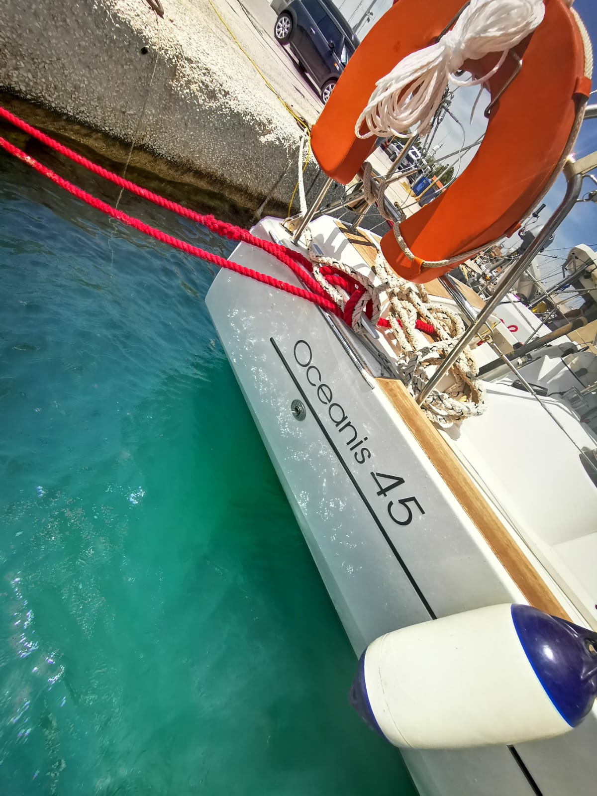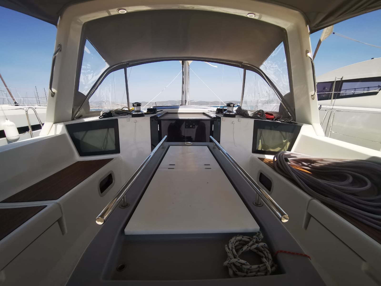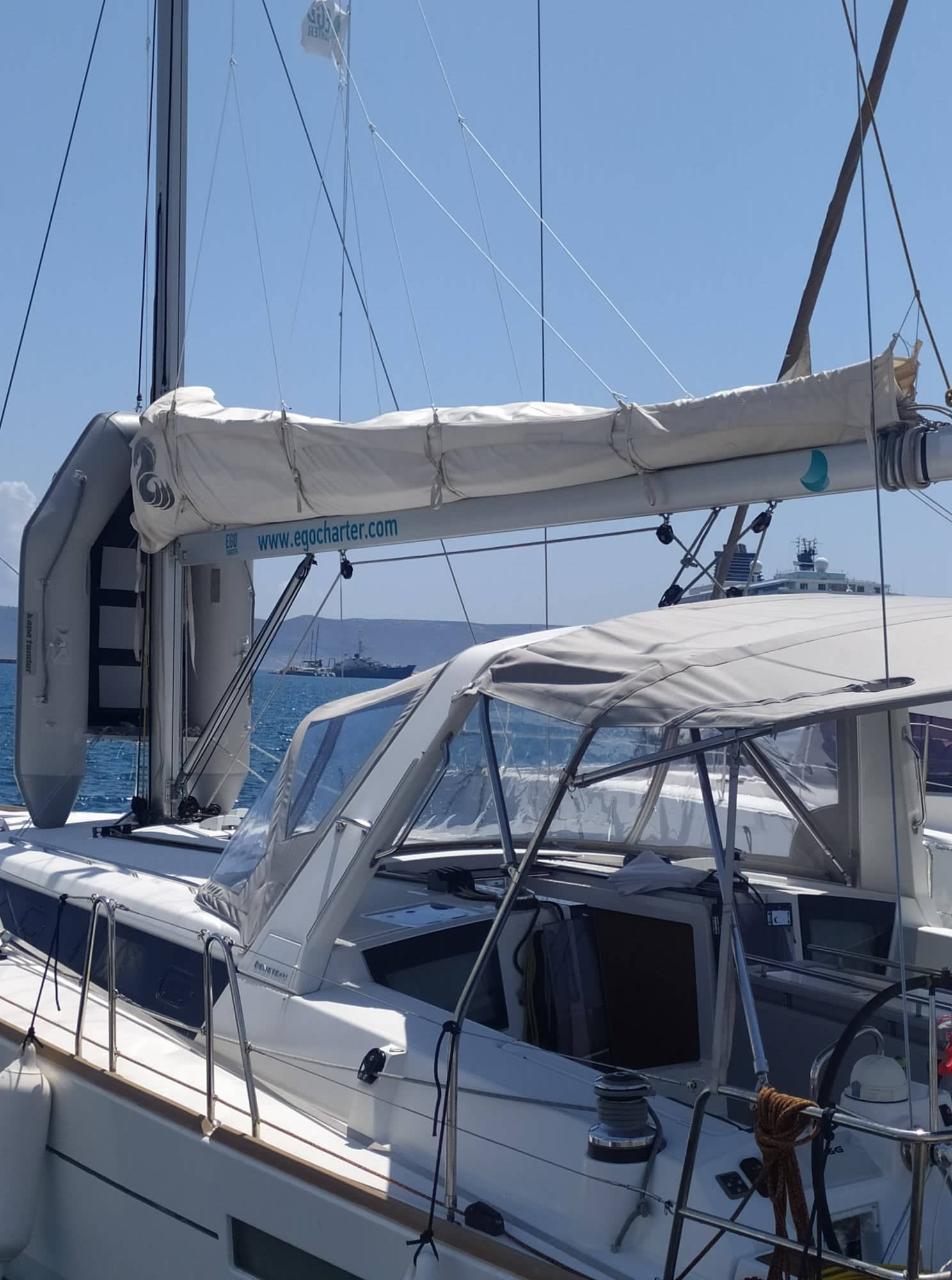 | Outside | 12 V-Anschluss, 220 V-Landanschluss, Badeleiter, Badeplattform, Biminitop, Cockpitdusche, Cockpitlautsprecher, Cockpitpolster, Cockpittisch, elektr. Ankerwinsch, Fender, Festmacherleinen, Heckdusche, Schnorchelausrüstung, Segel-Flickwerkzeug, Selbstholende Winschen, Sprayhood, Windex |