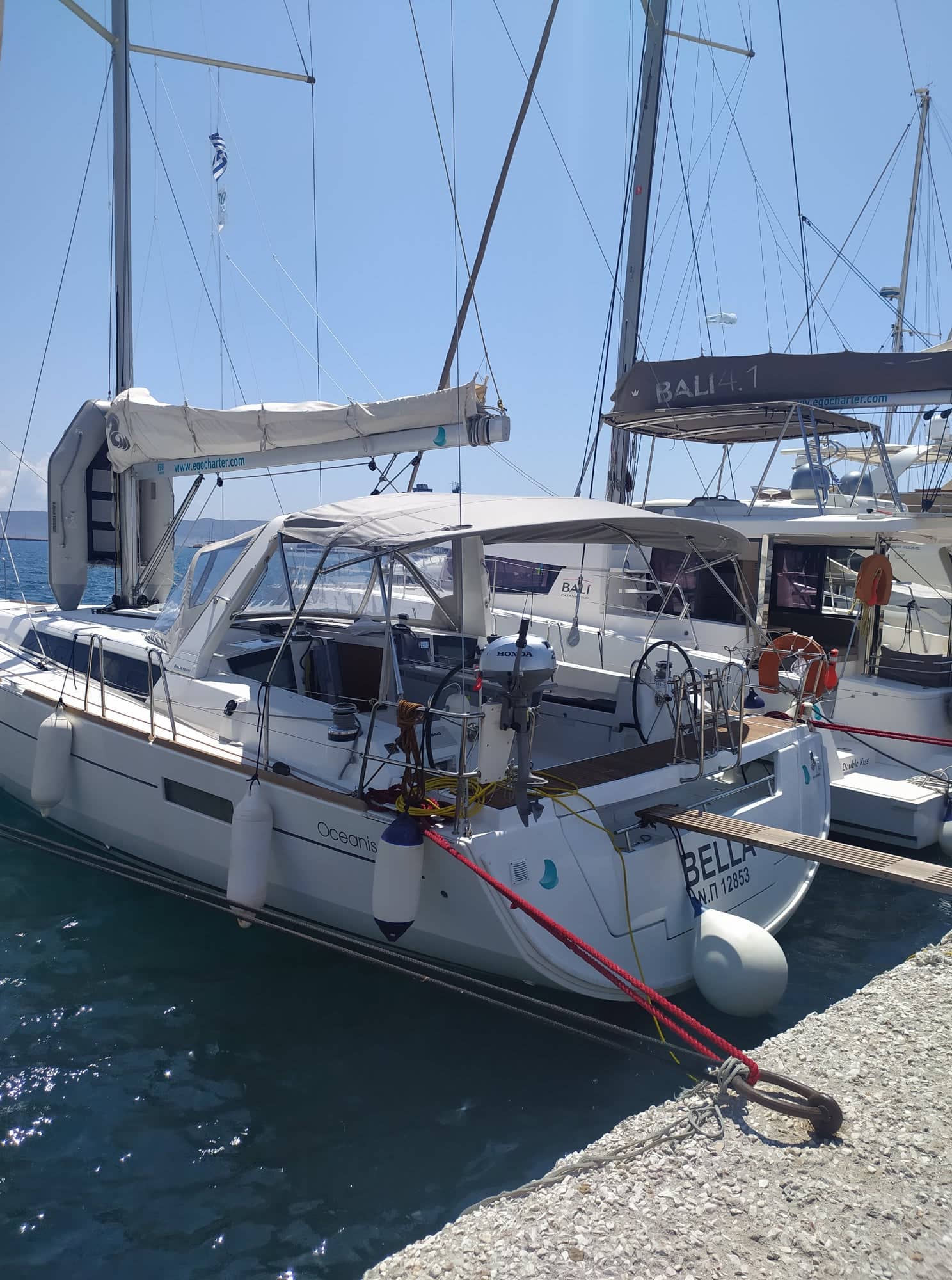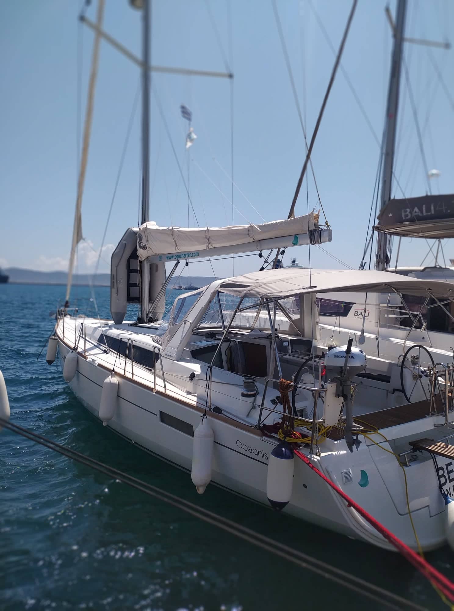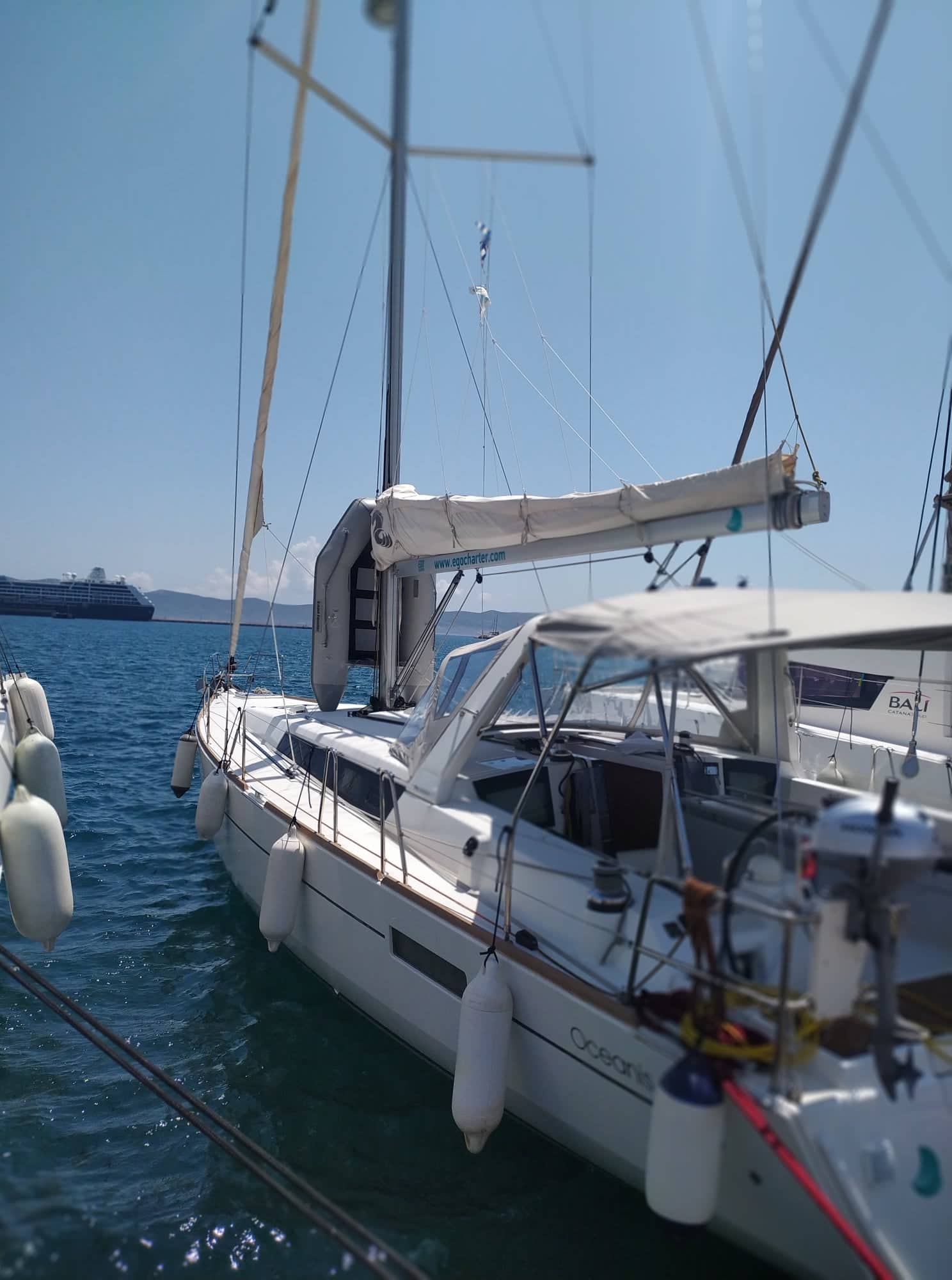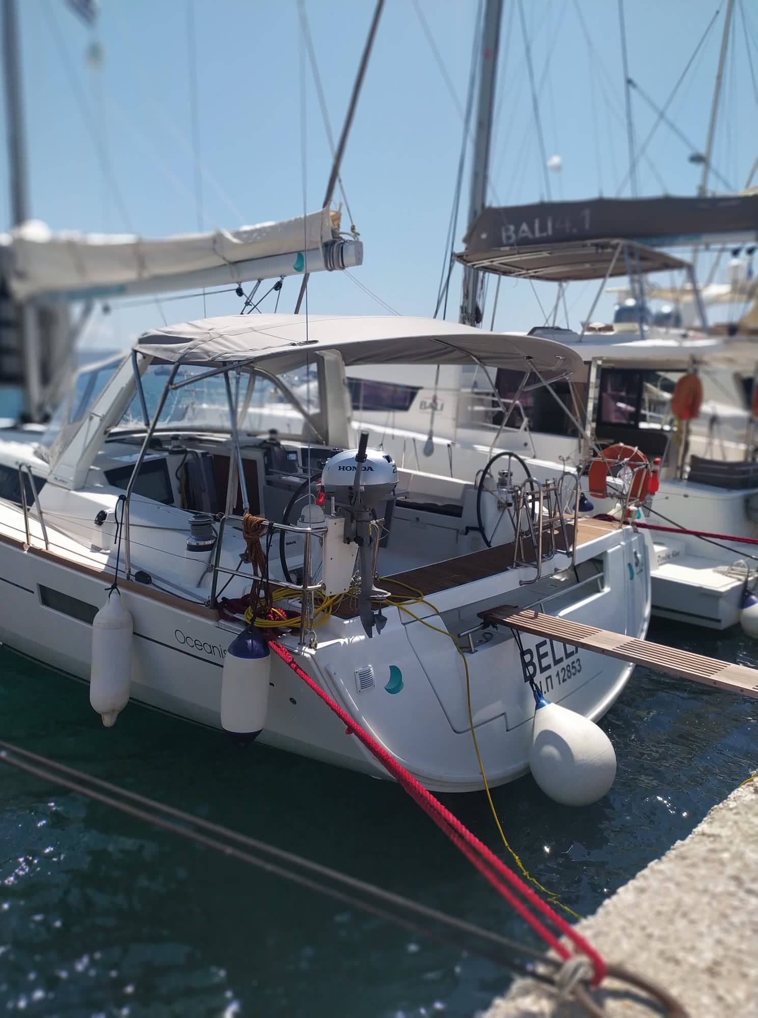 | Outside | 12 V-Anschluss, 220 V-Landanschluss, Badeleiter, Badeplattform, Biminitop, Cockpitdusche, Cockpitlautsprecher, Cockpitpolster, Cockpittisch, elektr. Ankerwinsch, Fender, Festmacherleinen, Heckdusche, Schnorchelausrüstung, Segel-Flickwerkzeug, Selbstholende Winschen, Sprayhood, Windex |