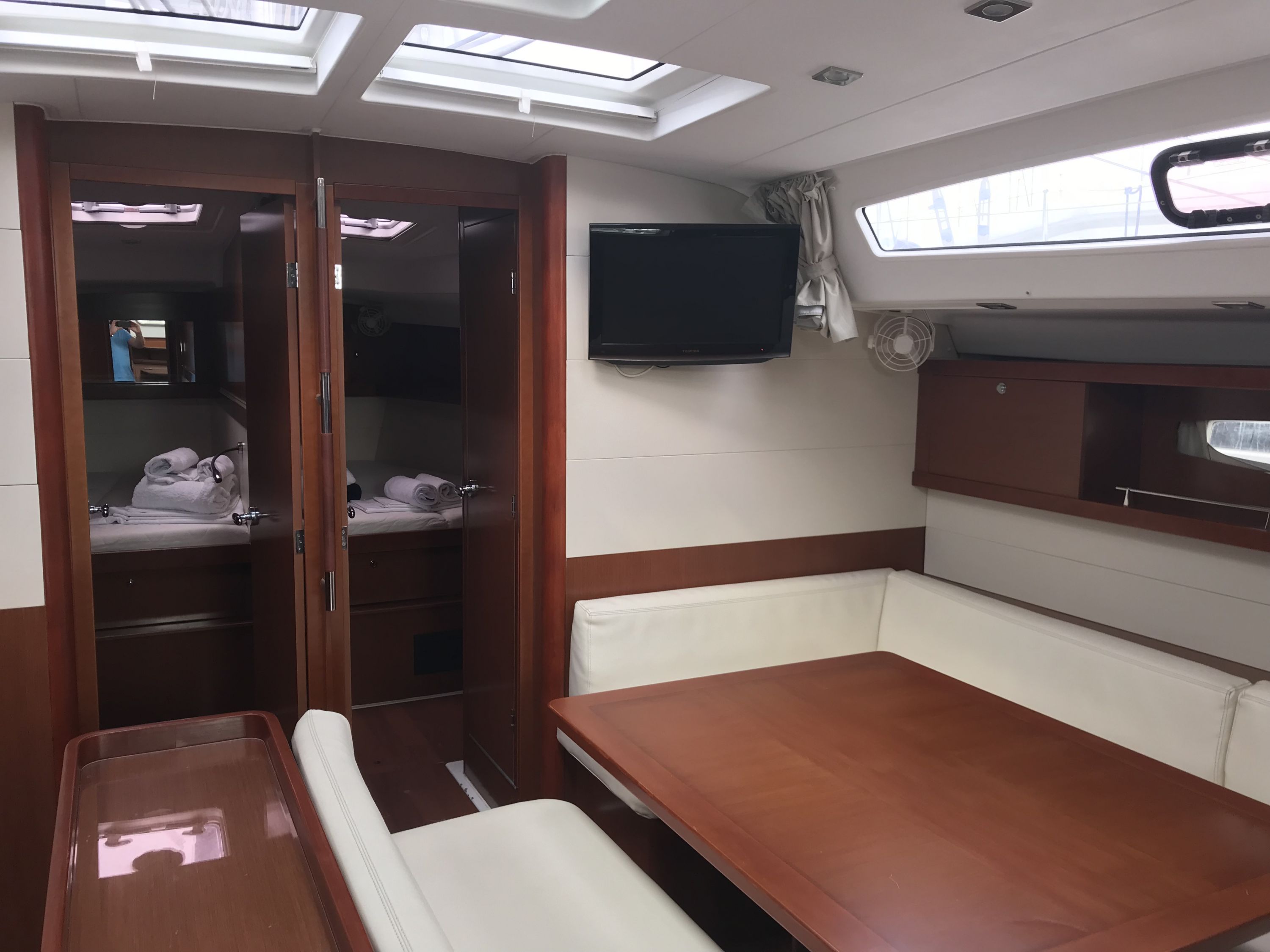 Inside 12V Steckdose, Bluetooth Player, Eisbox, Fäkalientank, Generator, Inverter 12V/220V, Klimaanlage (ohne Landstrombedarf), Kühlschrank, Ladegerät, Salontisch absenkbar, TV, Warmwasser, WC (elektr.)