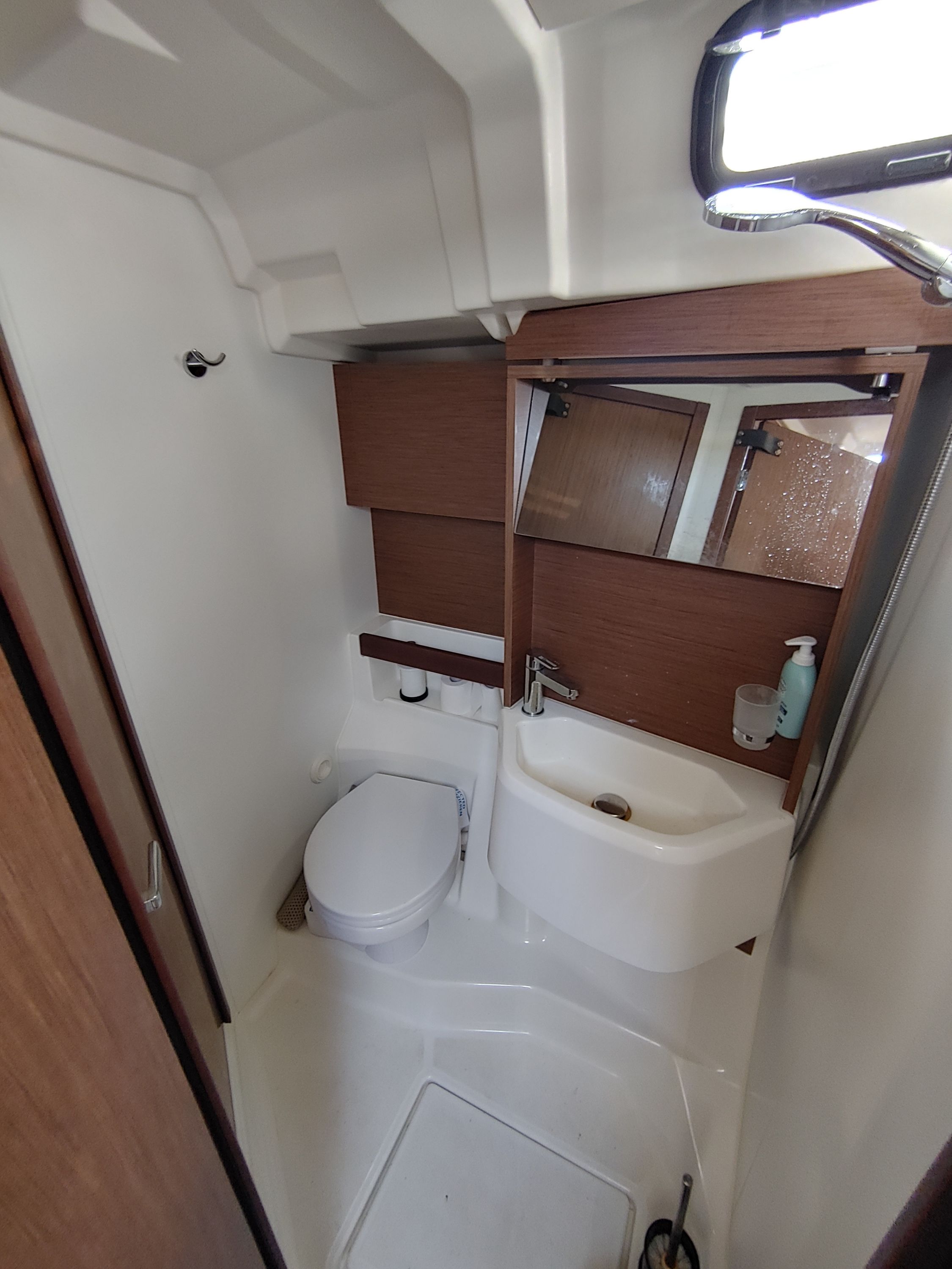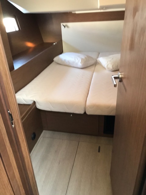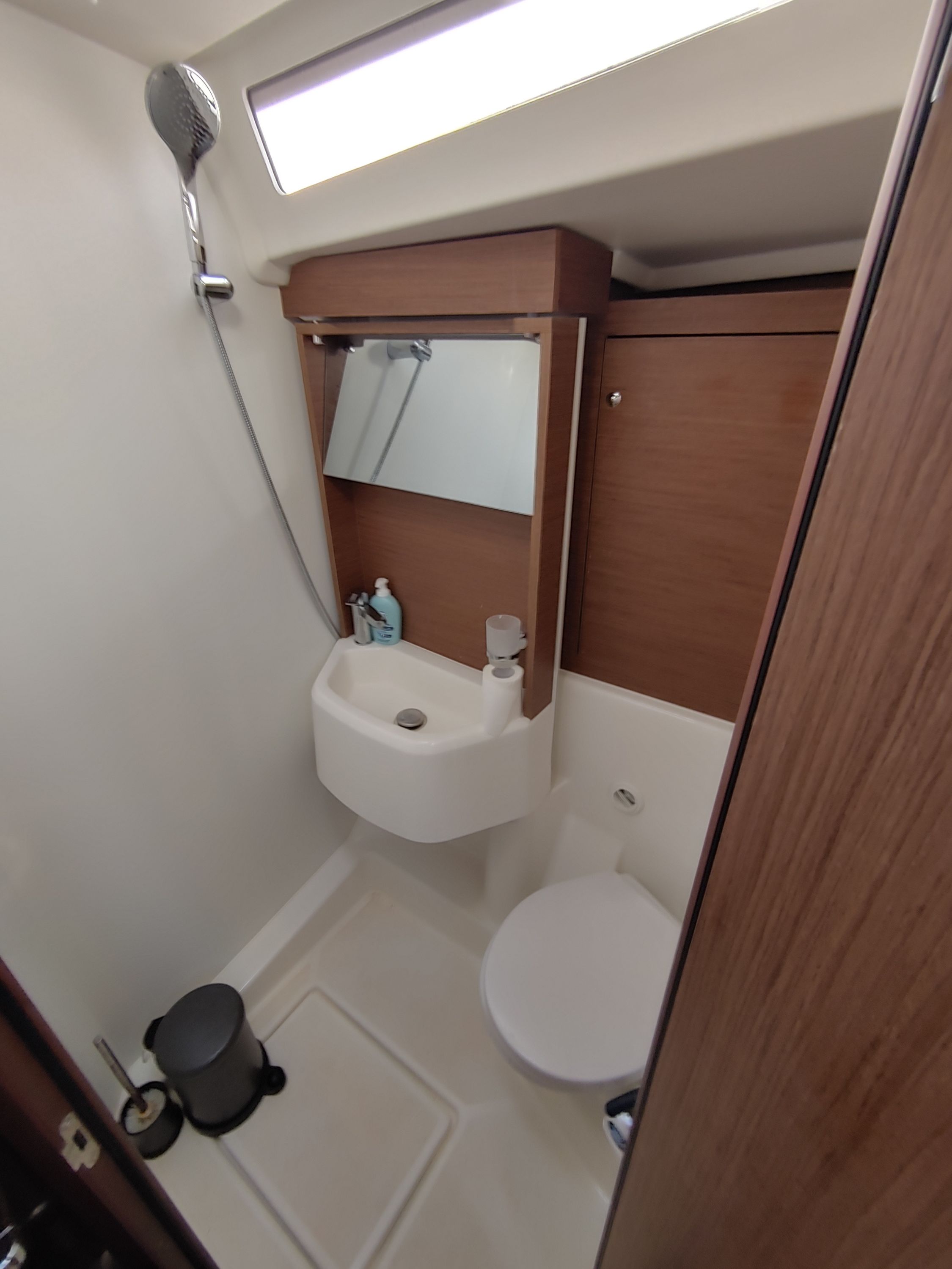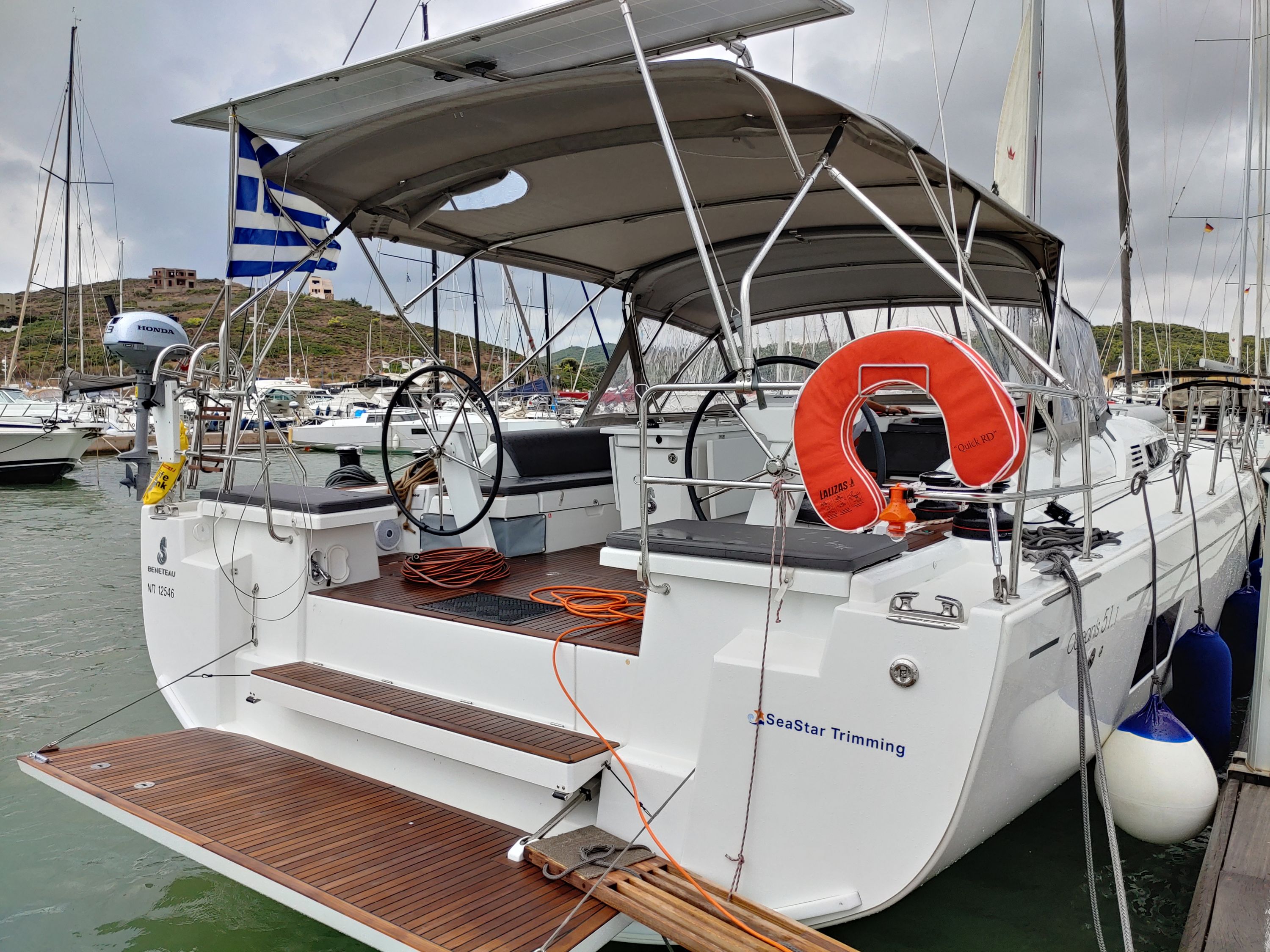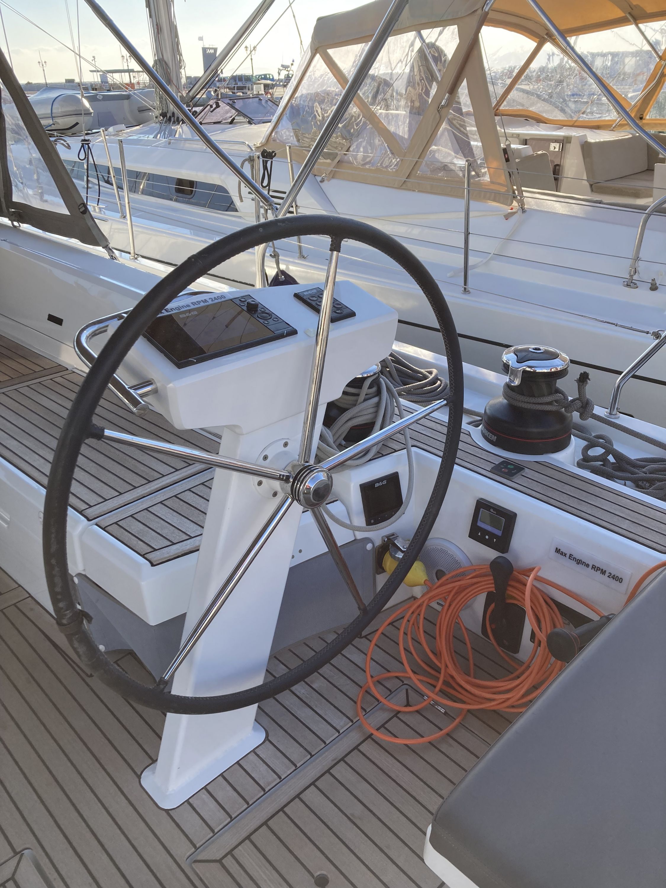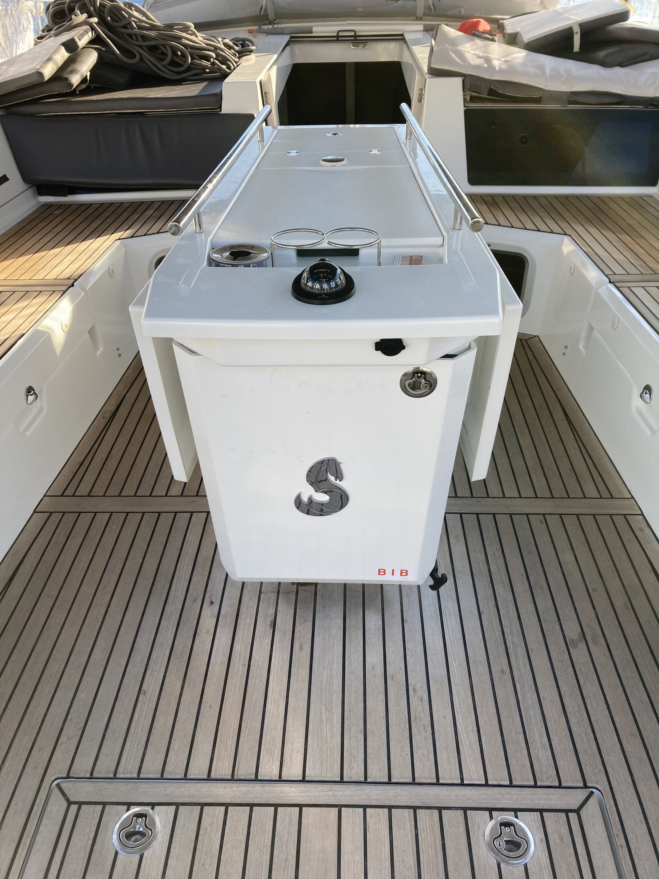 | Outside | 220 V Landstromkabel mit Ladegerät, 220 V-Landanschluss, Ankerwinsch, Badeleiter, Badeplattform, Biminitop, Cockpitdusche, Cockpitkühlschrank, Cockpitlautsprecher, Cockpittisch, Delta-Anker, elektr. Ankerwinsch, Faltpropeller, Fender, Festmacherleinen, Schnorchelausrüstung, Solaranlage, Sprayhood, Teak auf Badeplattform, Teak im Cockpit |