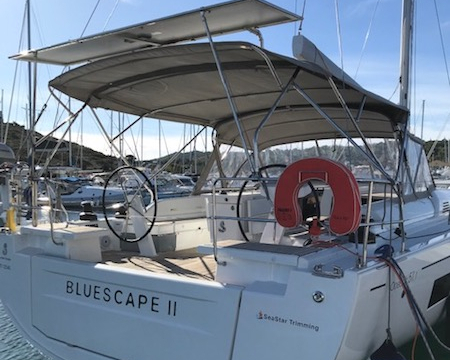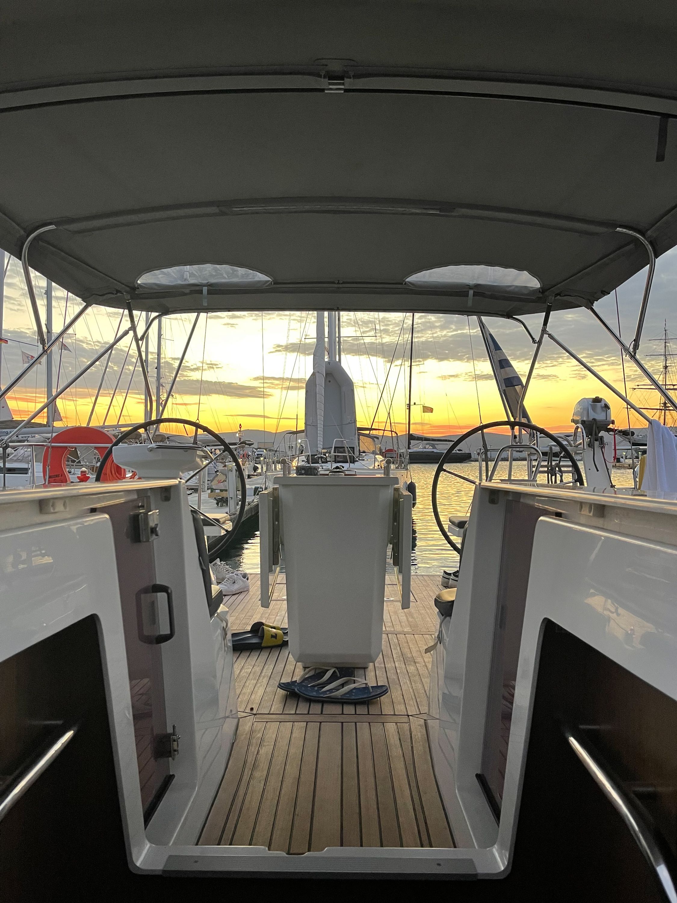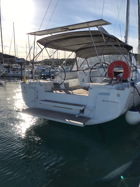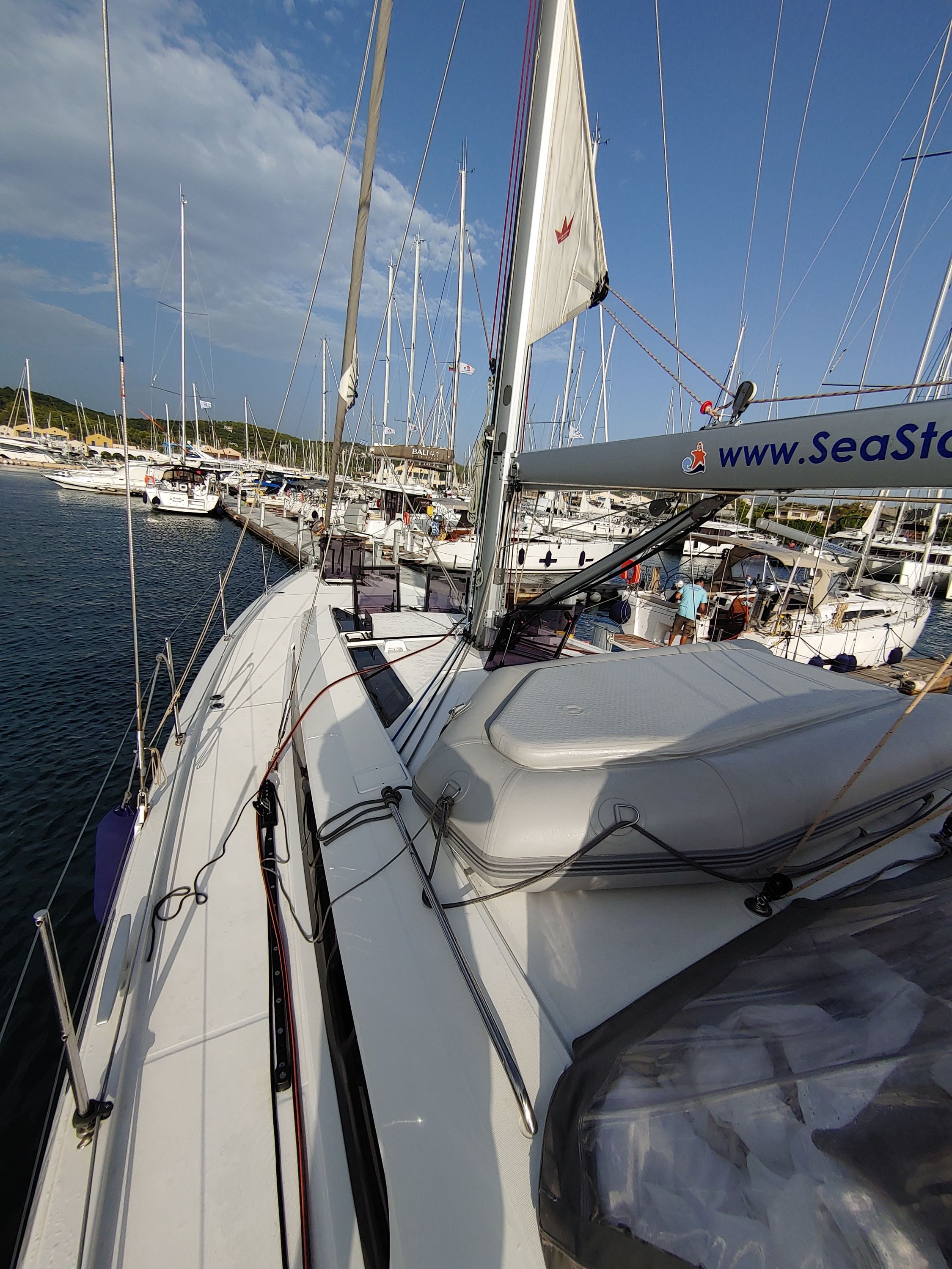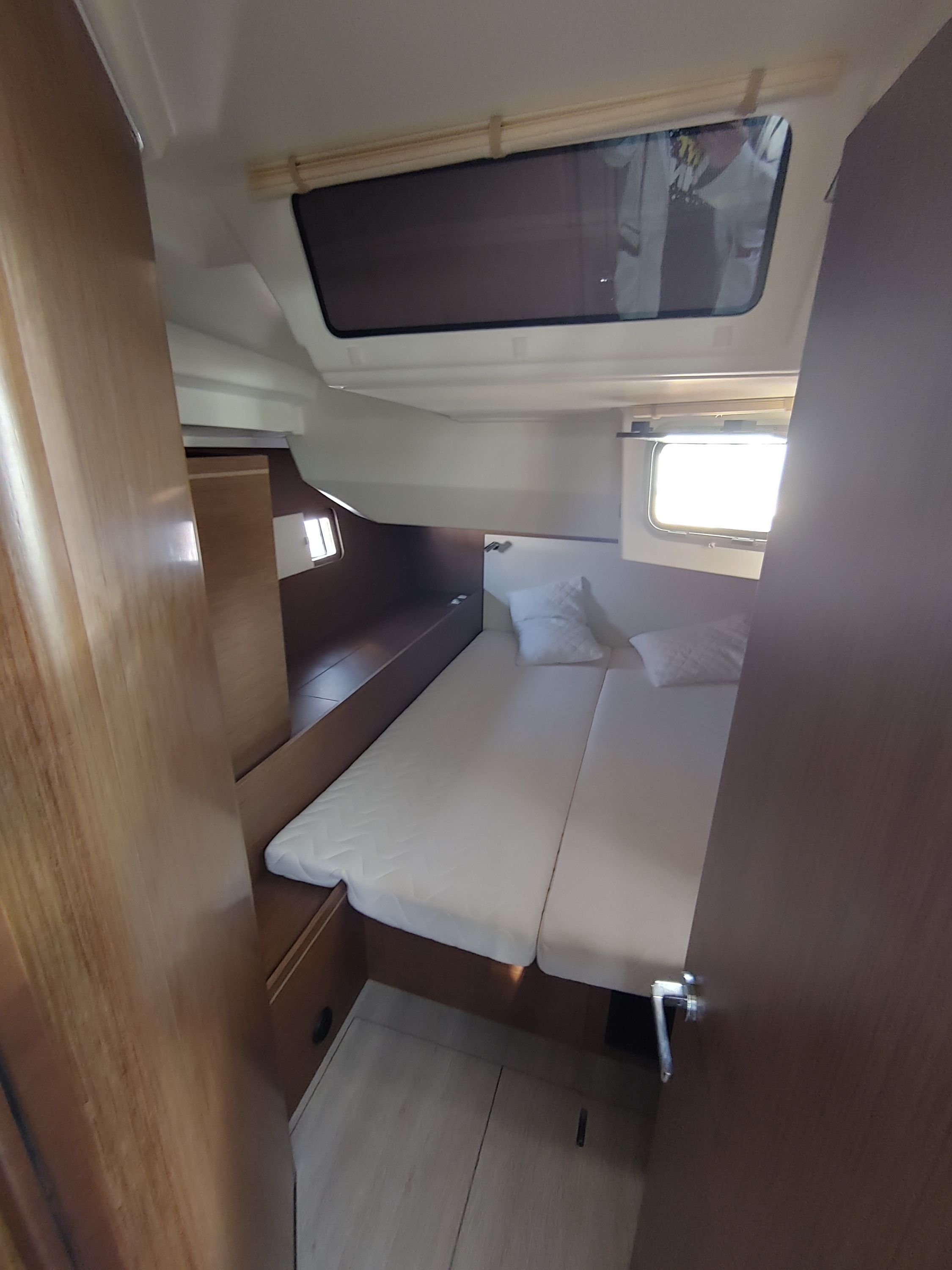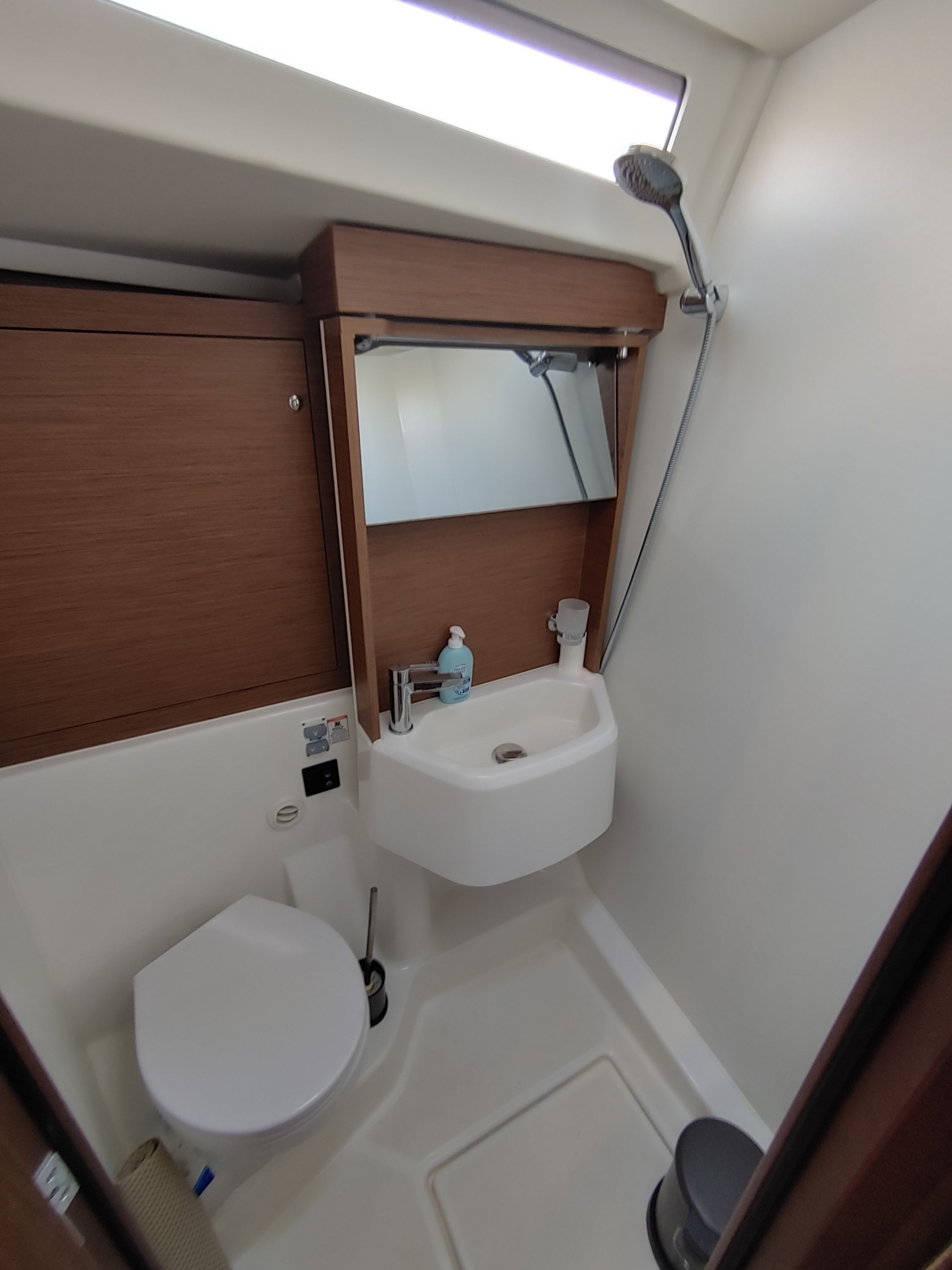 | Outside | 220 V Landstromkabel mit Ladegerät, 220 V-Landanschluss, Ankerwinsch, Badeleiter, Badeplattform, Biminitop, Cockpitdusche, Cockpitkühlschrank, Cockpitlautsprecher, Cockpittisch, Delta-Anker, elektr. Ankerwinsch, Faltpropeller, Fender, Festmacherleinen, Schnorchelausrüstung, Solaranlage, Sprayhood, Teak auf Badeplattform, Teak im Cockpit |