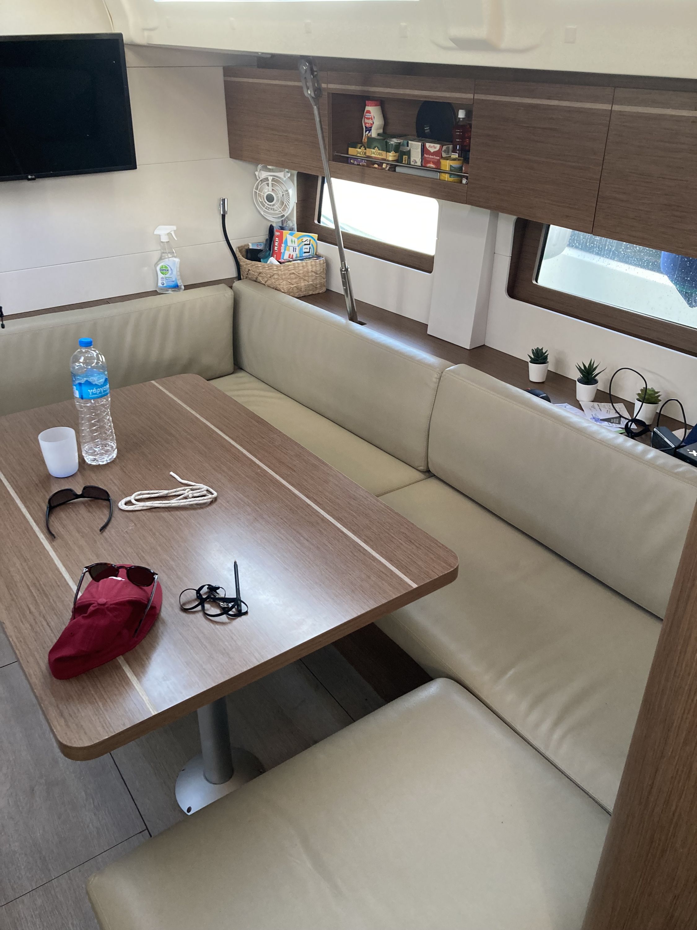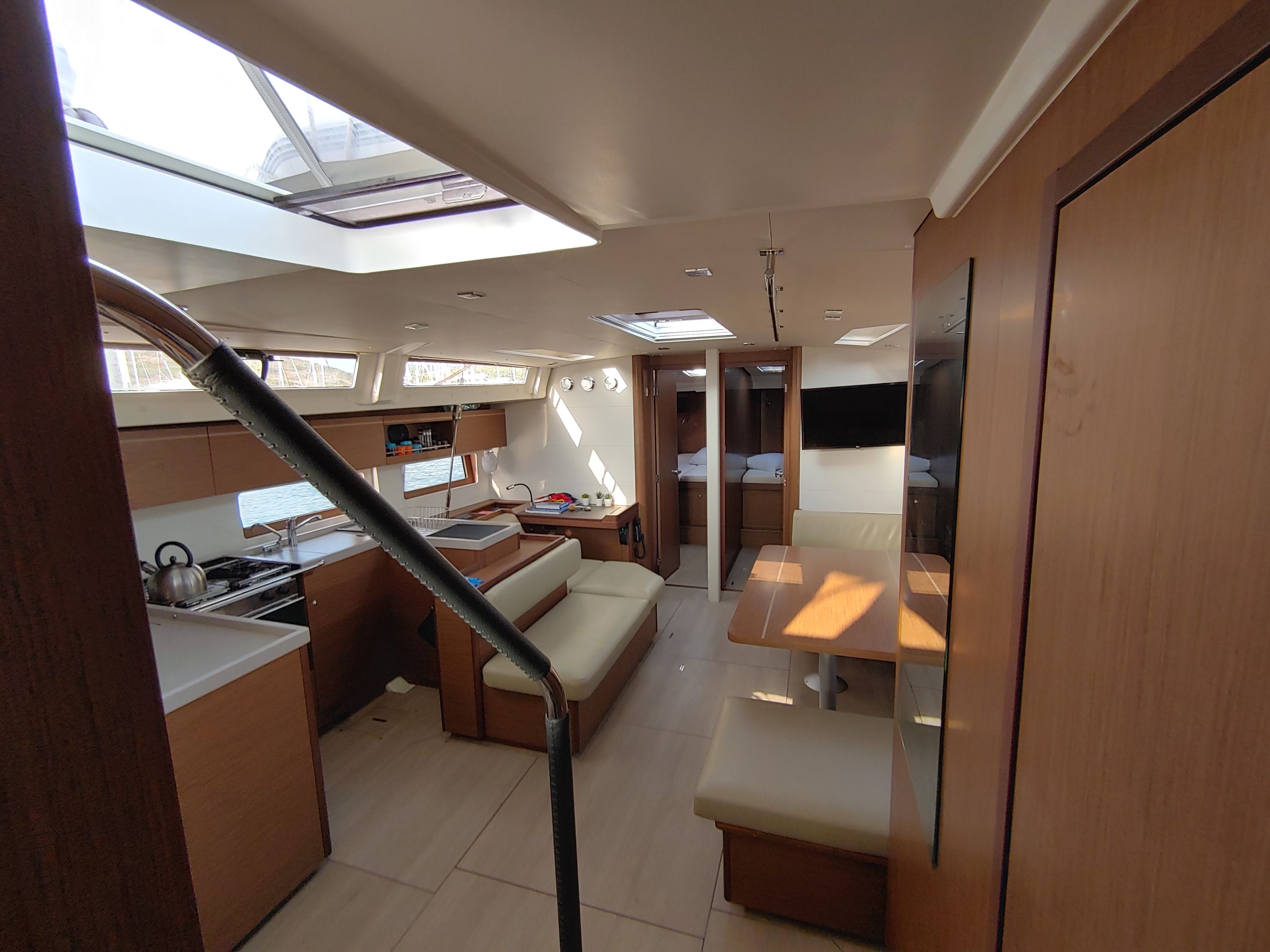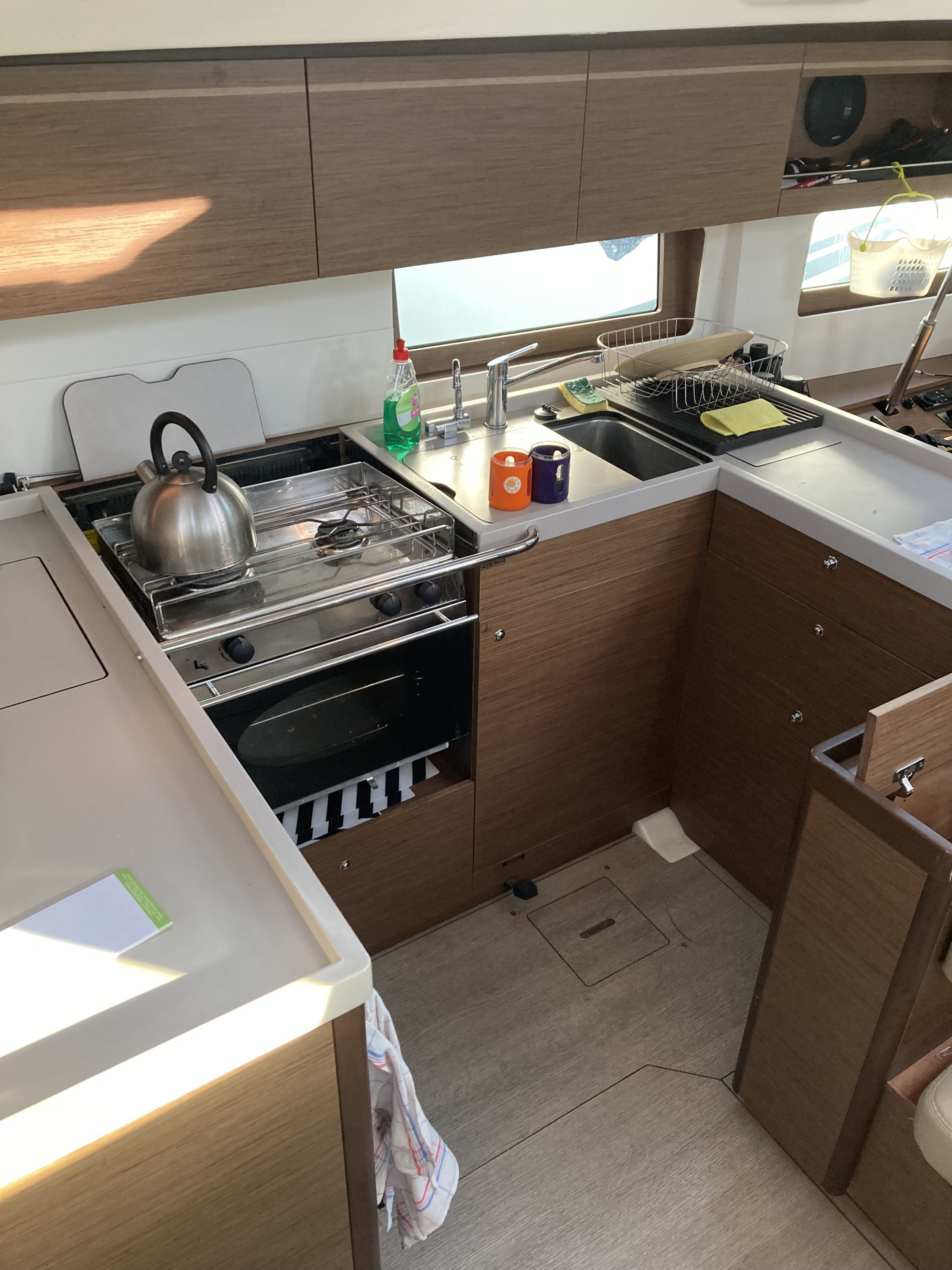 | Inside | 12V Steckdose, Backofen, Gasherd, Gasherd mit Backofen, Gefrierschrank, Heizung, Kühlschrank mit Gefrierfach, Lautsprecher im Salon, LED-Innenleuchten, Moskitonetze, Radio mit USB, Salontisch absenkbar, Spülbecken, USB Steckdosen in den Kabinen, Ventilatoren in Salon und Kabinen, Warmwasser |