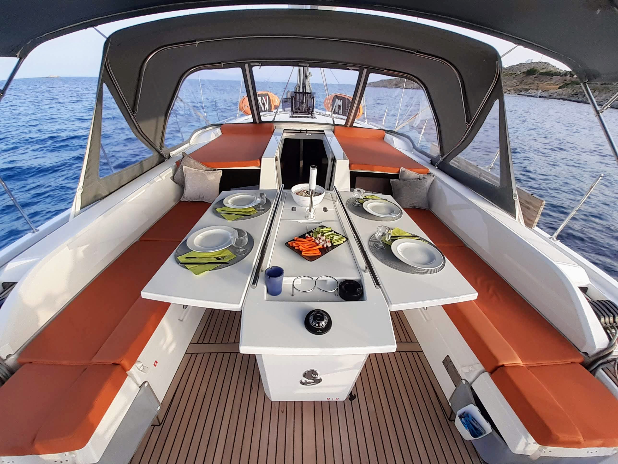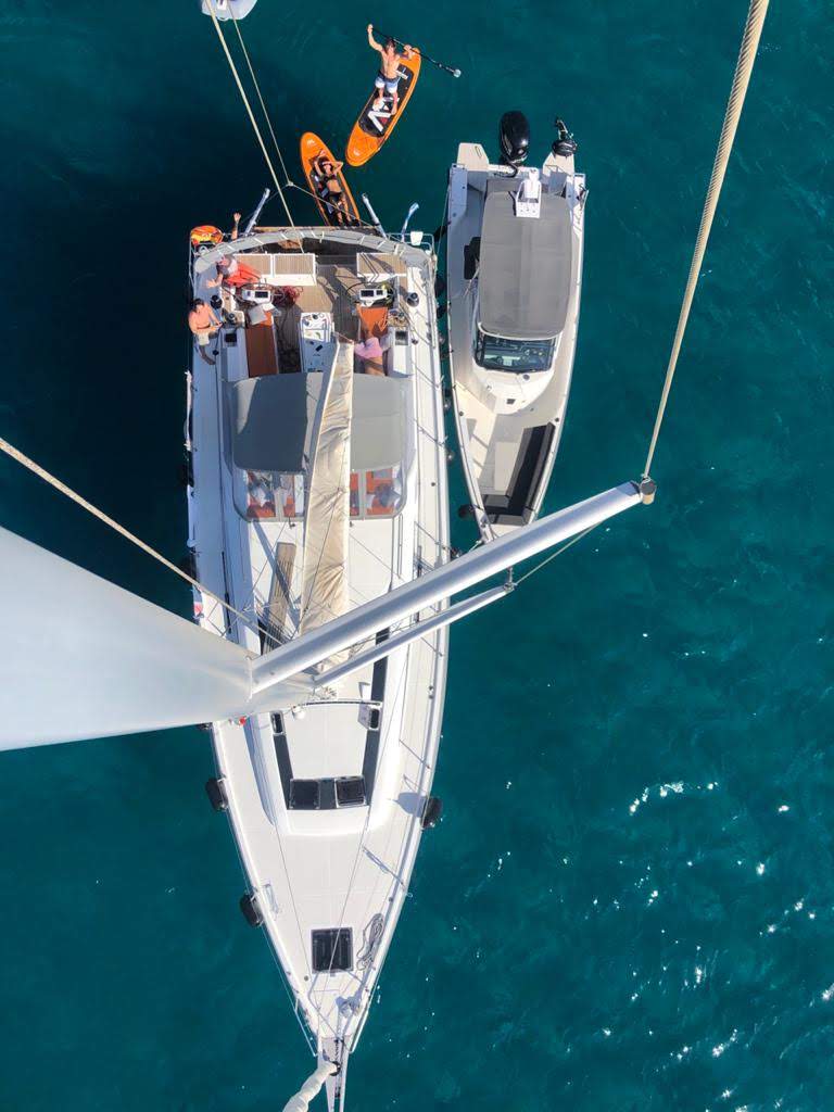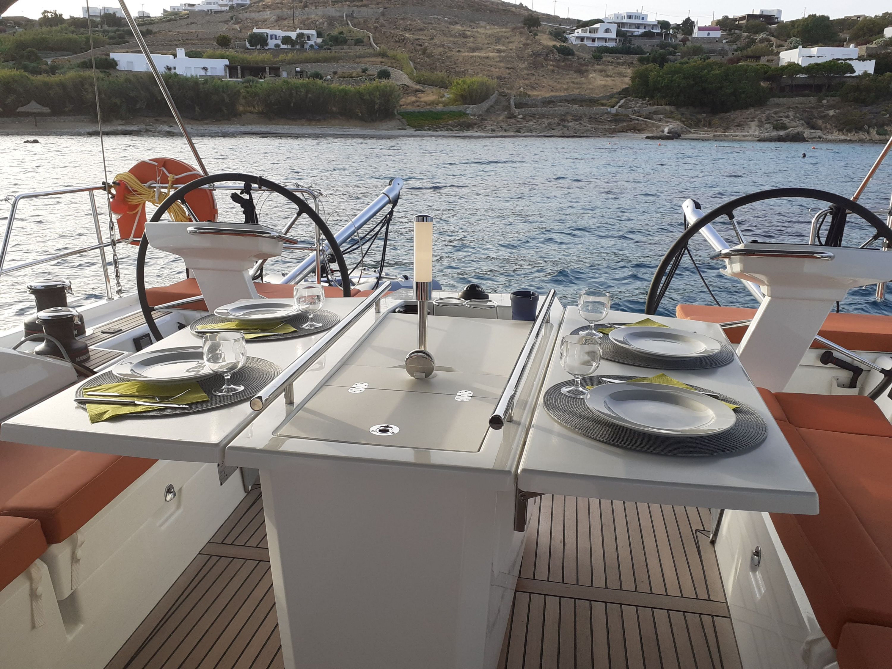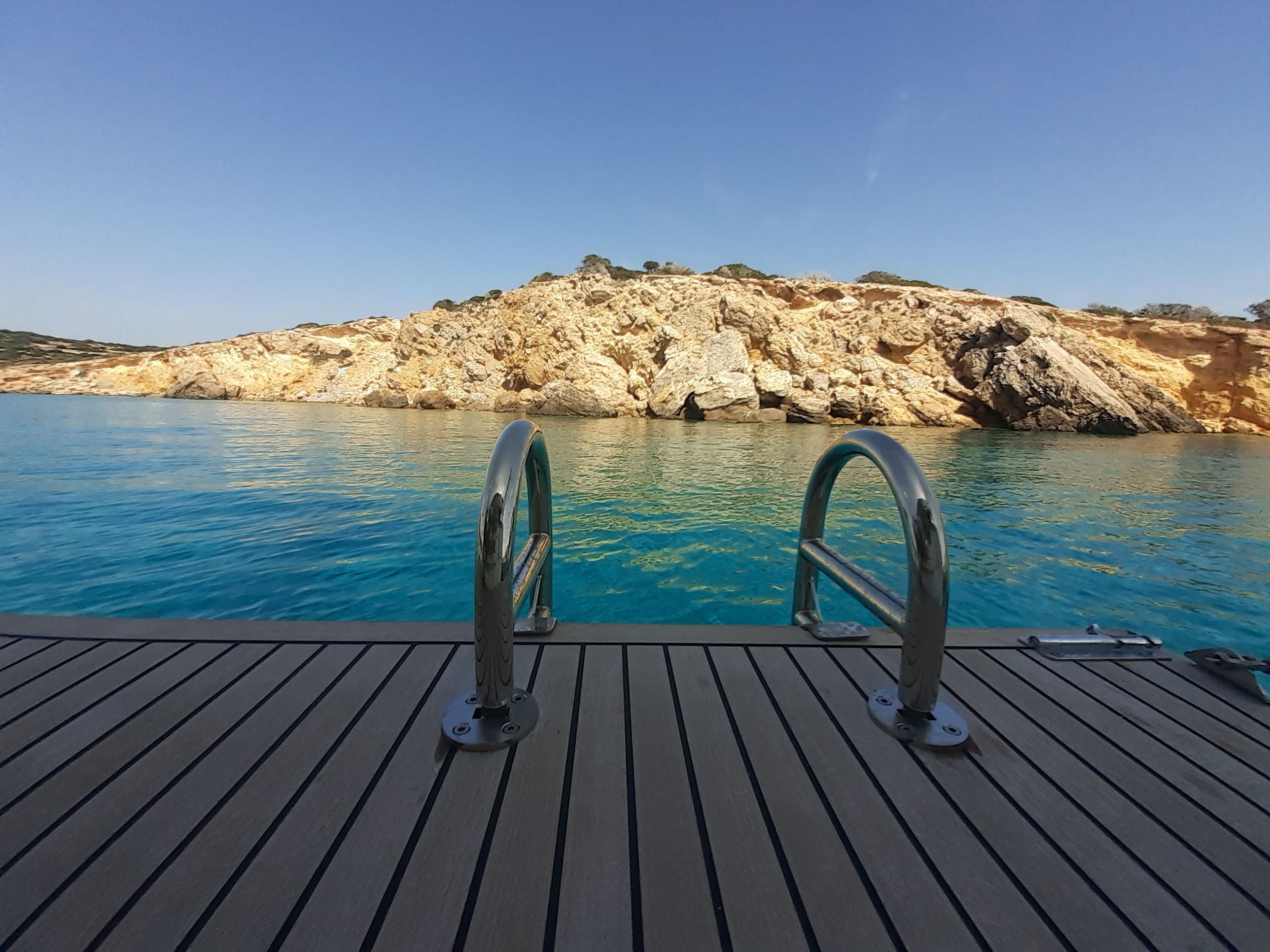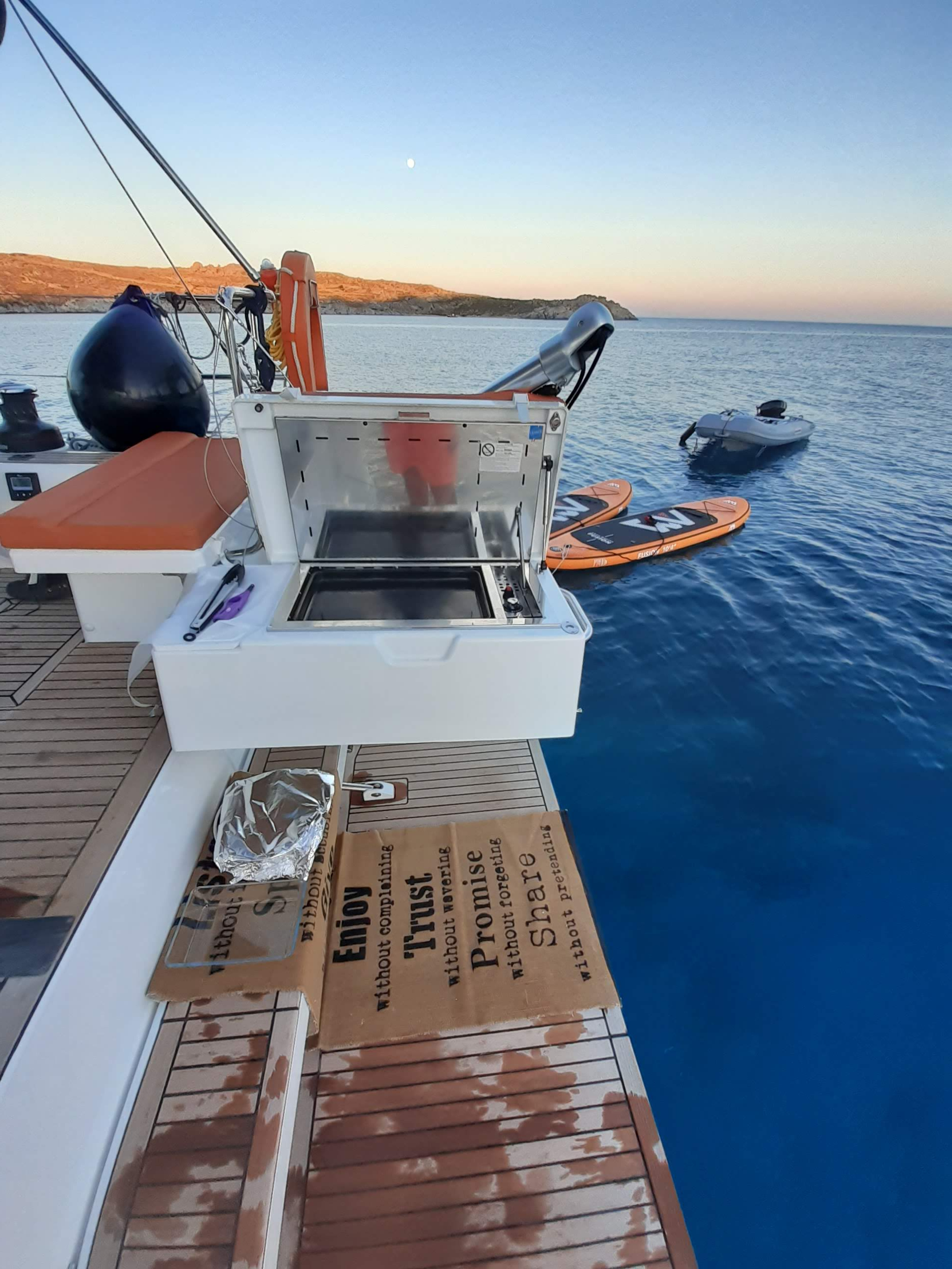 | Outside | Badeleiter, Biminitop, Cockpitdusche, Cockpitpolster, Cockpittisch, elektr. Ankerwinsch, Gangway, Schnorchelausrüstung, Sprayhood |