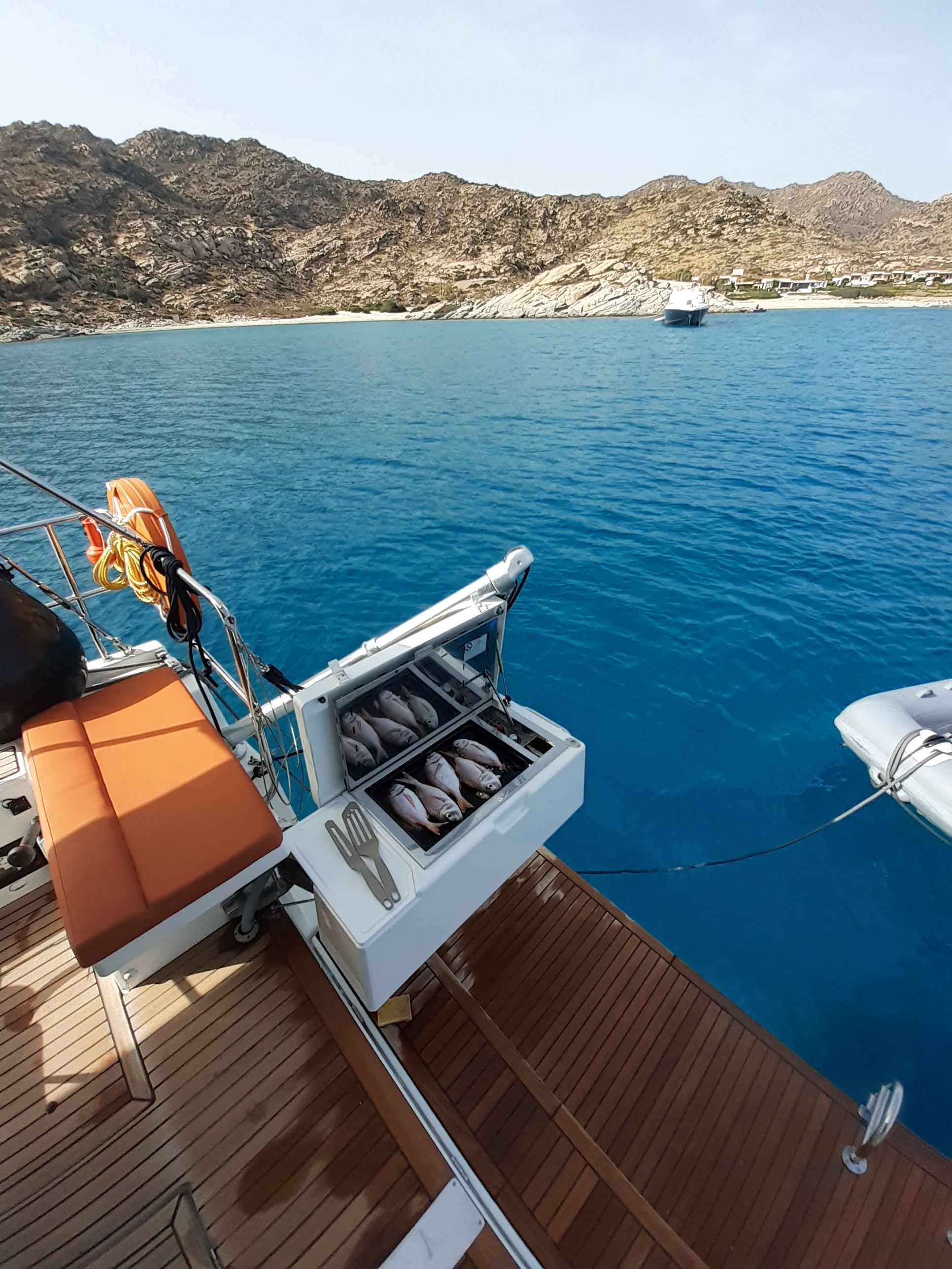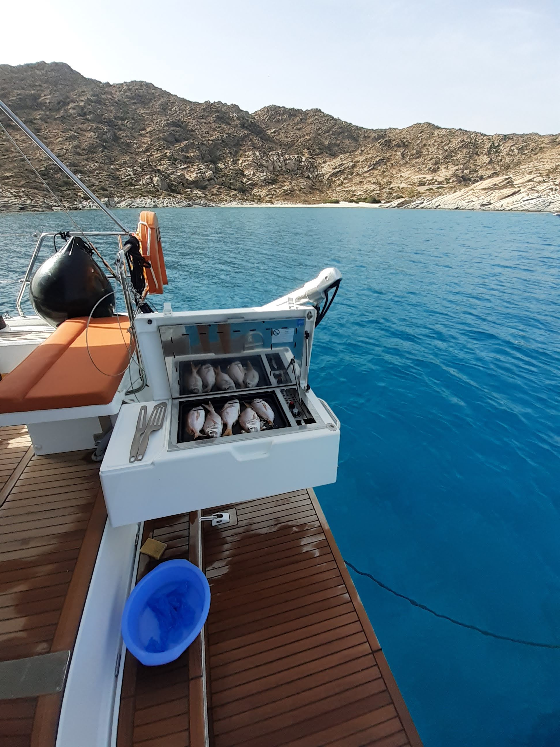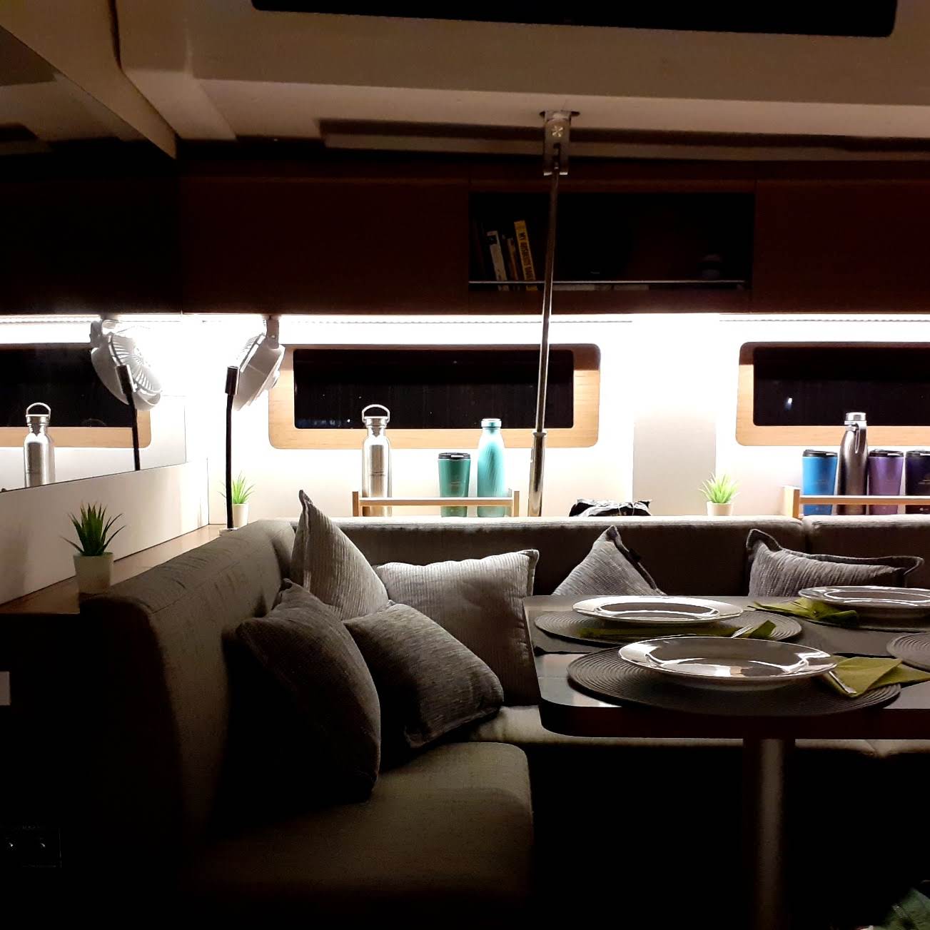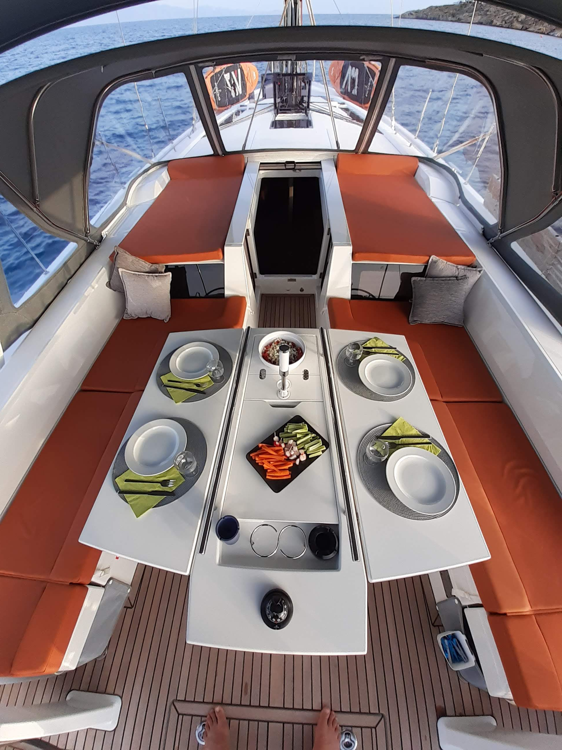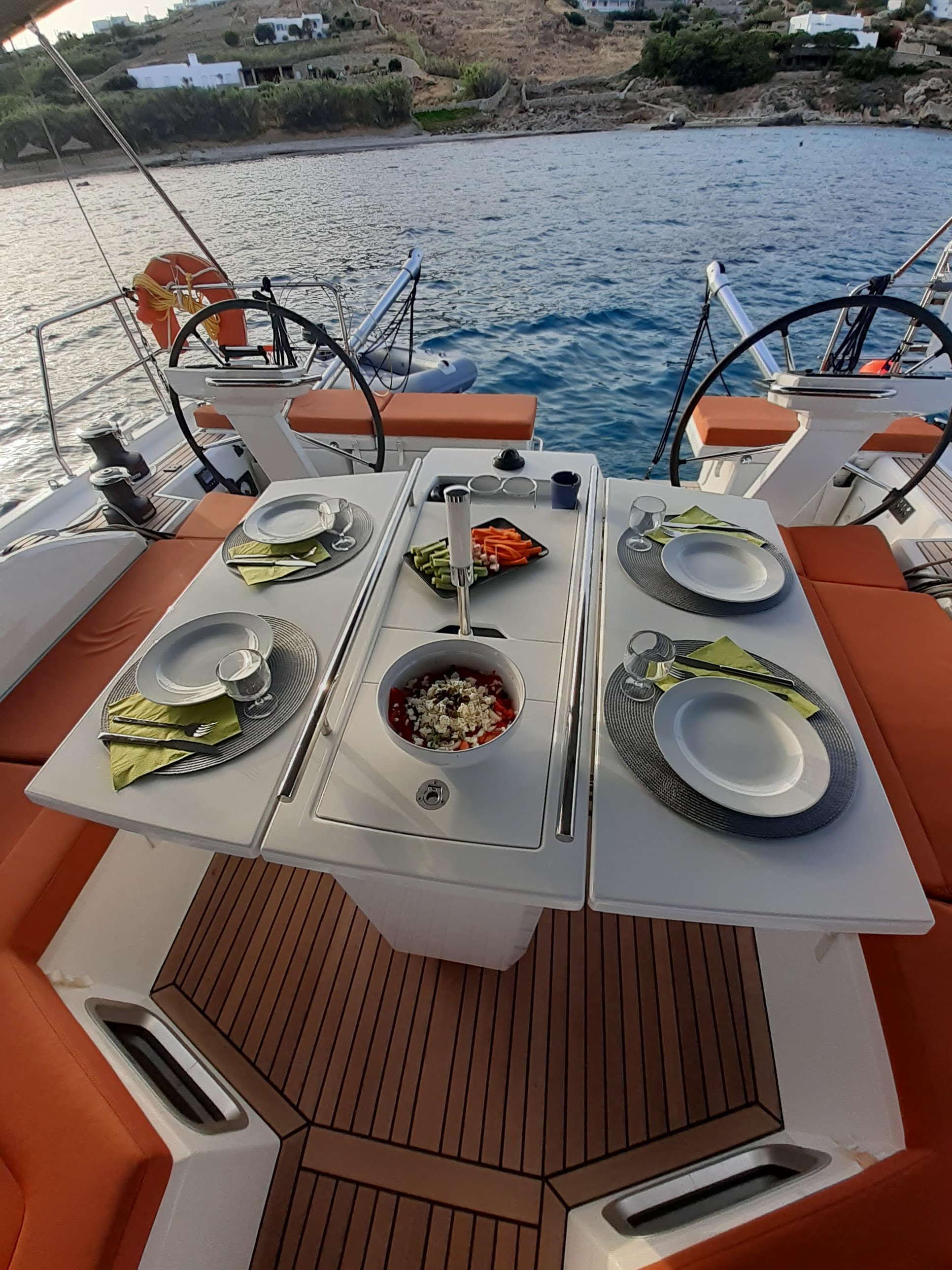 | Outside | Badeleiter, Biminitop, Cockpitdusche, Cockpitpolster, Cockpittisch, elektr. Ankerwinsch, Gangway, Schnorchelausrüstung, Sprayhood |