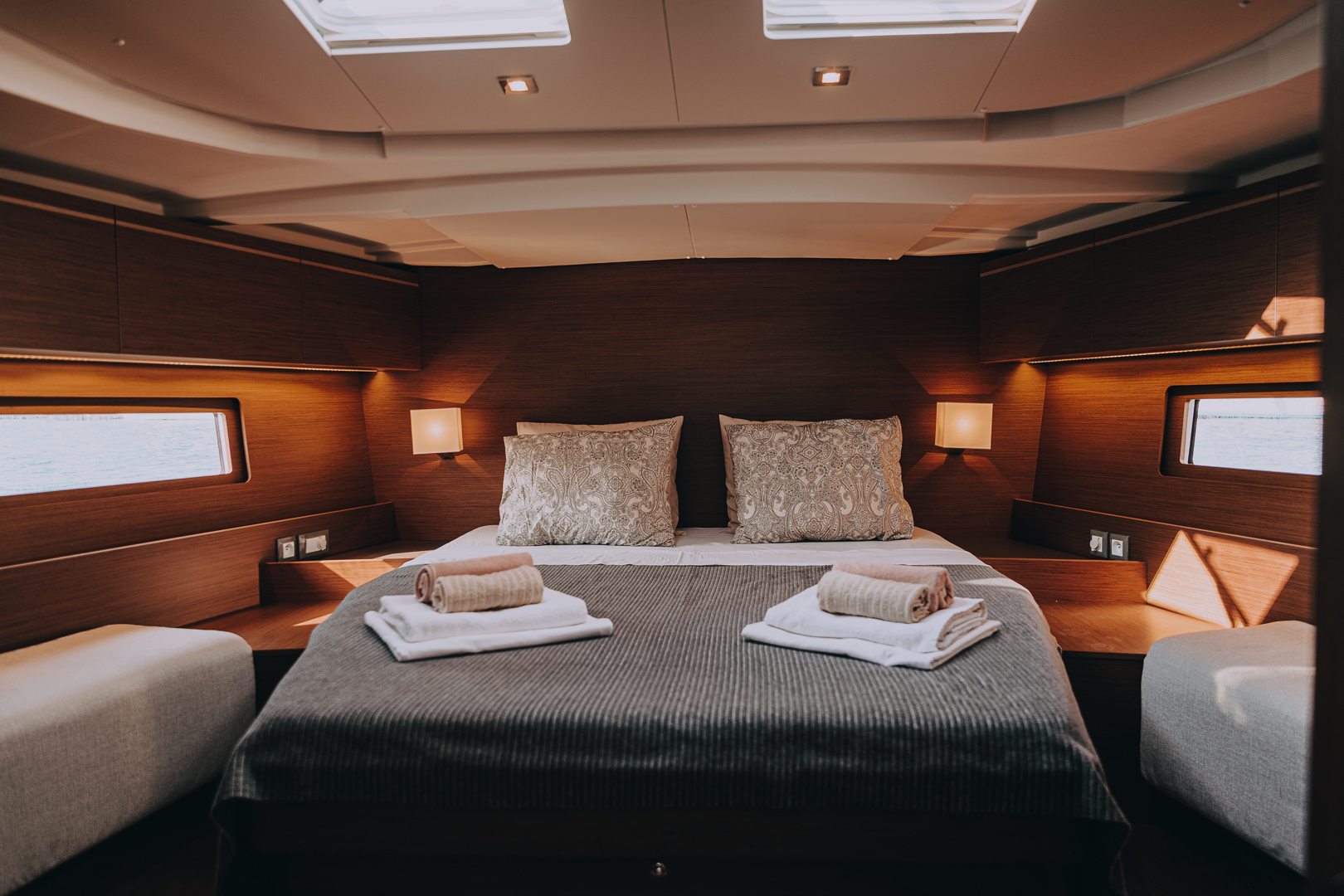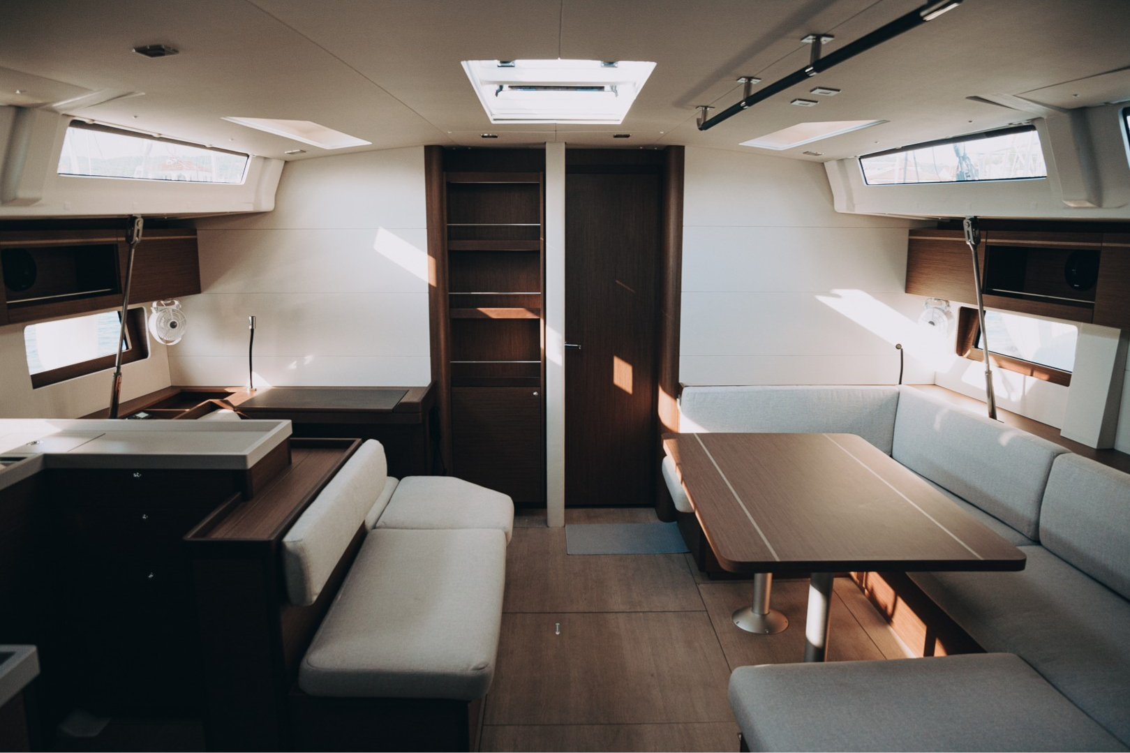 | Safety | Autopilot, Bordapotheke, Bordwerkzeug, Bugstrahlruder, Feststoffschwimmwesten, Feuerlöscher, Flaggen, Navigationslichter, Nebelhorn, Notpinne, Notsignale, Radarreflektor, Reparaturset für Beiboot, Reserve-Motoröl, Rettungsinsel, Rettungskragen, Sicherheitsgurt, Signalspiegel, Taschenlampe, UKW-Funk |