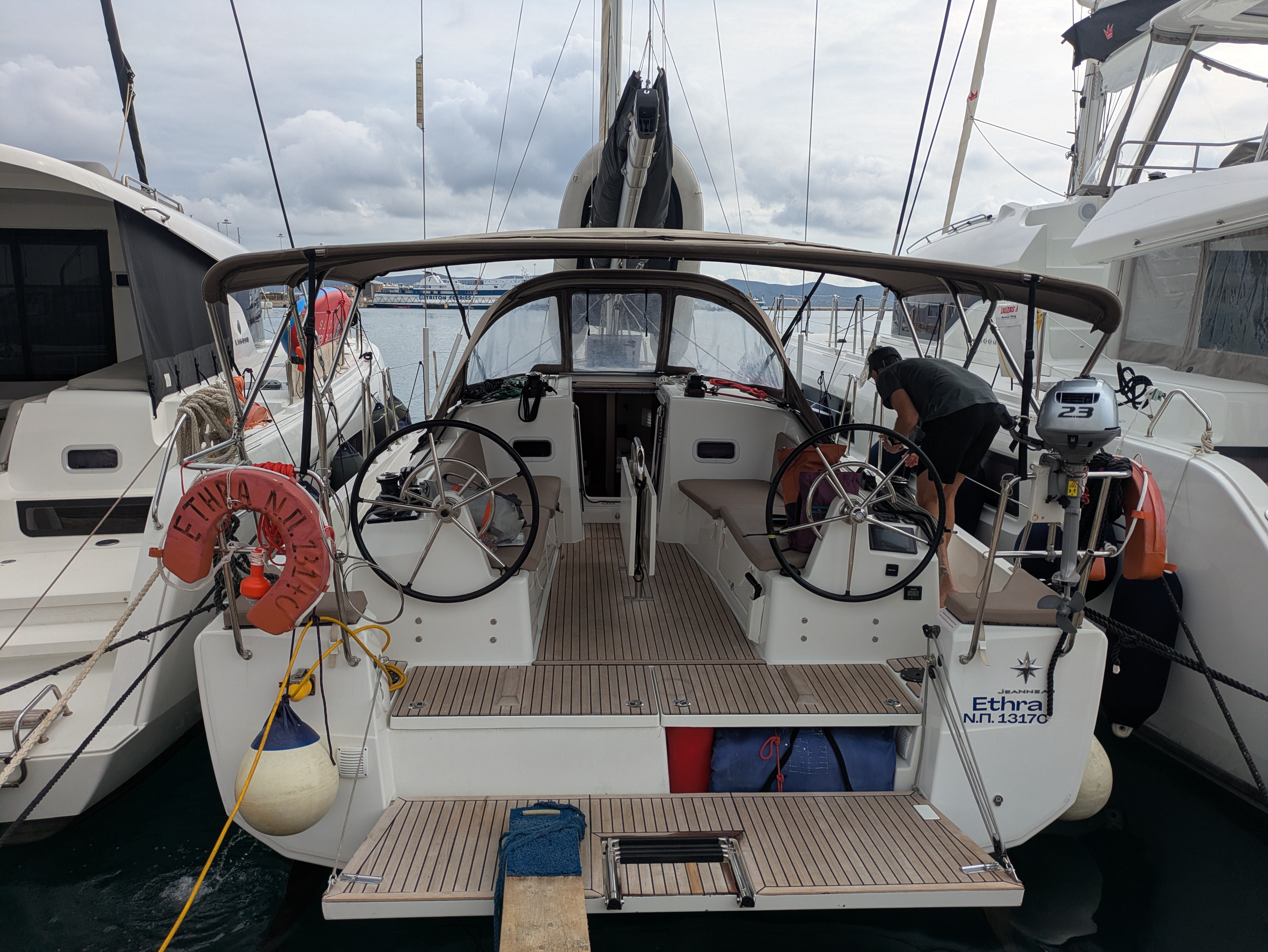 | Outside | 220 V-Landanschluss, Badeleiter, Biminitop, Cockpitlautsprecher, Cockpitpolster, elektr. Ankerwinsch, Schnorchelausrüstung, Solaranlage, Sprayhood, Teak im Cockpit |
