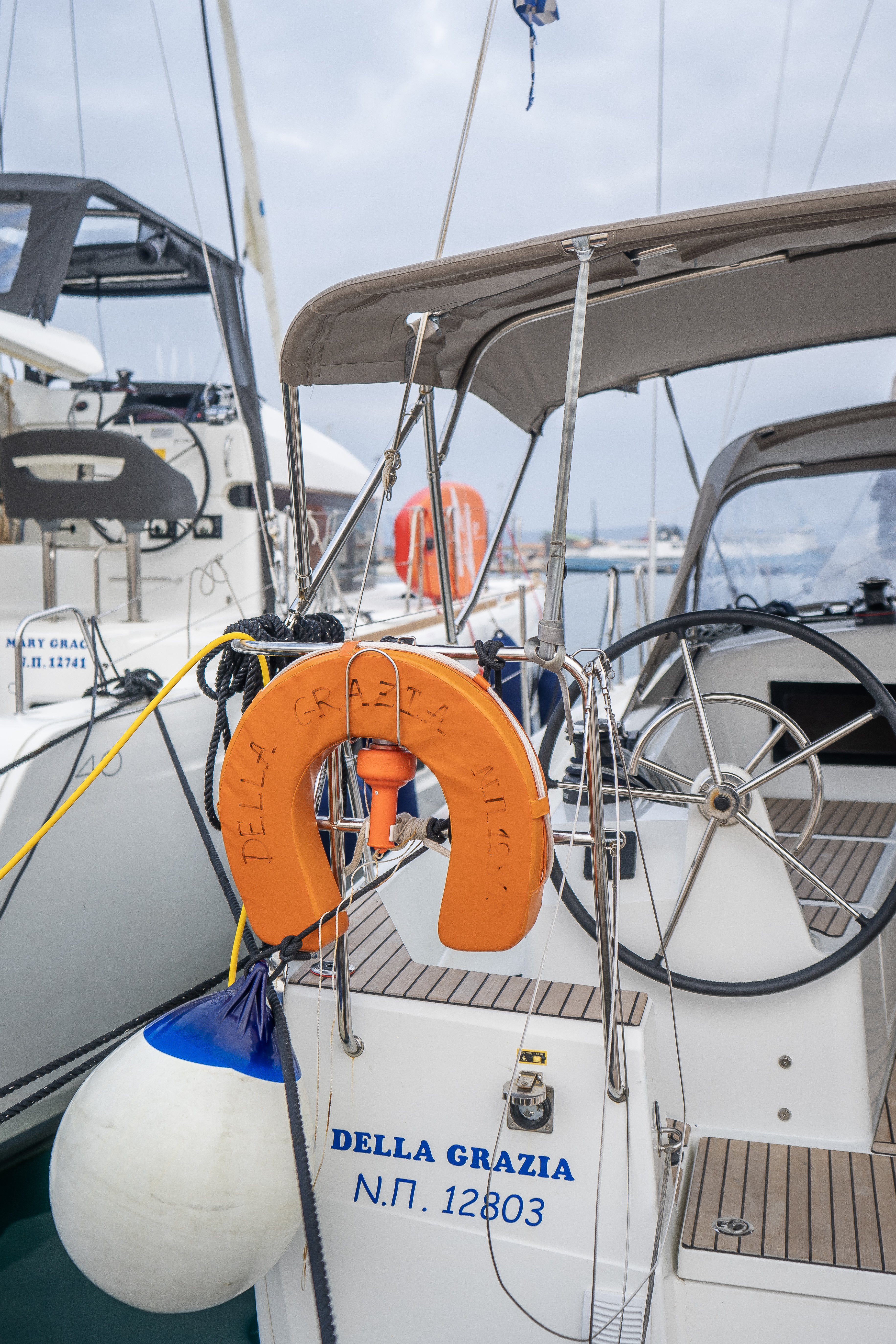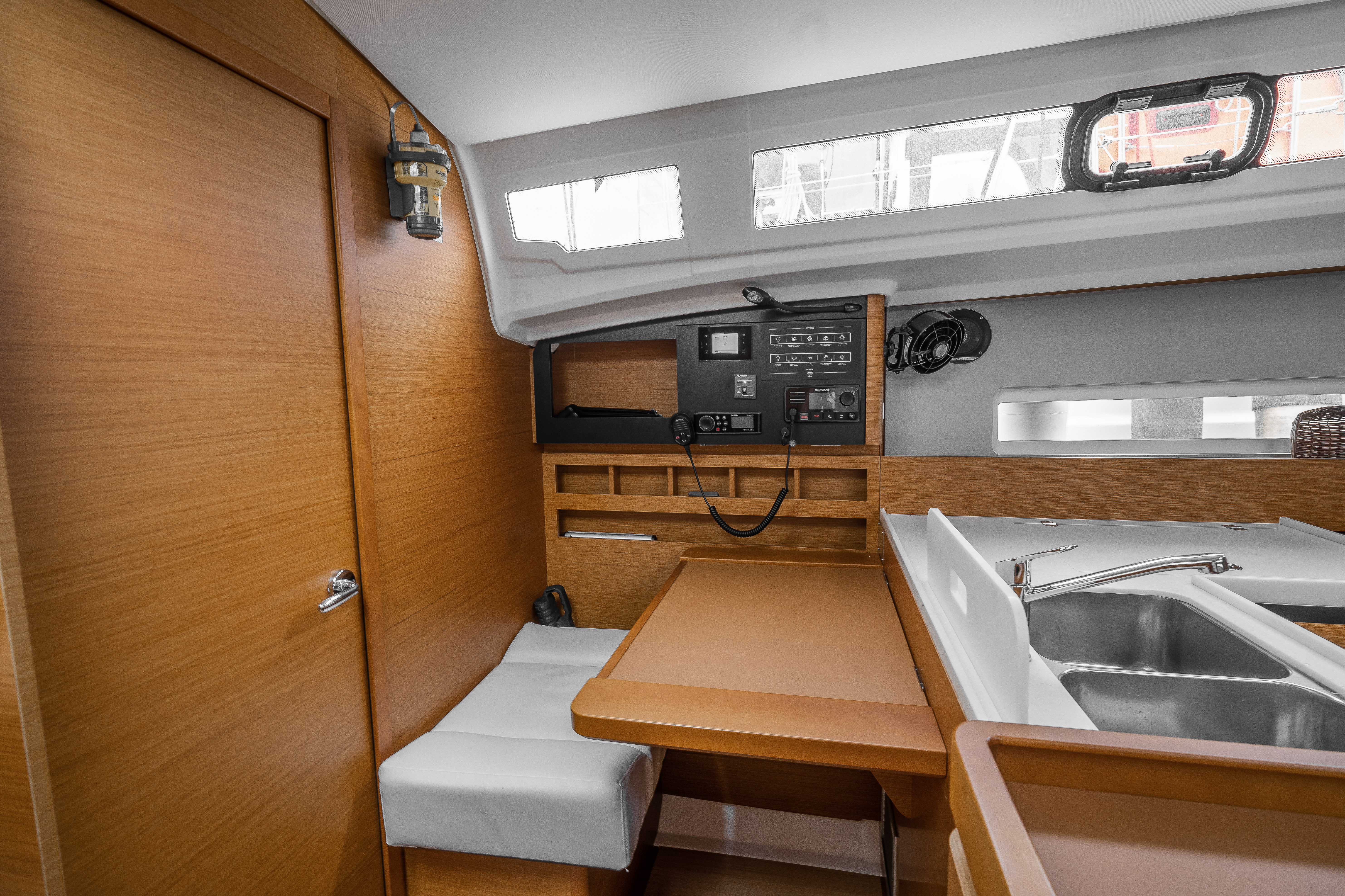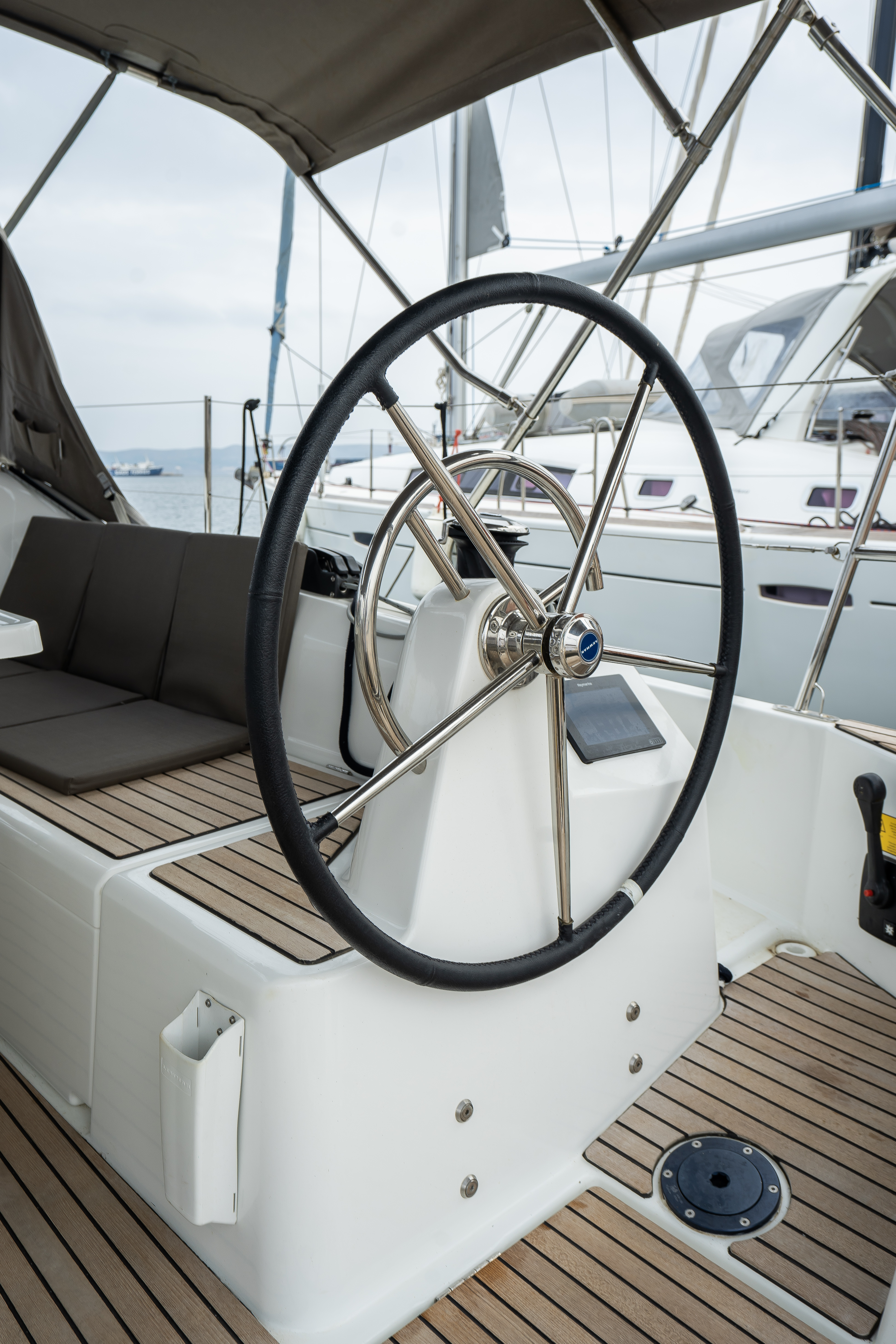 | Navigation | Echolot, GPS mit Kartenplotter im Cockpit, Hafenhandbücher, Seekarten, Sumlog, Windmesser |