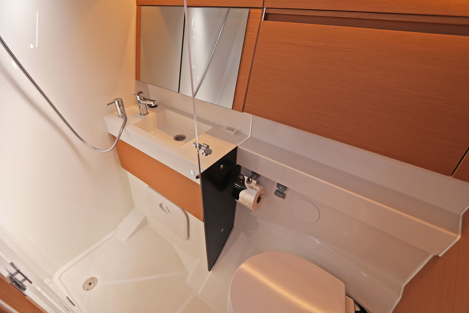| Inside | 12V/220V-Steckdosen, Inverter 12V/220V, Kühlschrank, LED-Innenleuchten, Pantryausstattung, Radio mit CD/MP3/USB, Ventilatoren in Kabinen, Warmwasser, WC (elektr.) |