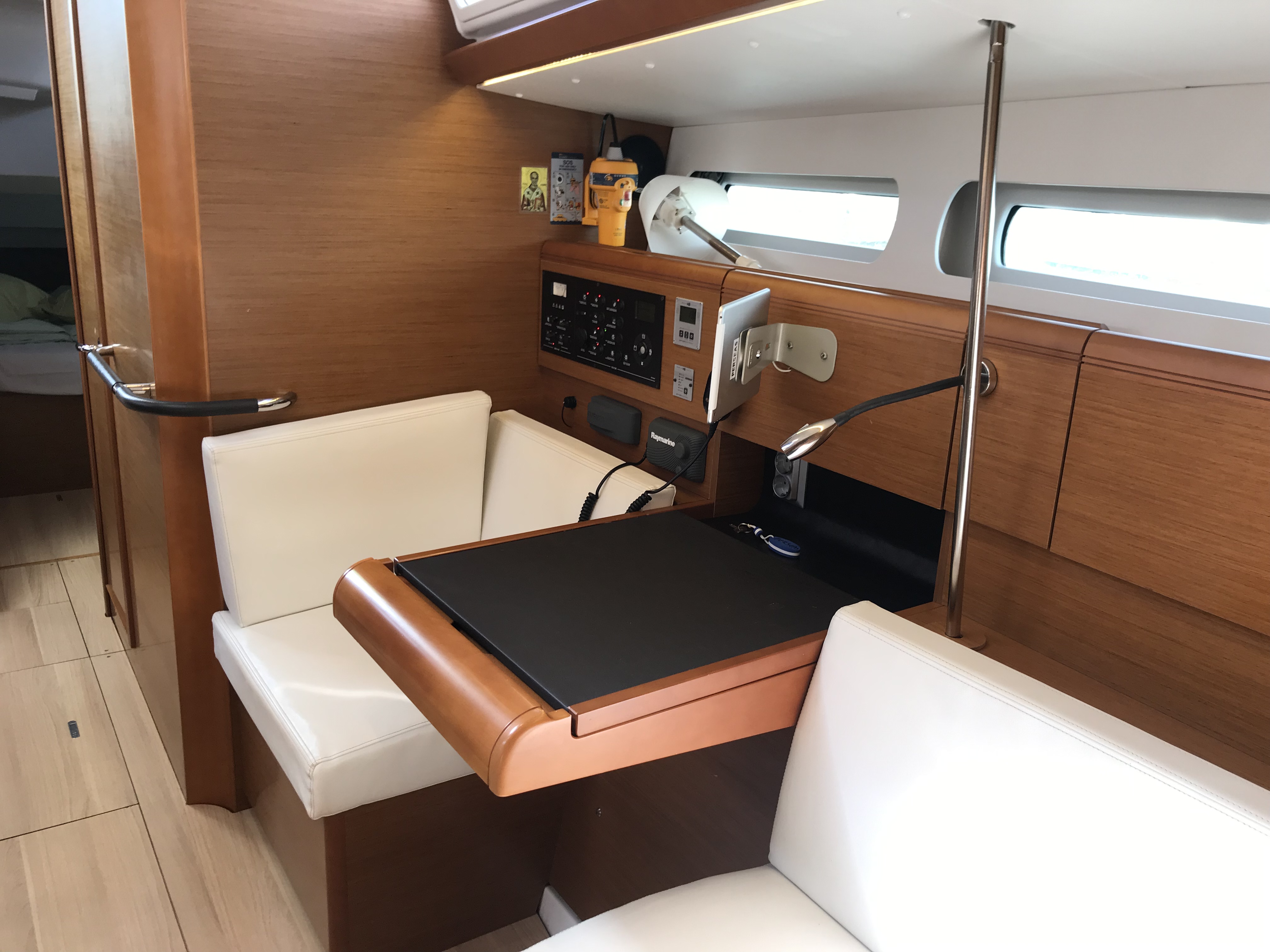 | Navigation | GPS mit Kartenplotter im Cockpit, iPad mit Navionics, Tablet-PC am Kartentisch, Tridata (Log, Echolot, Windm.) |
