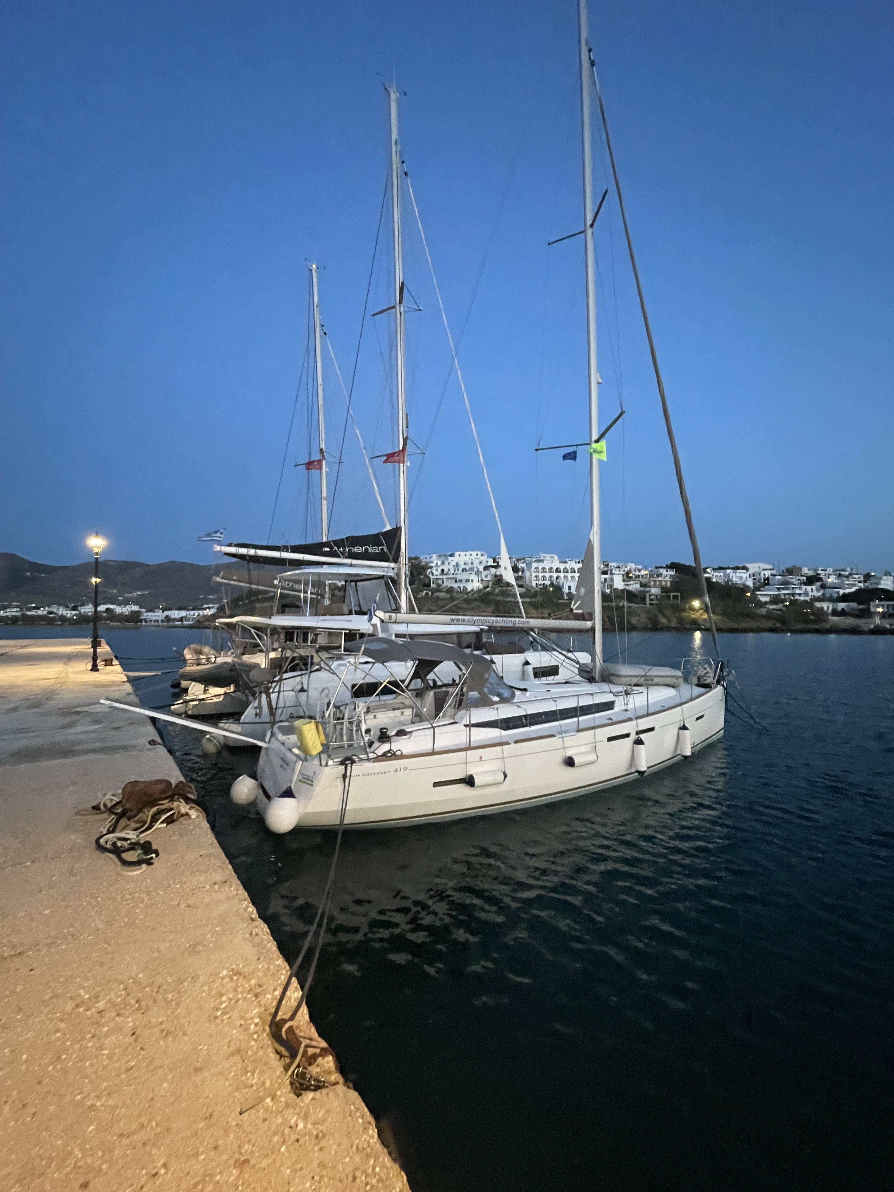 Die Übernachtung im Hafen von Lavrion ist wegen des Discobetriebes in ohrenbetäubender Lautstärke eine Zumutung. Olympic Yachting hat freundlicherweise darauf hingewiesen und empfohlen gleich die nächste Bucht oder Hafen anzulaufen und alternativ Ohrstöpsel verteilt, die Ohrstöpsel halfen bei der Lautstärke leider so gut wie gar nicht.